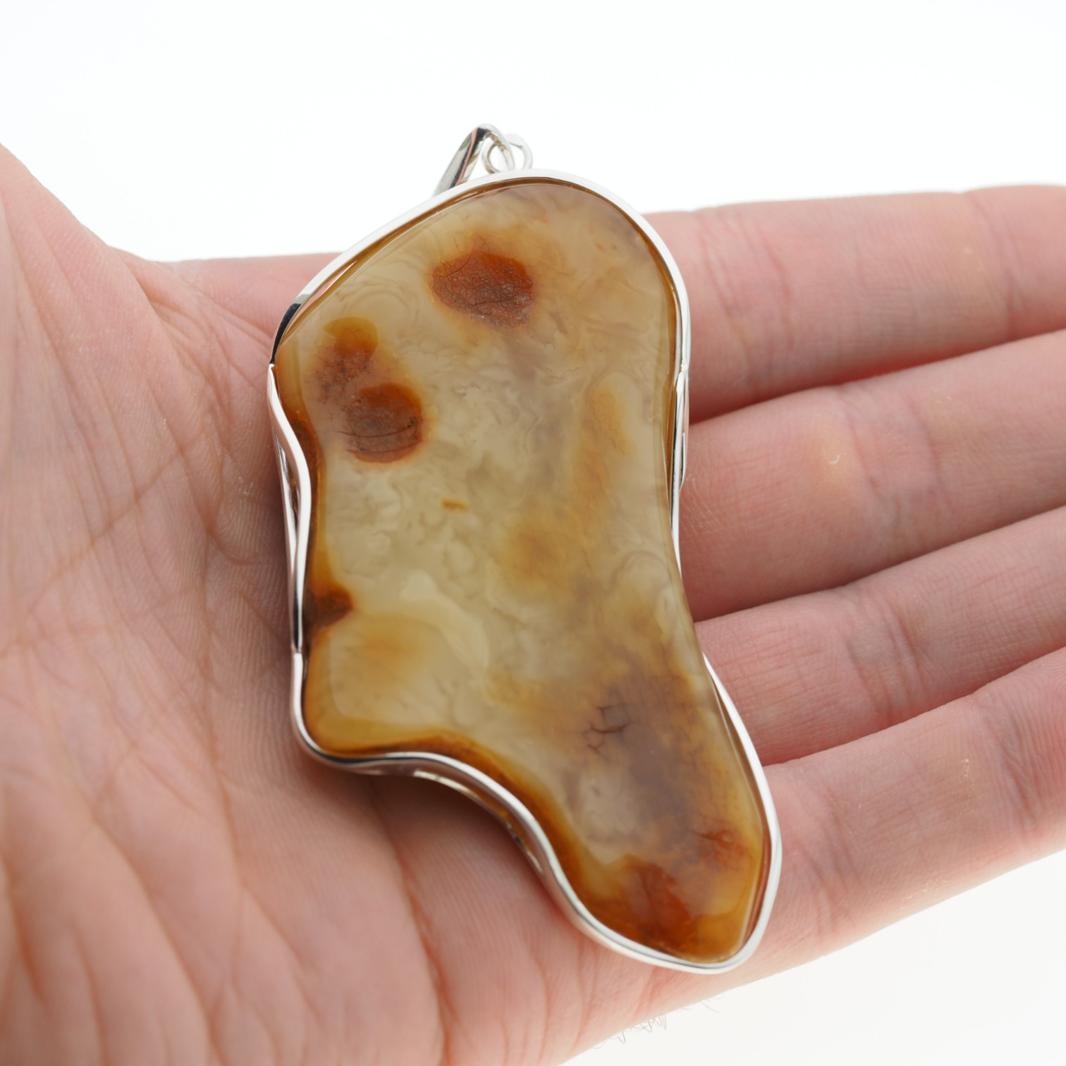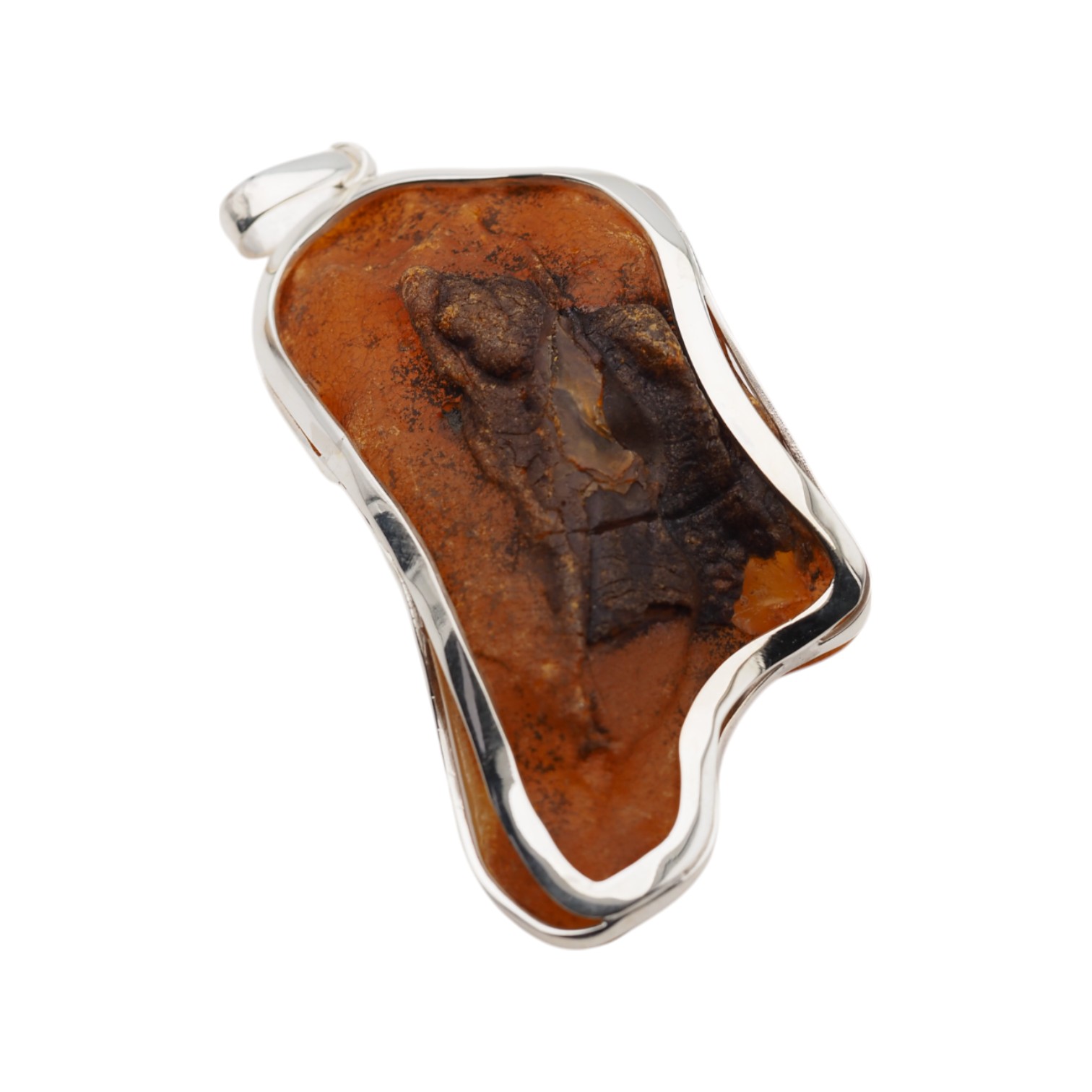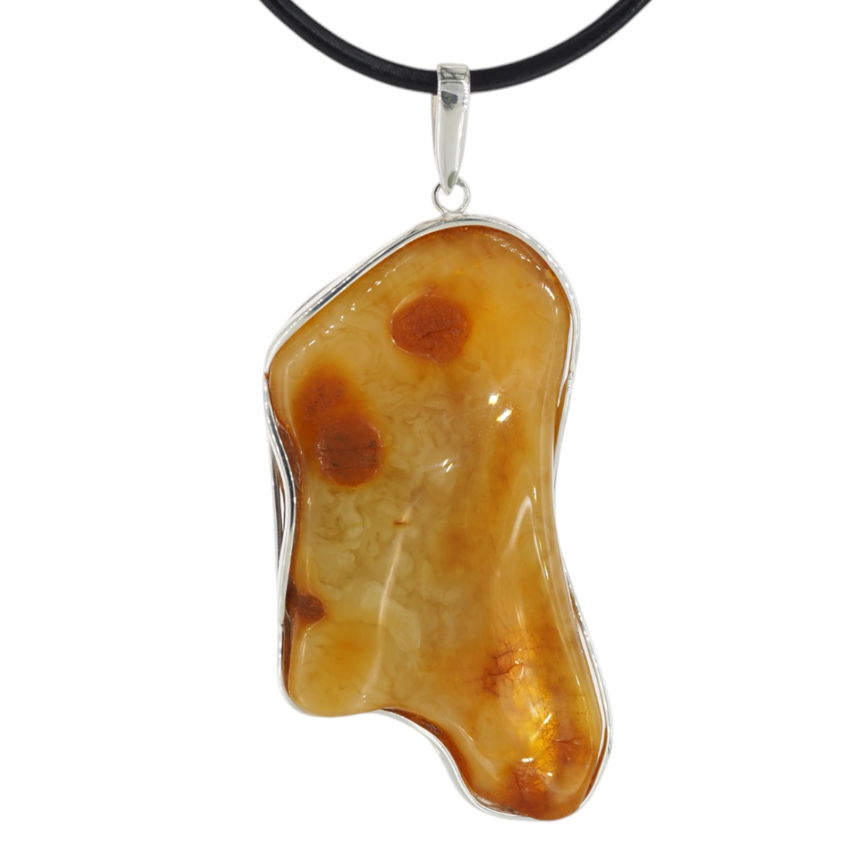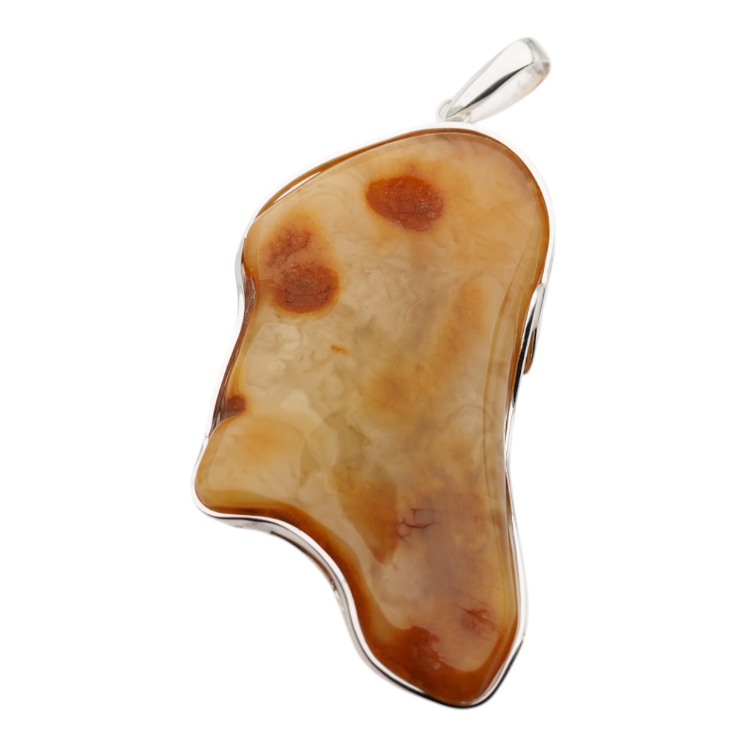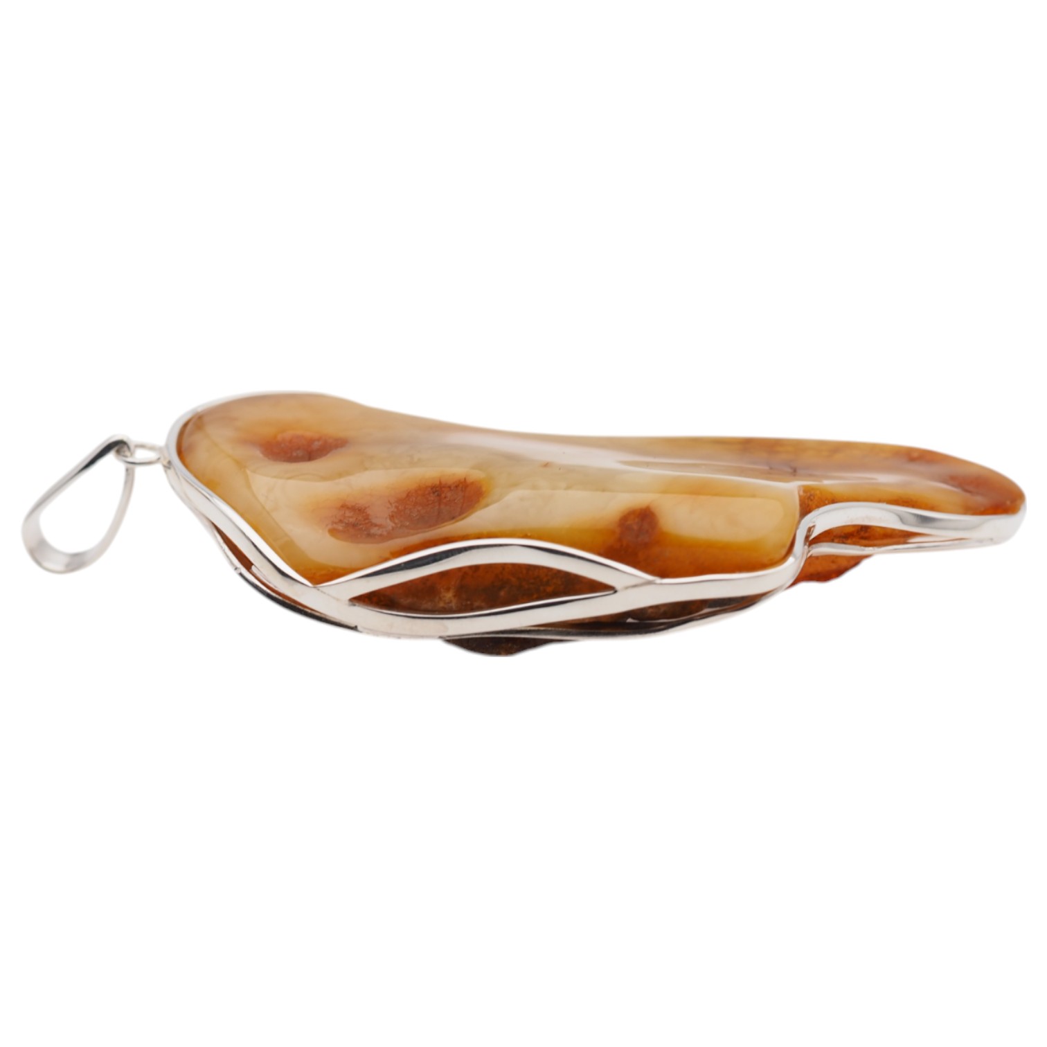 Zawieszka z naturalnym, Mlecznym Bursztynem w srebrze.