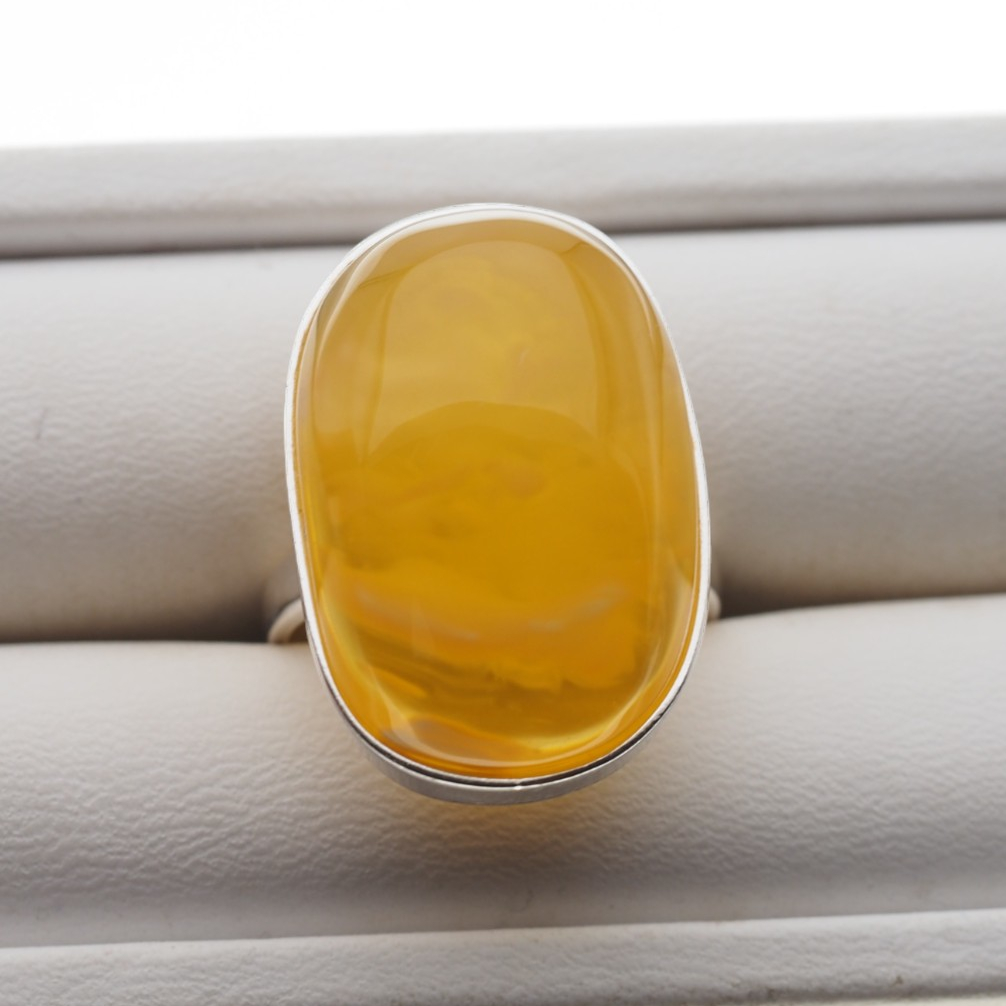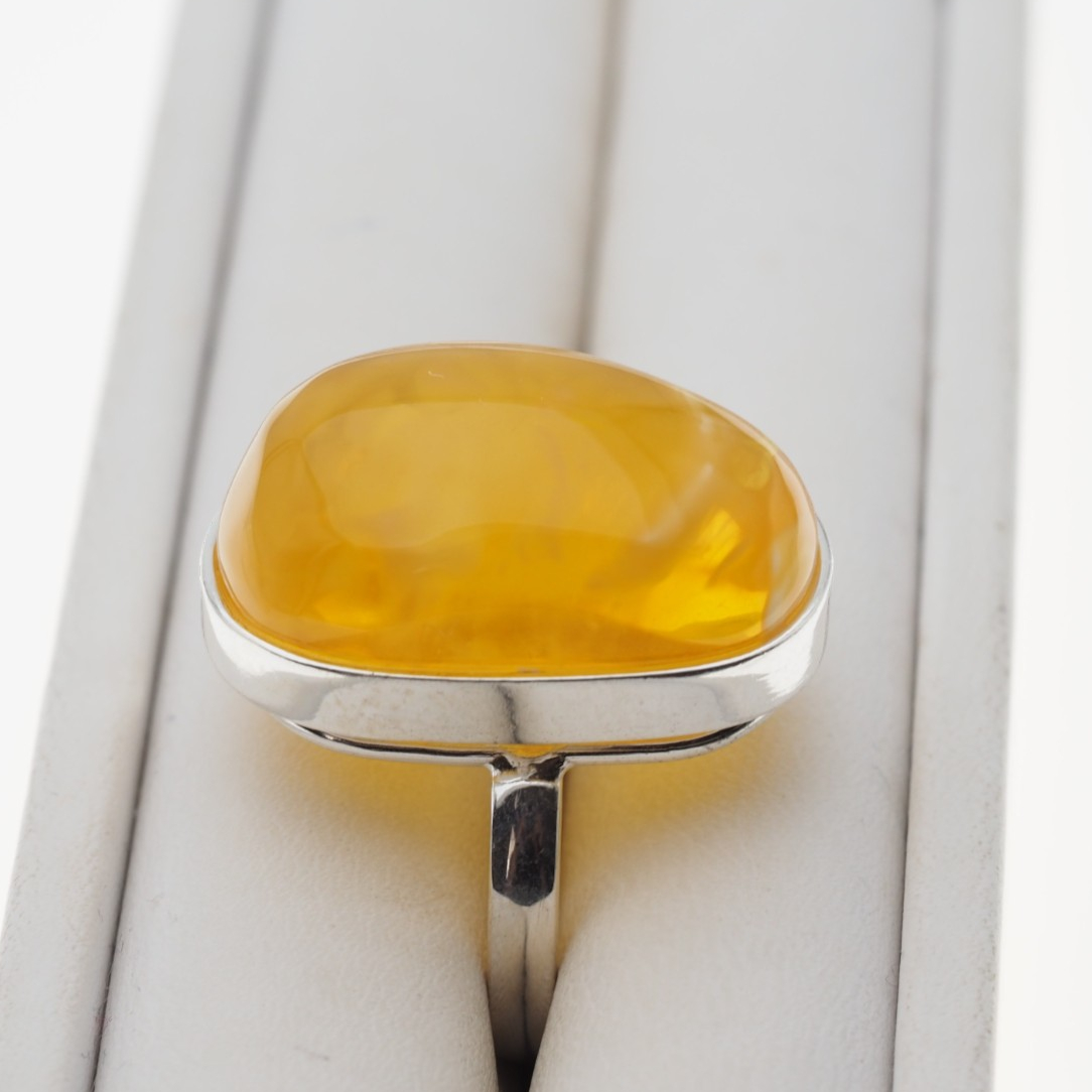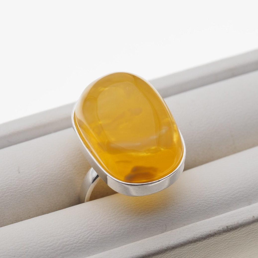 Pierścionek z przezroczystym Bursztynem z mgłą. Ręcznie wykonany w srebrze. Srebro próba 925.
