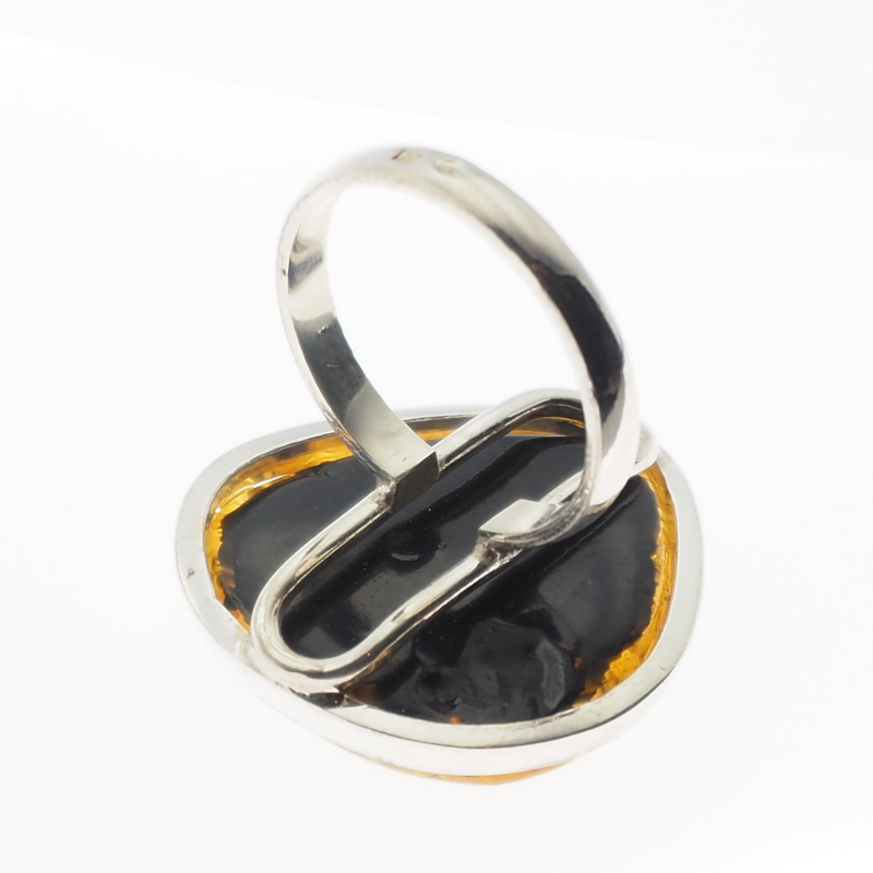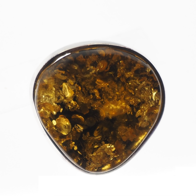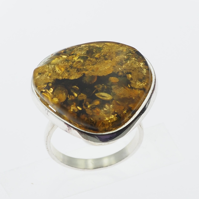 Pierścionek z Zielonym Bursztynem. Ręcznie wykonany od podstaw w srebrze. Srebro próba 925.
