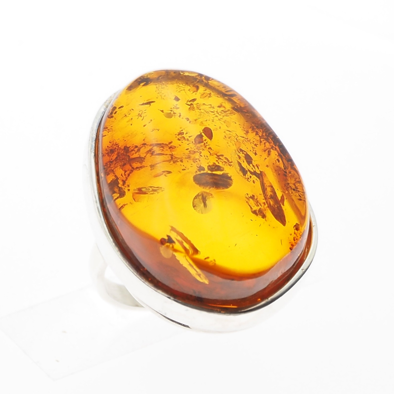 Ręcznie wykonany pierścionek z naturalnym bursztynem bałtyckim w intensywnym, koniakowym odcieniu.