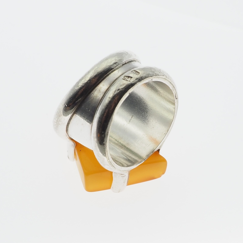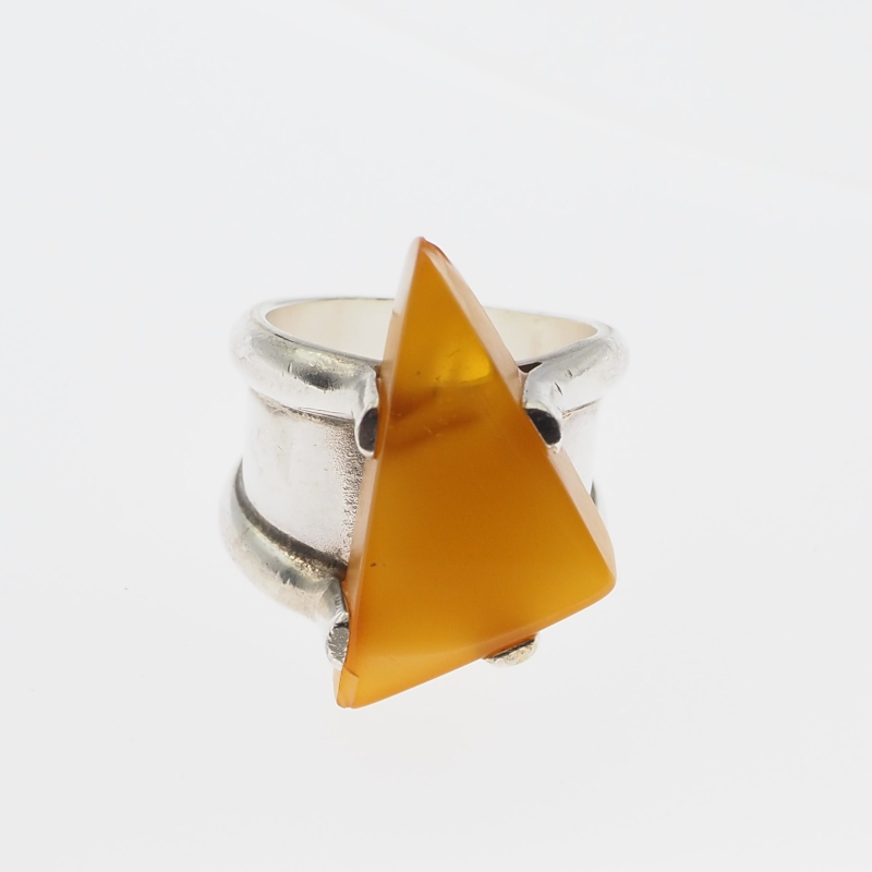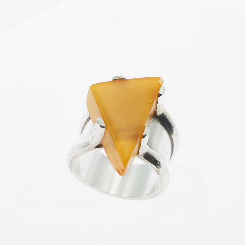 Sygnet z Mlecznym Bursztynem w kształcie trójkąta.