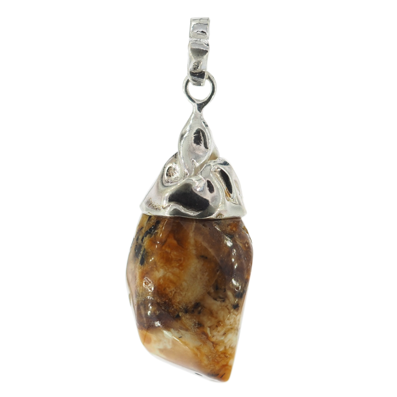 Półszlachetny kamień naturalny w srebrnej oprawie.
