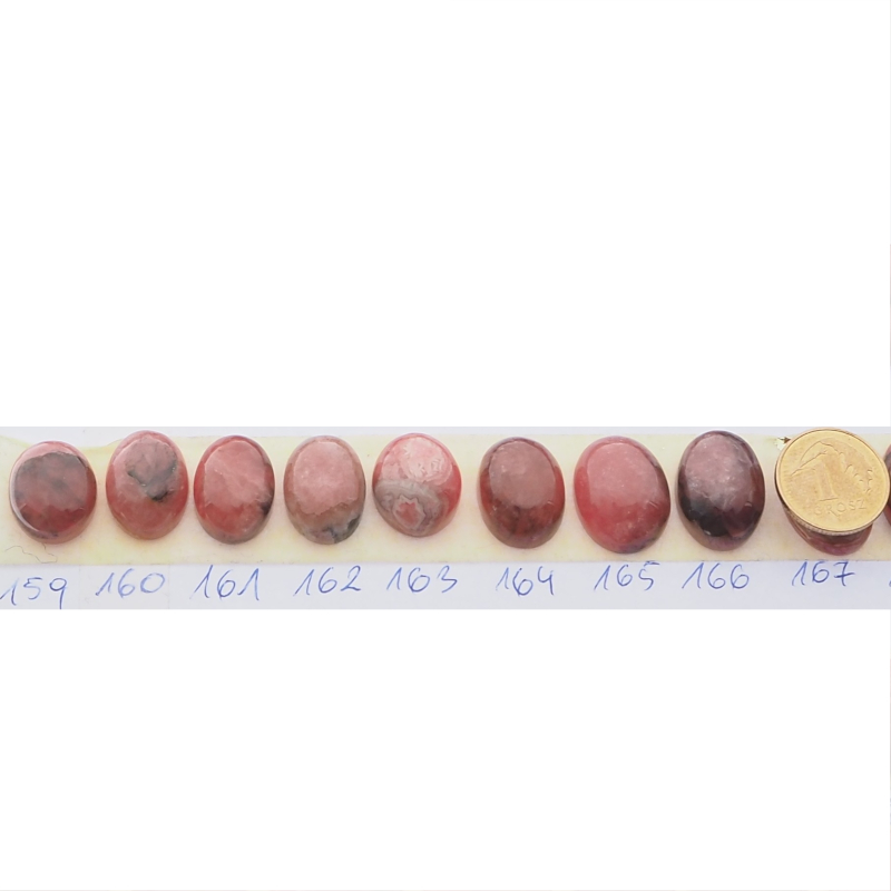 Kaboszon z naturalnego rodochrozytu w klasycznym kształcie owalu.