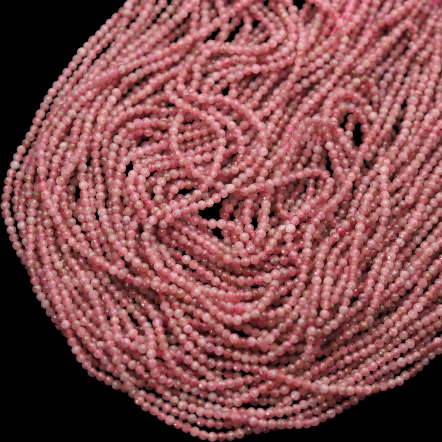 Turmalin Rubelit fasetowany kulki 2,5mm (sznur)