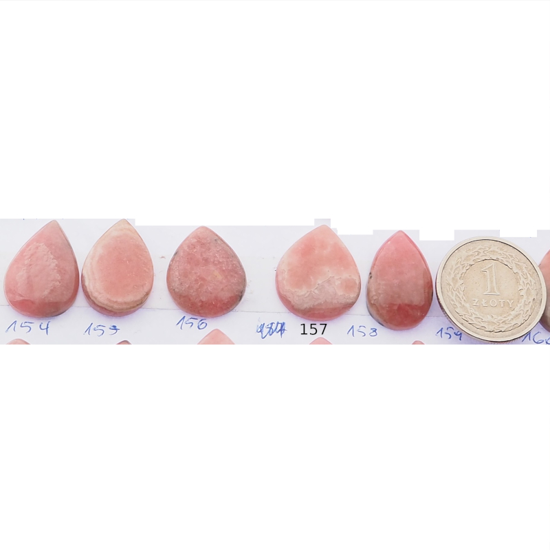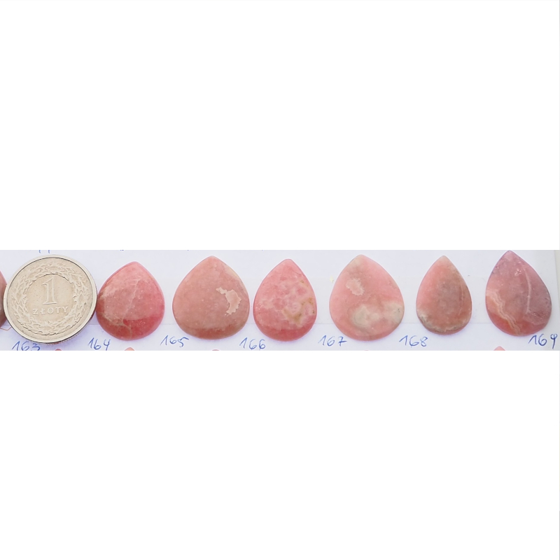 Naturalny rodochrozyt w kształcie łzy zachwyca różowo-malinową tonacją typową dla tego minerału. Kaboszon jest starannie wypolerowany, a płaski spód ułatwia precyzyjny montaż w oprawie.