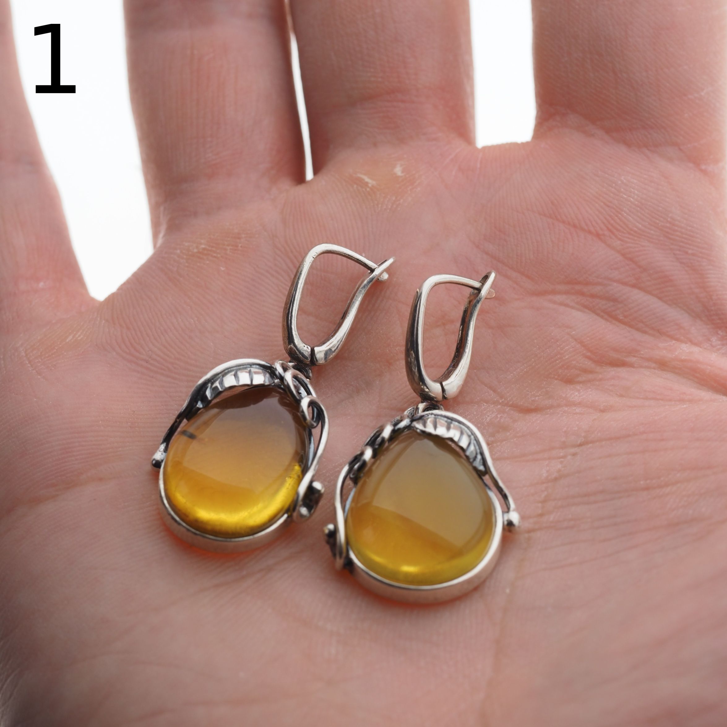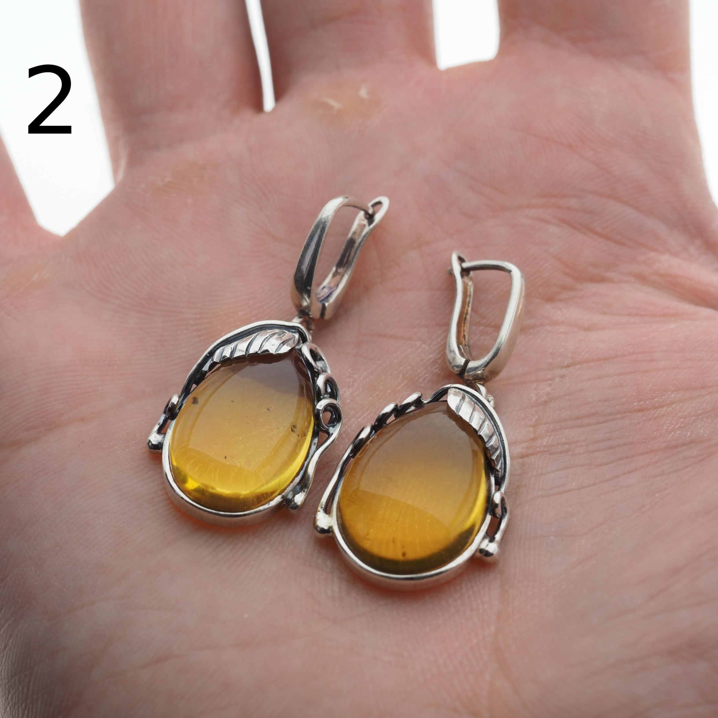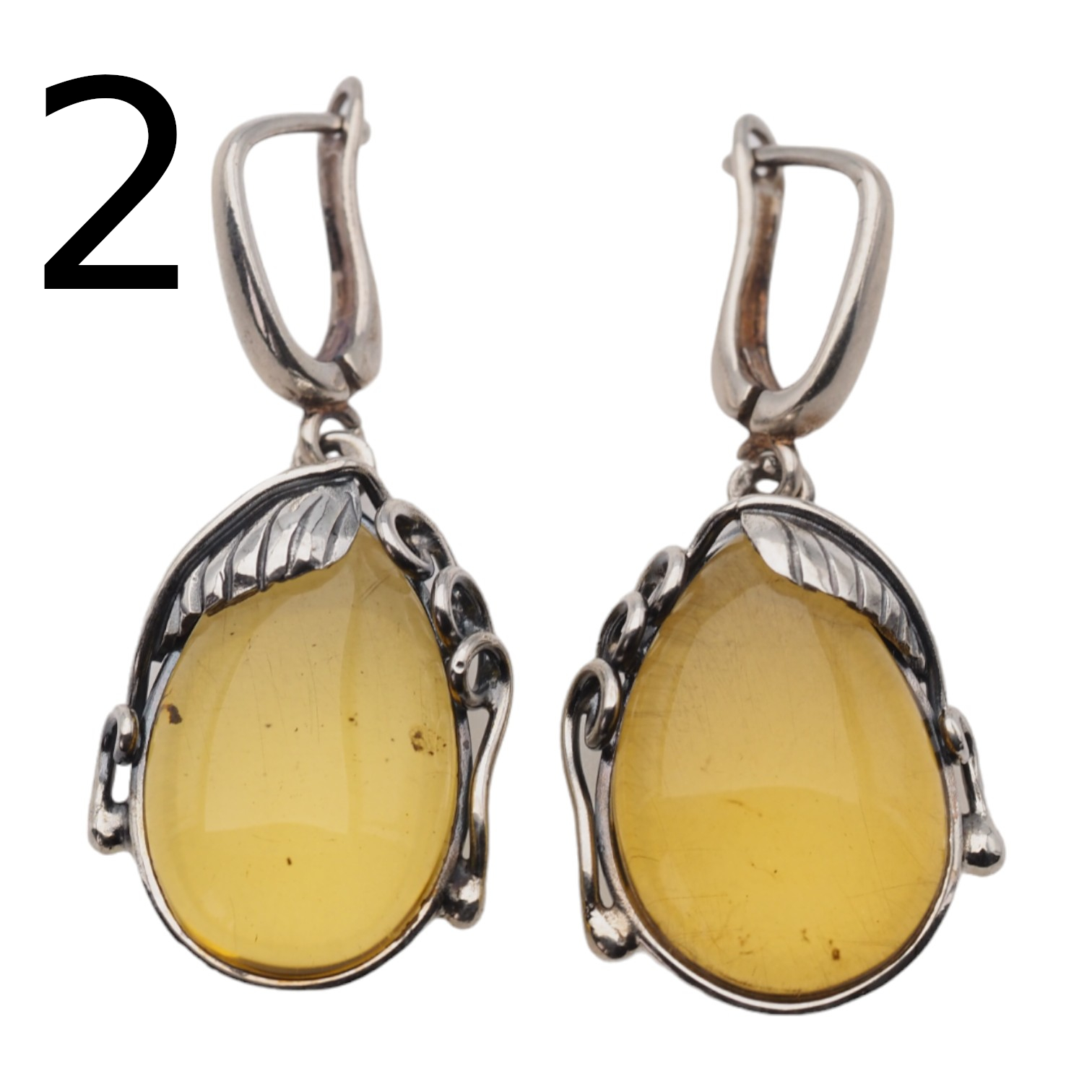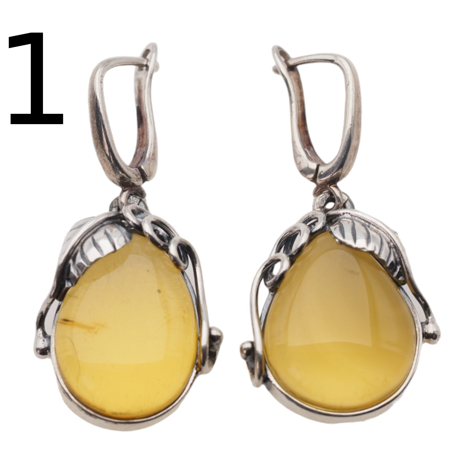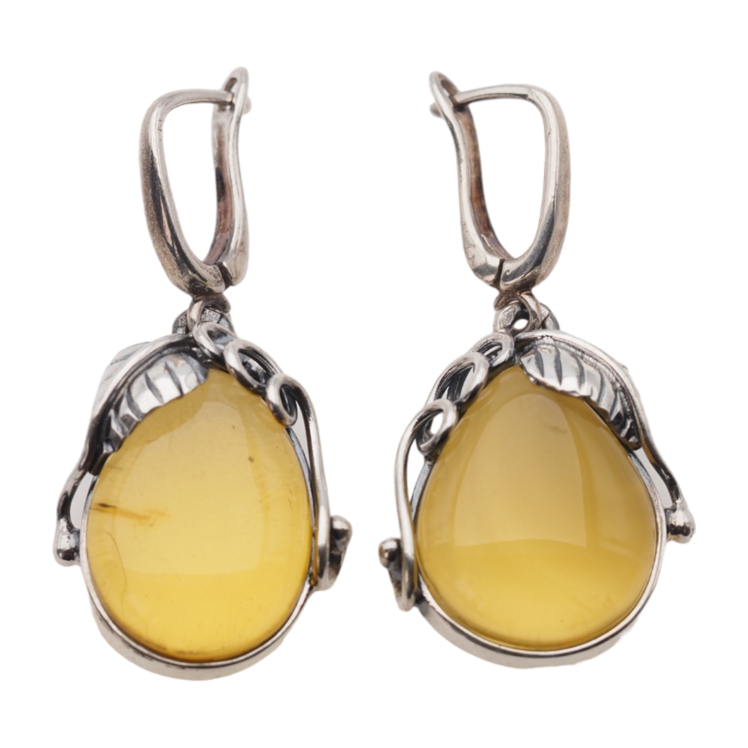 Kolczyki na angielskich zapięciach zrobione ręcznie z Bursztynu w kształcie łzy.