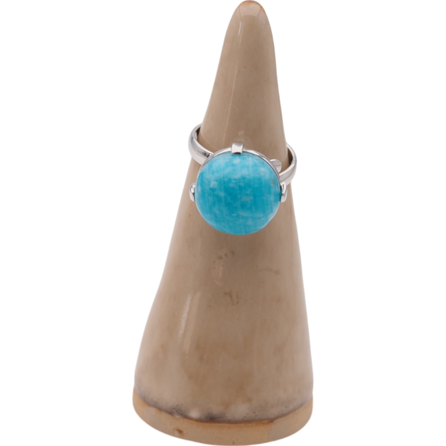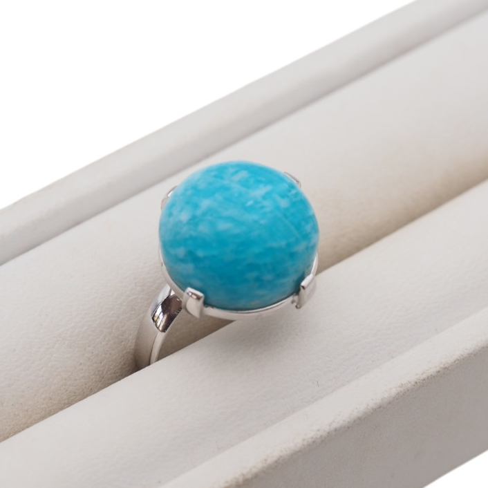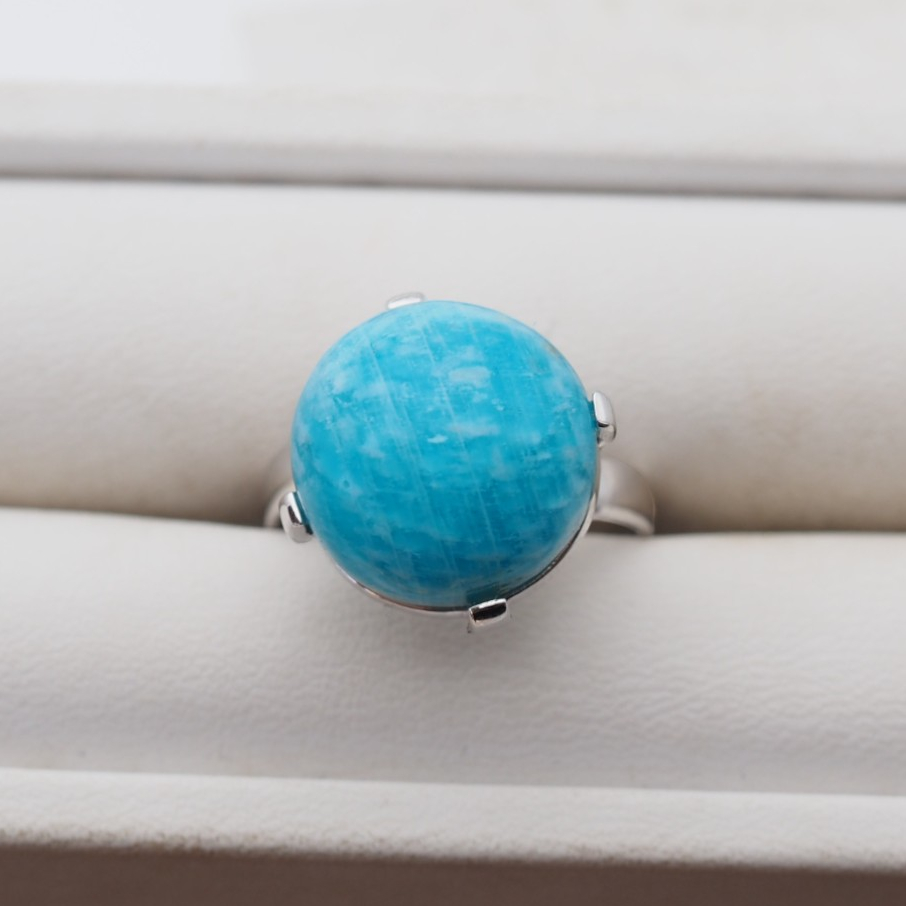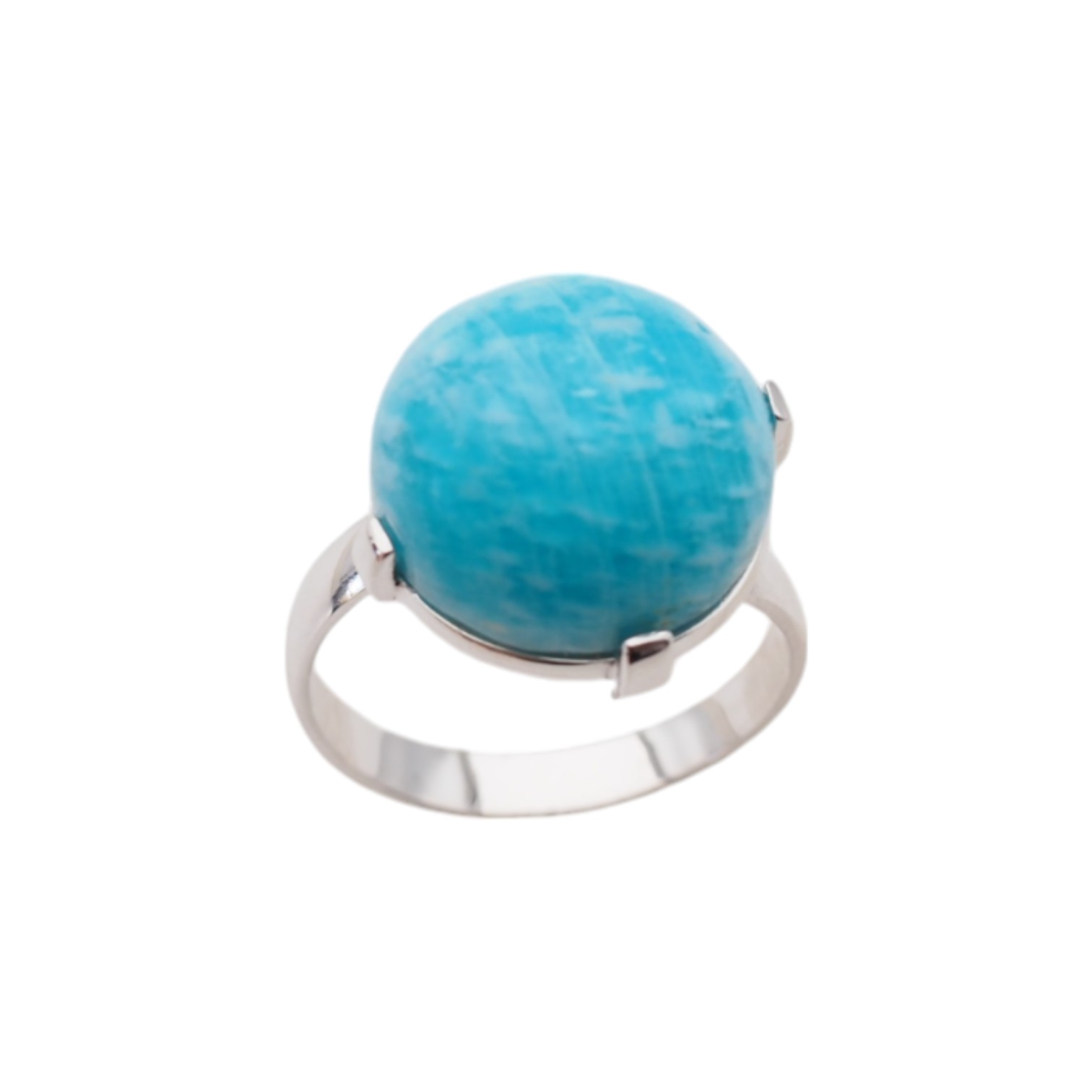 Pierścionek z Naturalnym Amazonitem w kształcie koła.