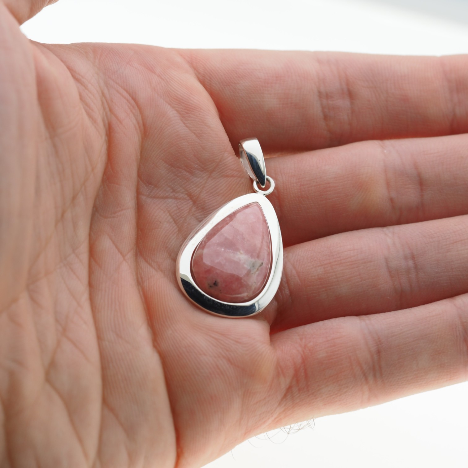 Naturalny Rodochrozyt i srebro rodowane - Zawieszka.