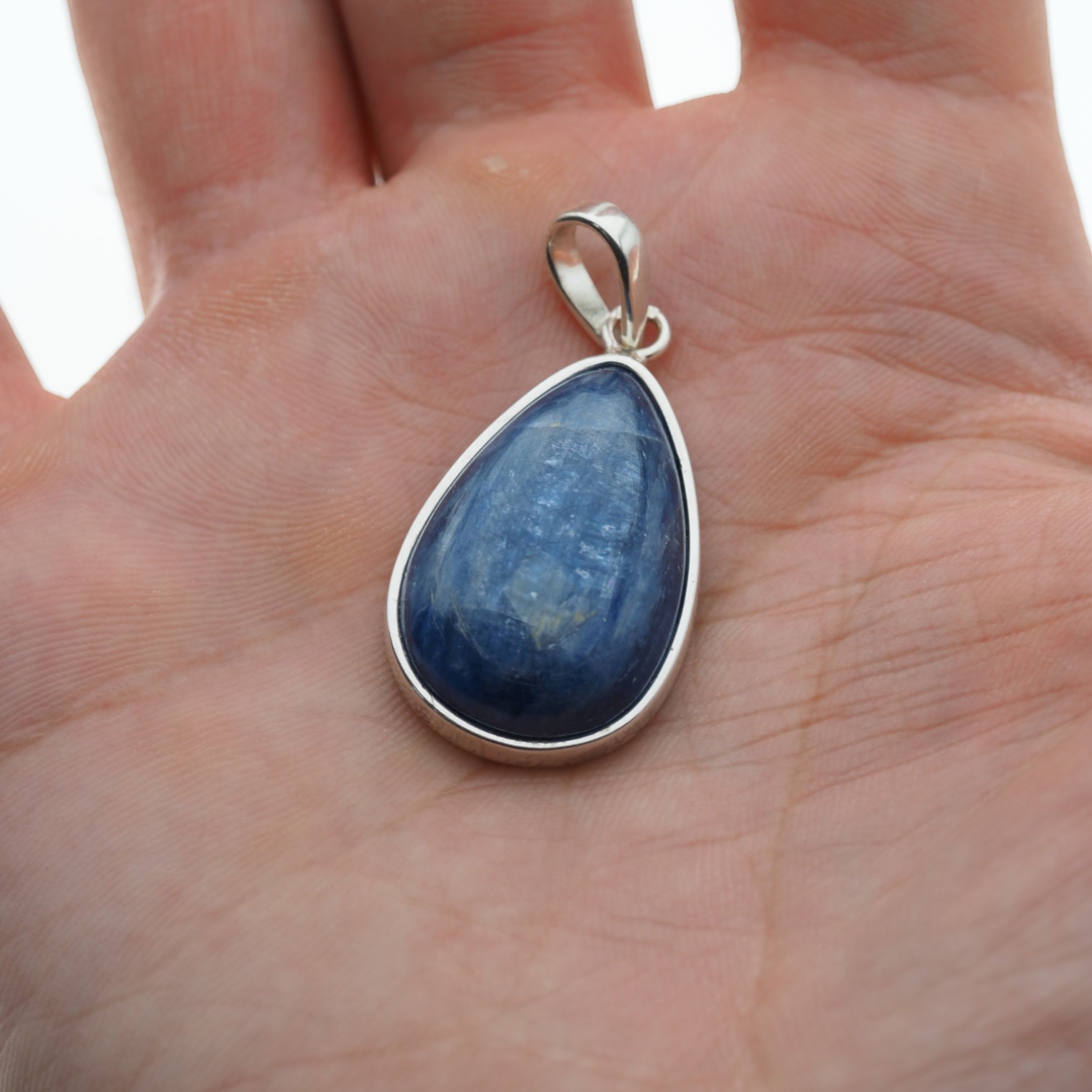 Zawieszka z naturalnym kyanitem w kształcie łzy to połączenie głębokiego, chłodnego błękitu kamienia z elegancją srebra próby 925. Całość prezentuje się lekko i szlachetnie – to biżuteria o wyraźnie naturalnym, a jednocześnie uporządkowanym, jubilerskim charakterze.