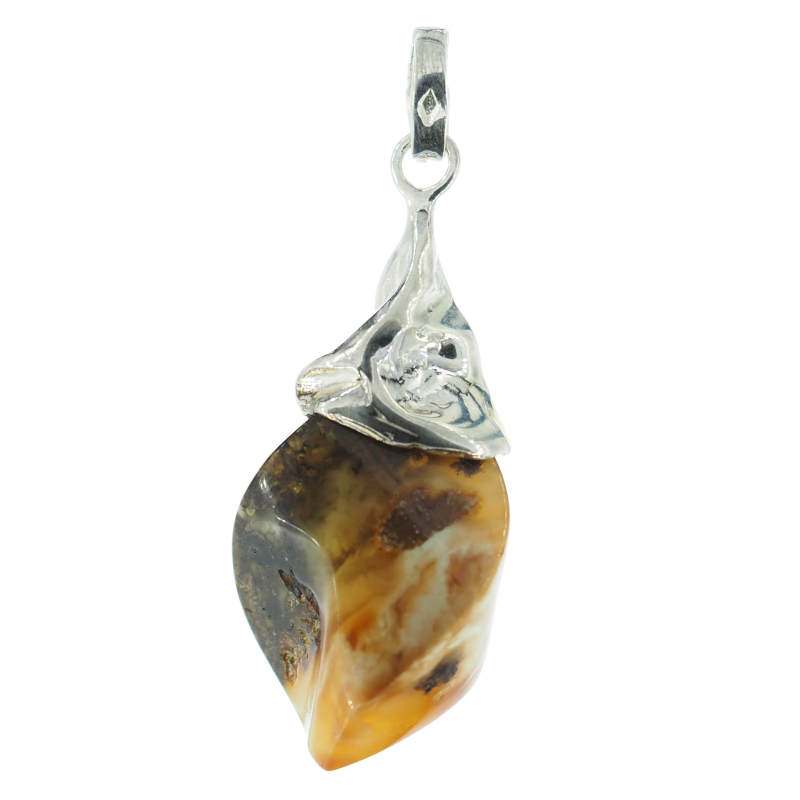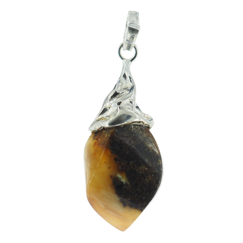 Zawieszka z bursztynem. Zawieszka ręcznie wykonana od podstaw w srebrze. Srebro próba 925.