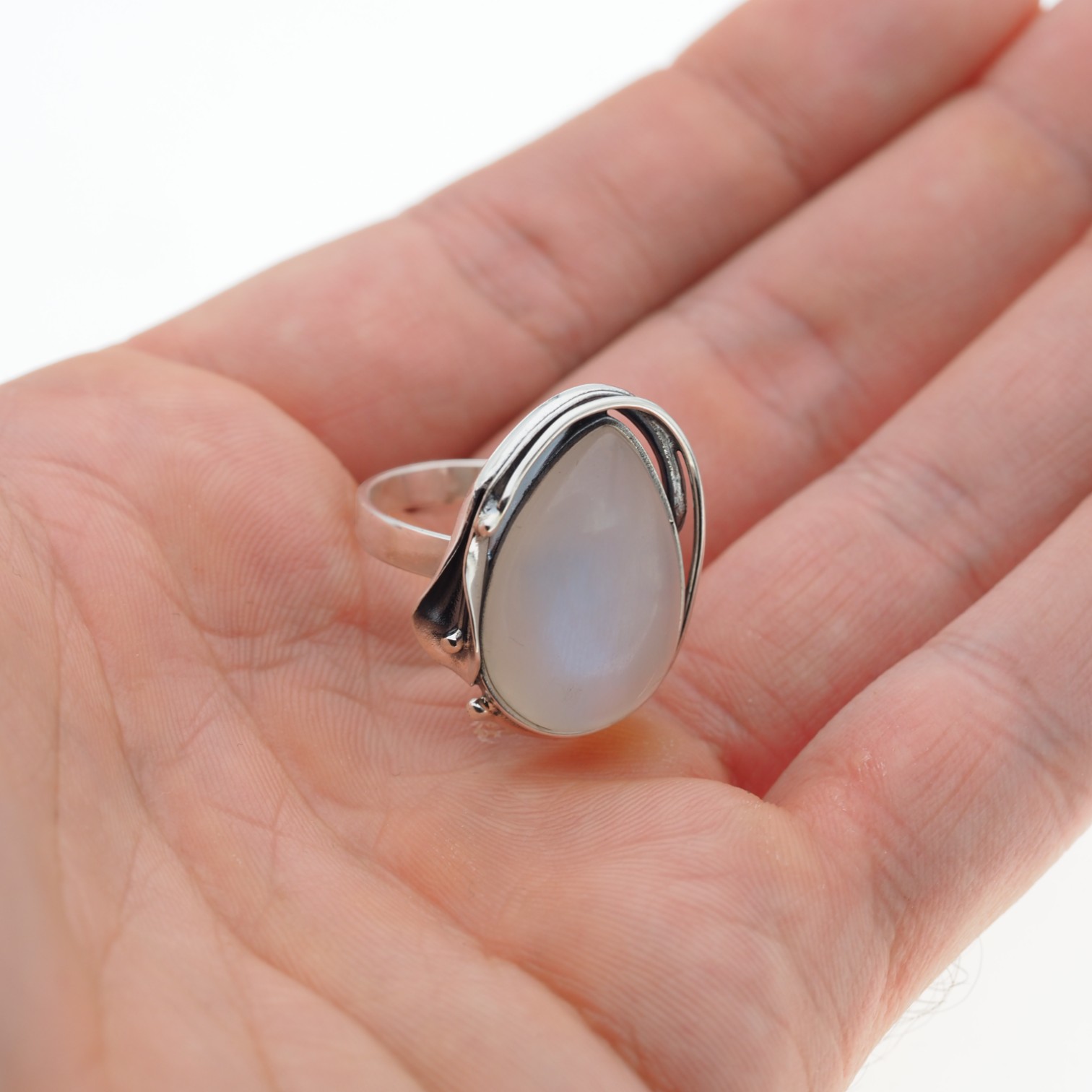 Pierścionek z Naturalnym Kamieniem Księżycowym.