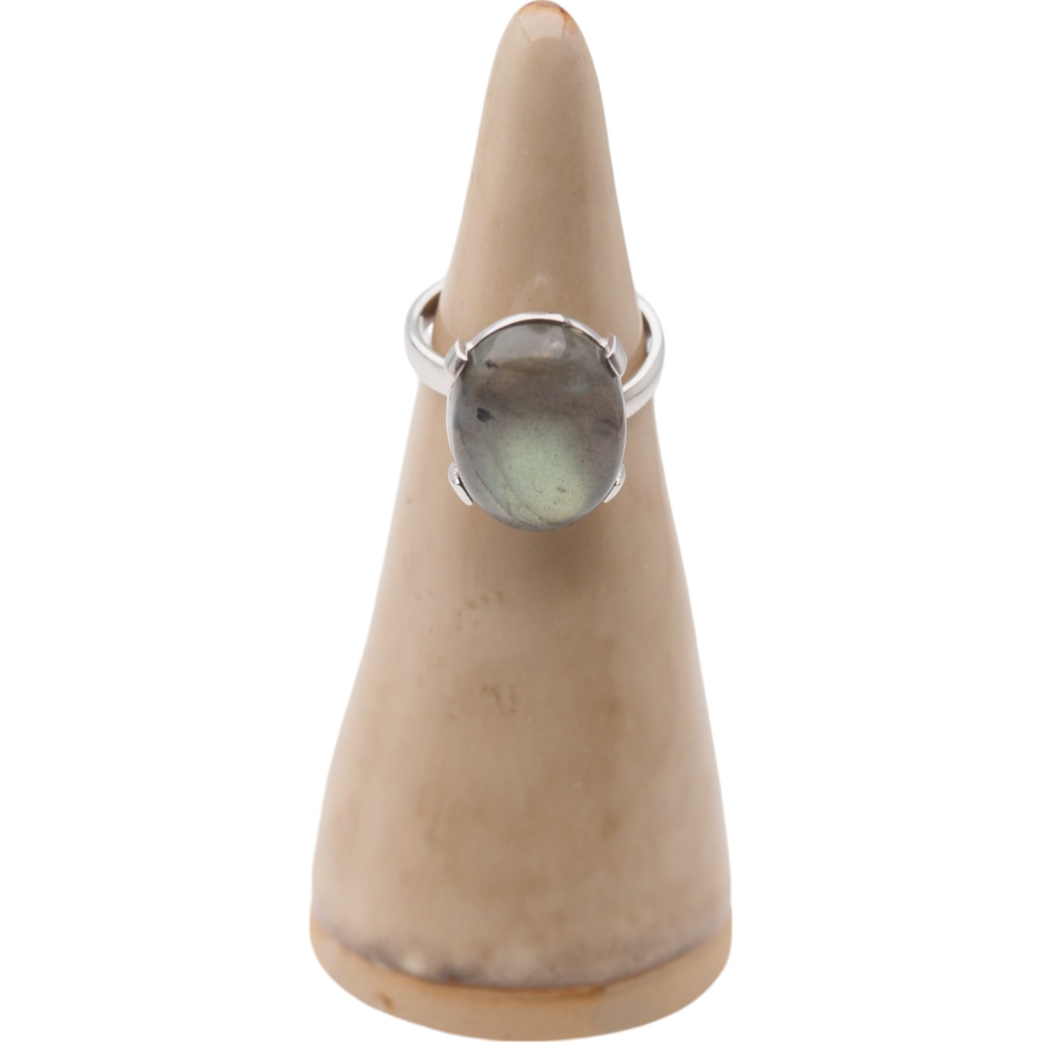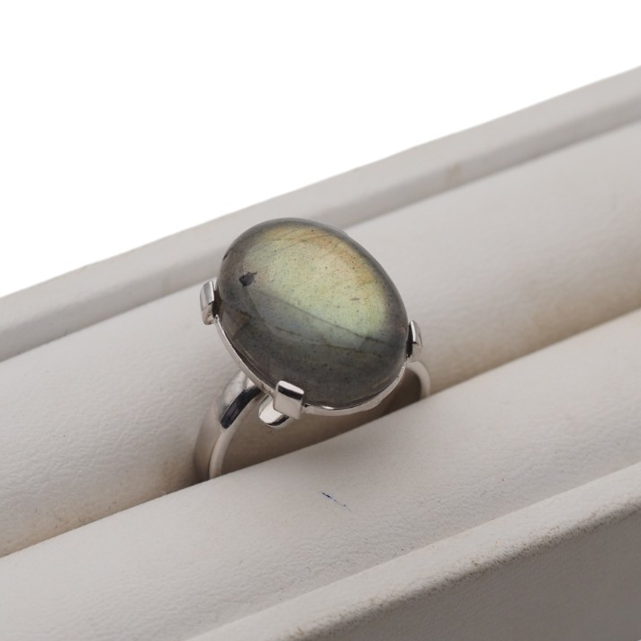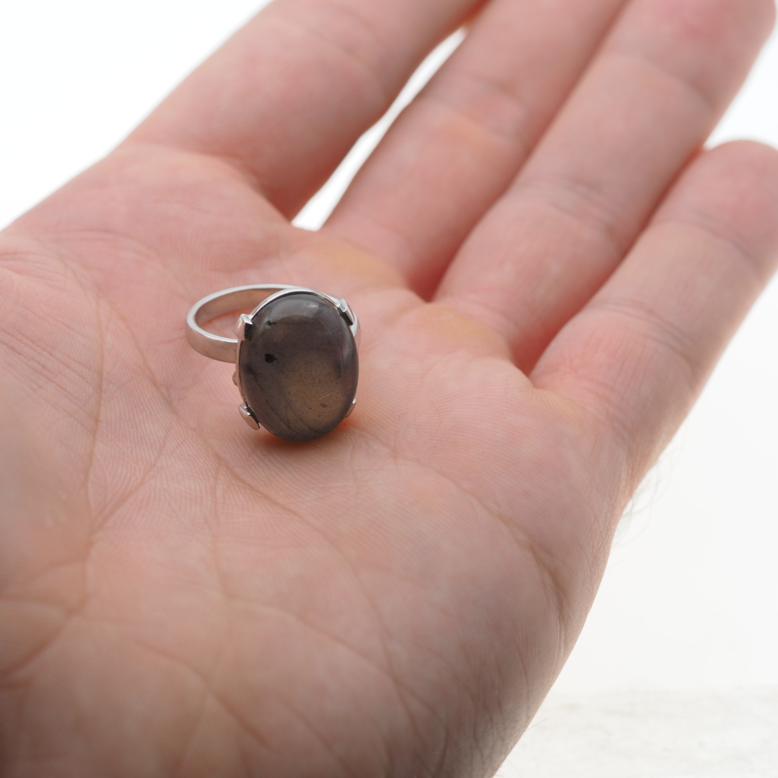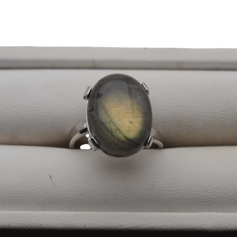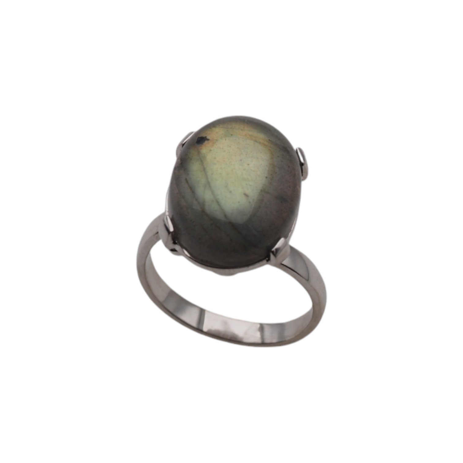 Pierścionek z Naturalnym Labradorytem w kształcie owalnym.