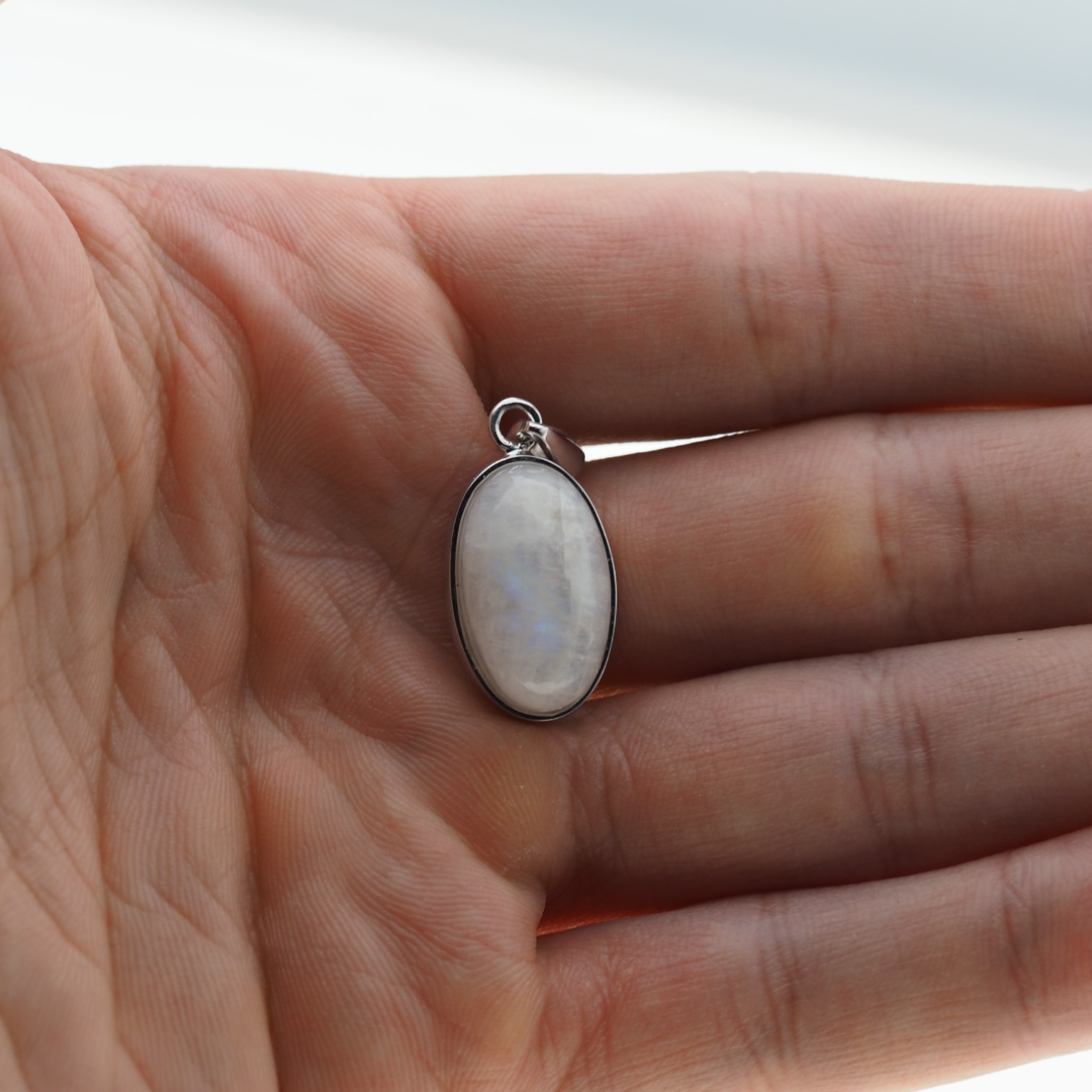 Kamień Księżycowy i srebro rodowane - zawieszka