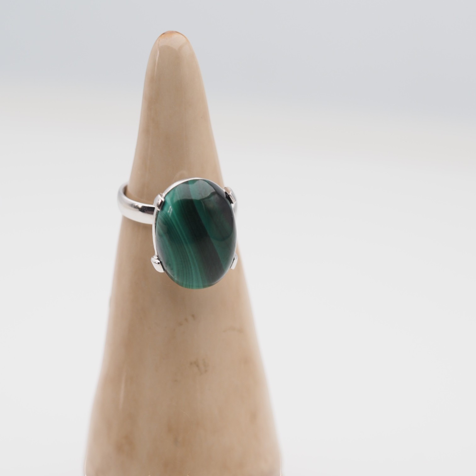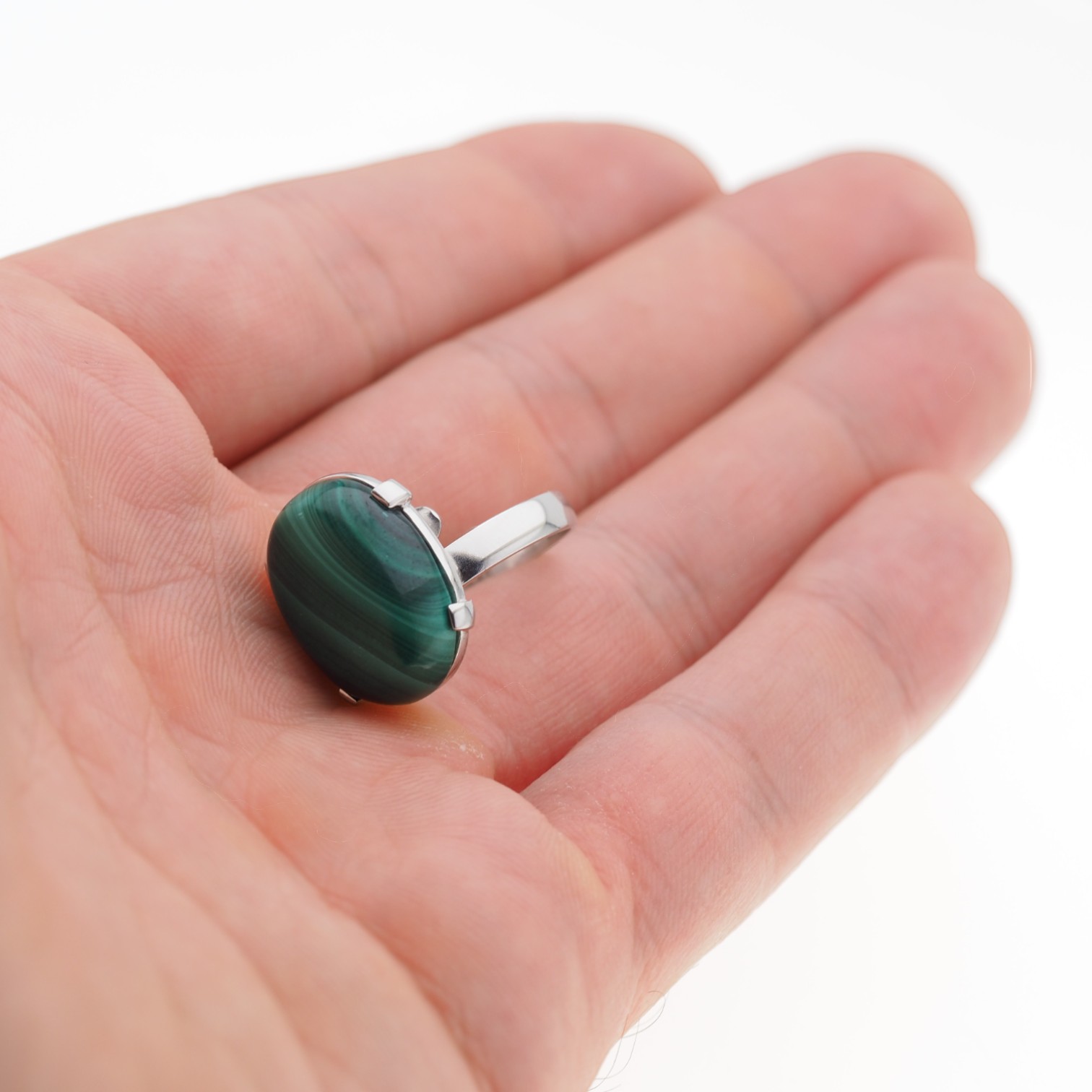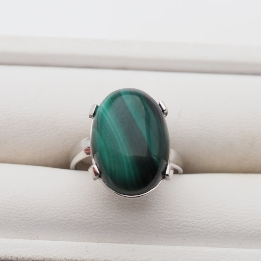 Naturalny Malachit i srebro - pierścionek.
