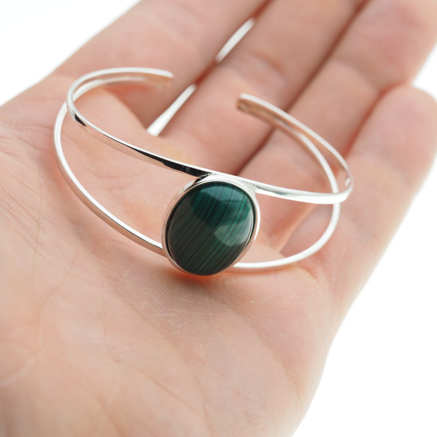 Bransoleta wykonana ręcznie Malachit i srebro.