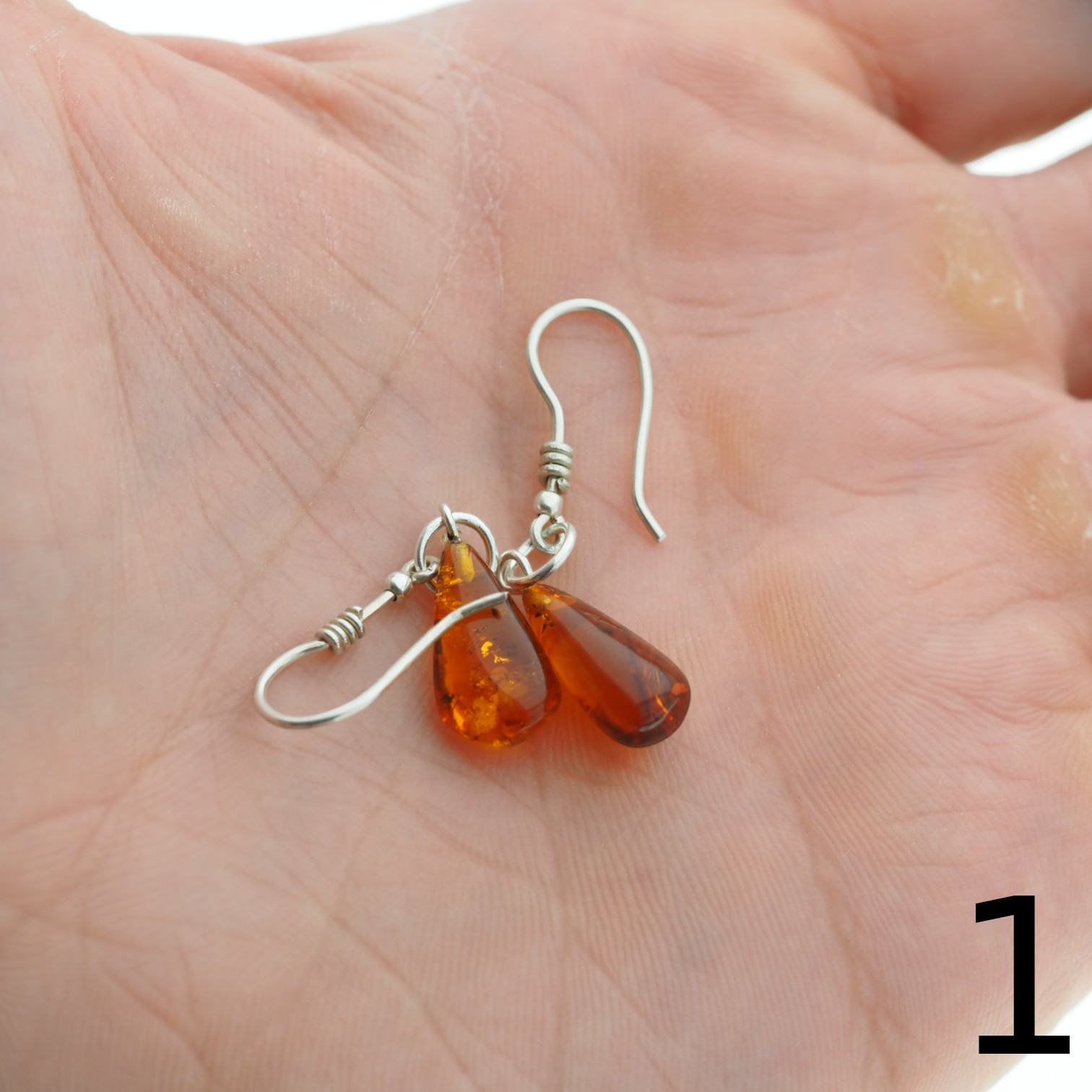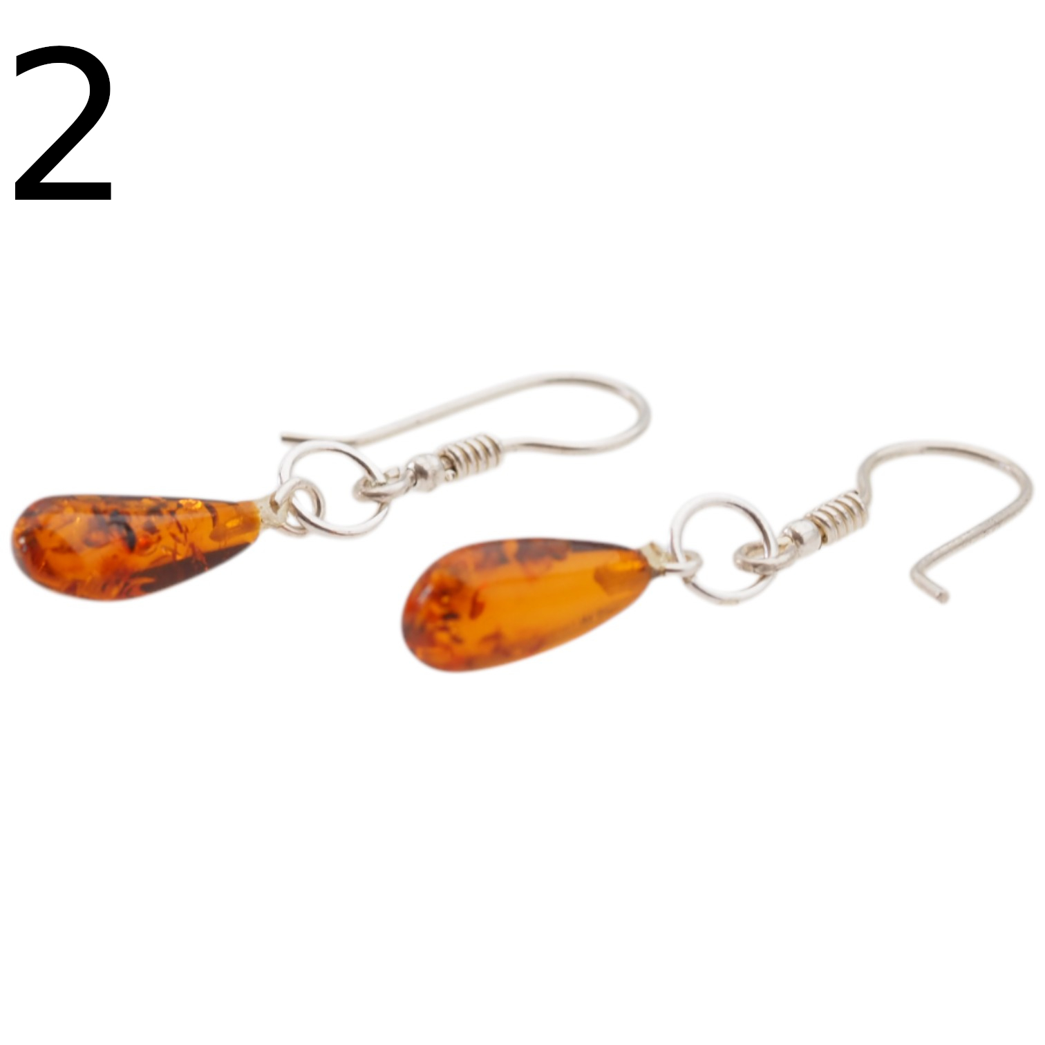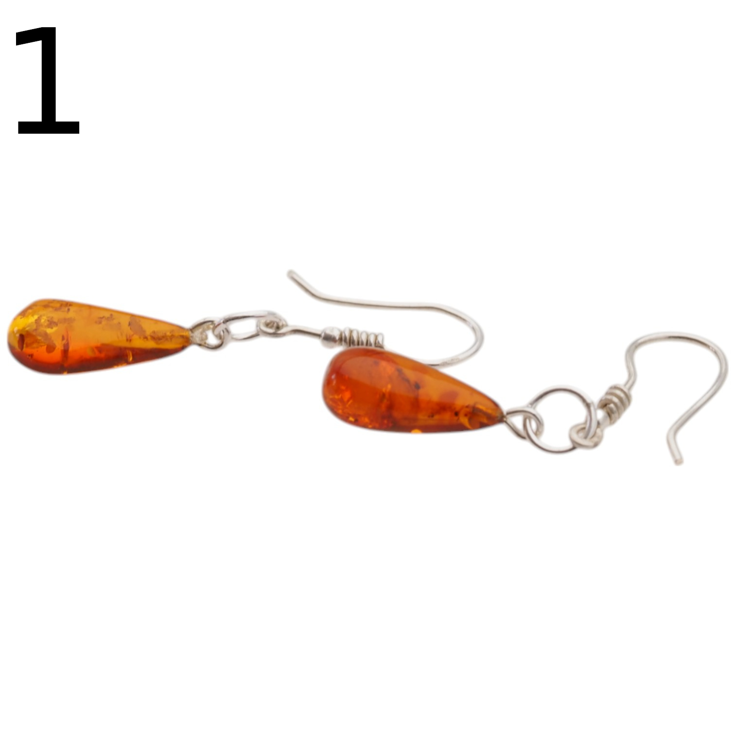 Kolczyki wytworzone ręcznie z Bursztynu koniakowego w kształcie łezki.