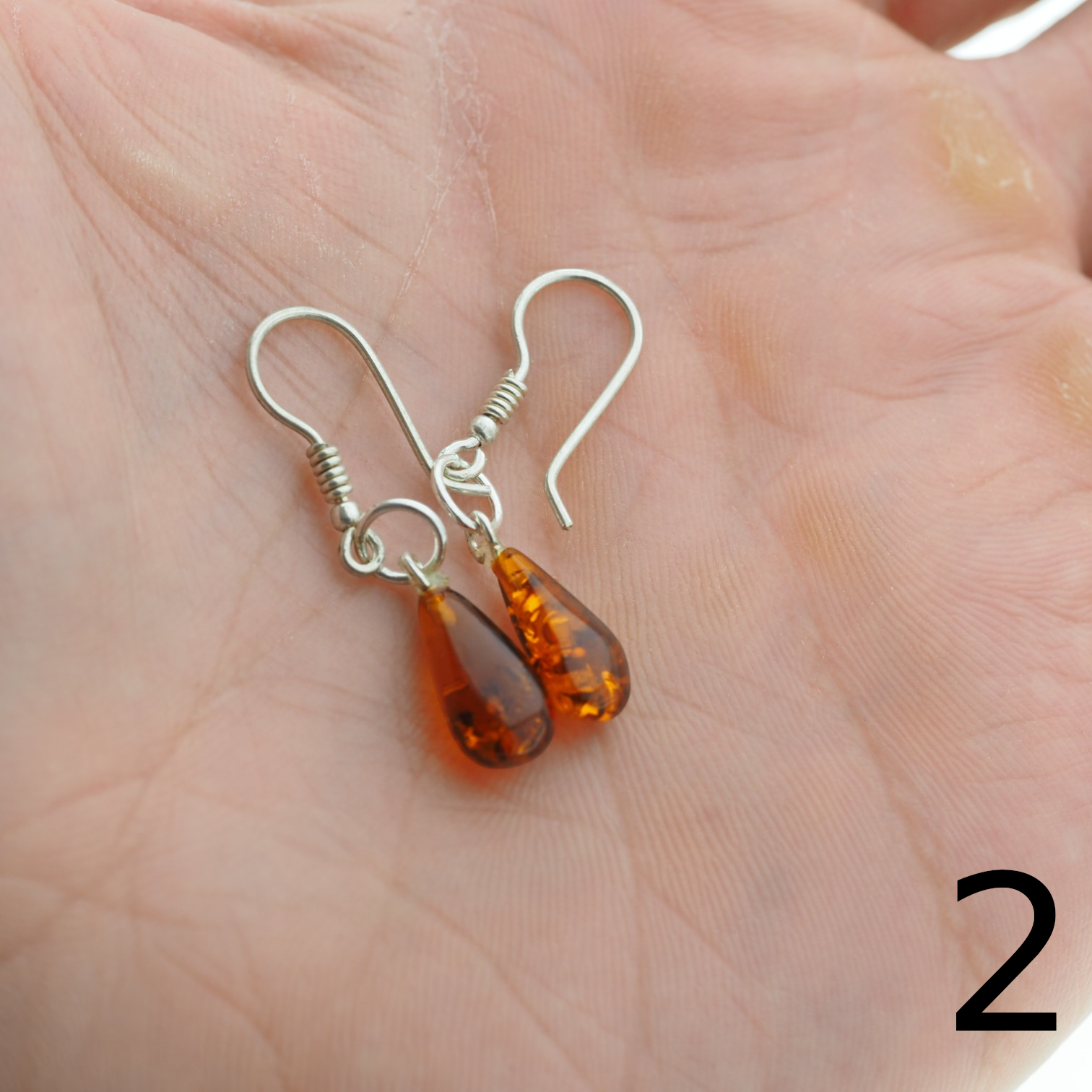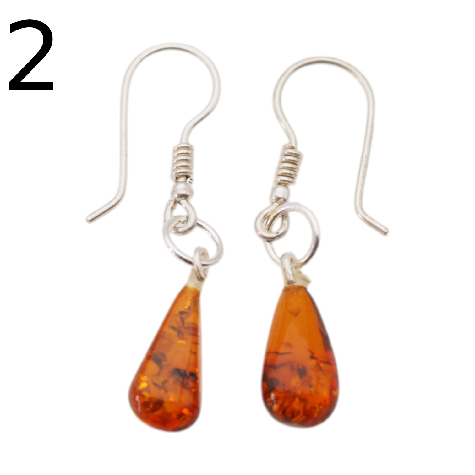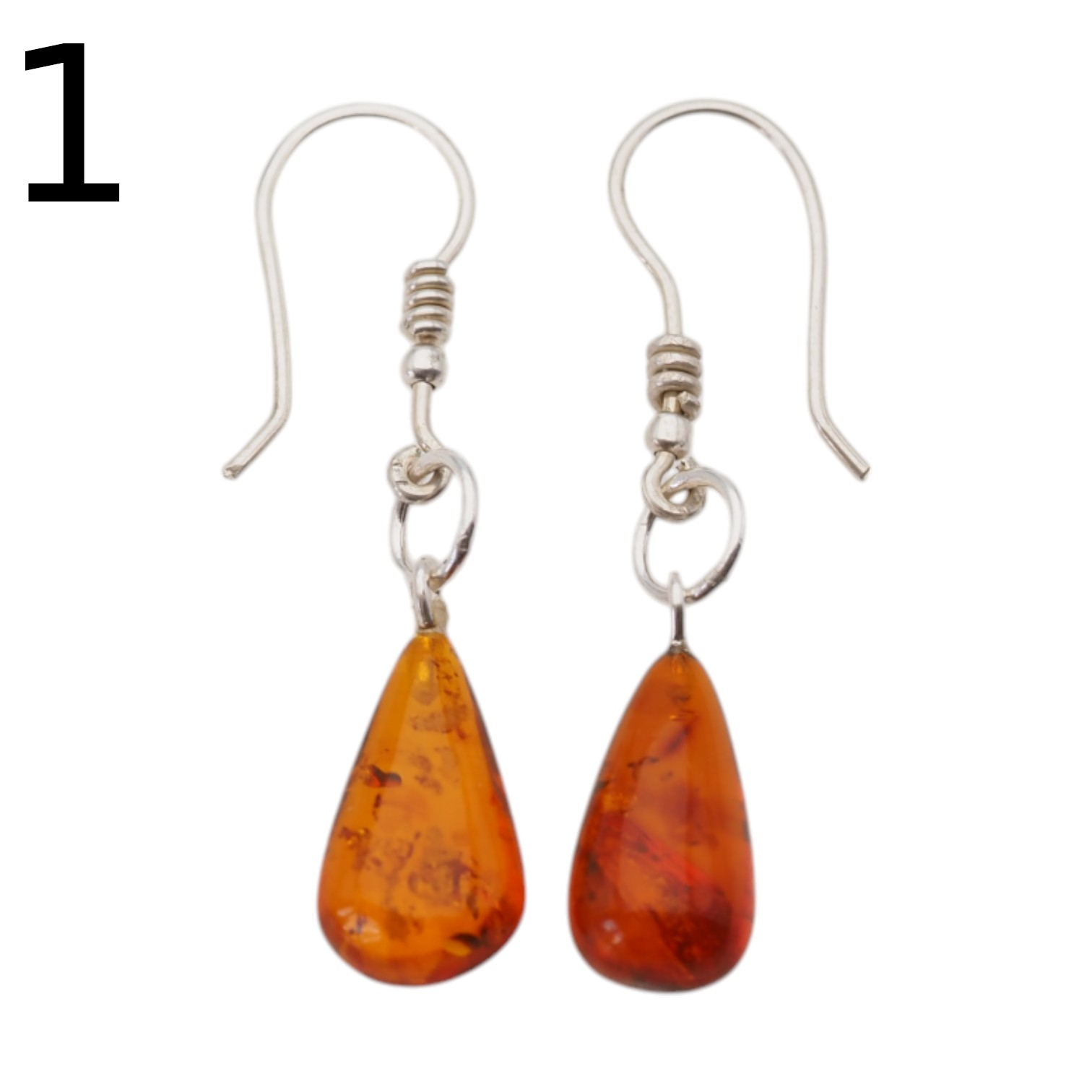Kolczyki wytworzone ręcznie z Bursztynu koniakowego w kształcie łezki.