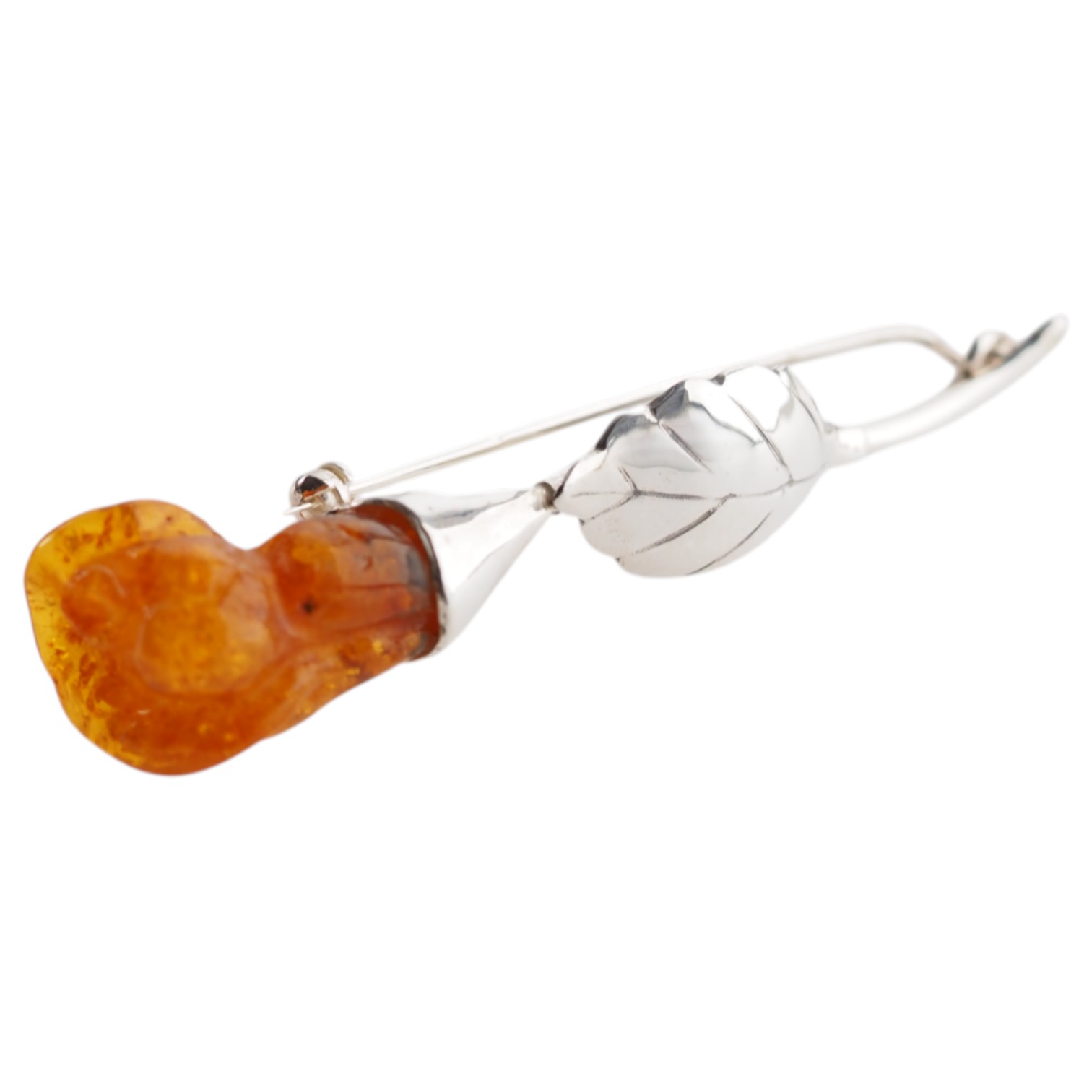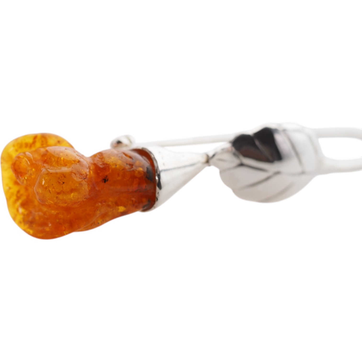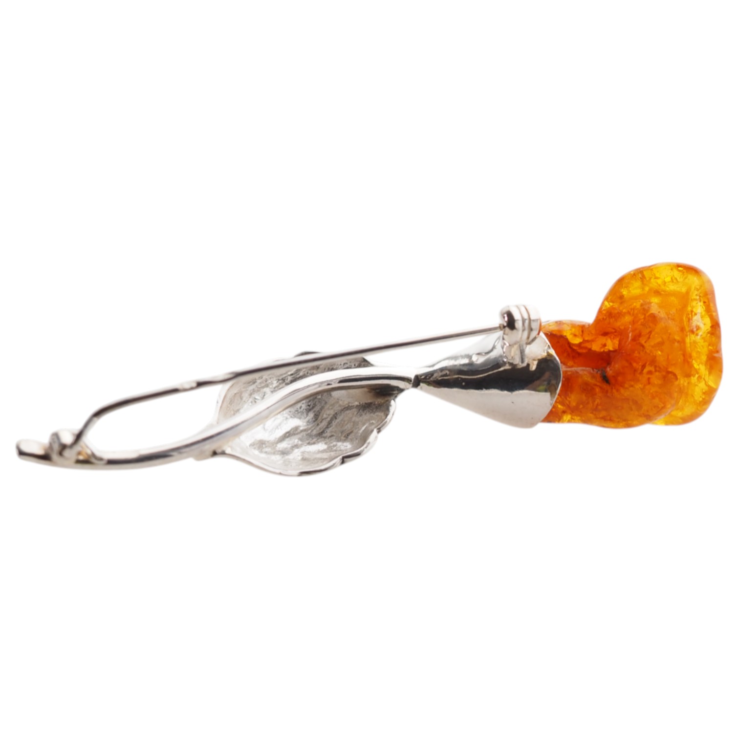✔ Wzornictwo: srebrny liść i kielich łączą się płynnie z bursztynowym kwiatem – tworząc spójną, naturalistyczną kompozycję.