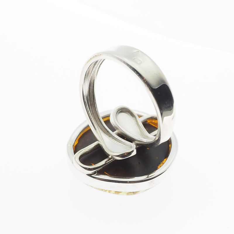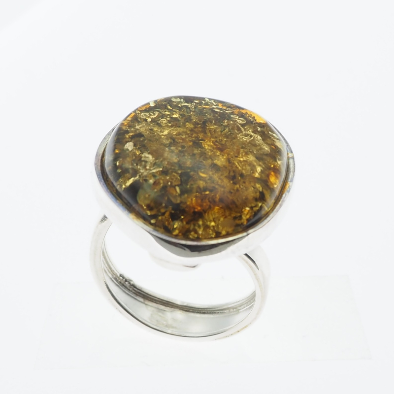 Pierścionek z Naturalnym Bursztynem zielonym.