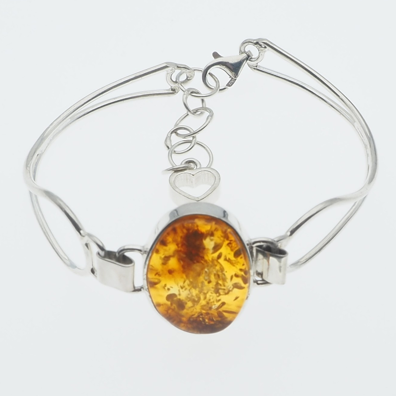 Bursztyn koniakowy i srebro - ręczne zrobiona bransoleta.