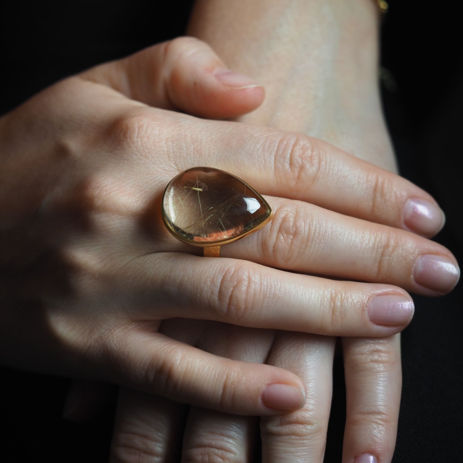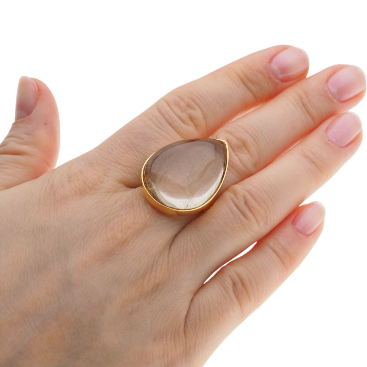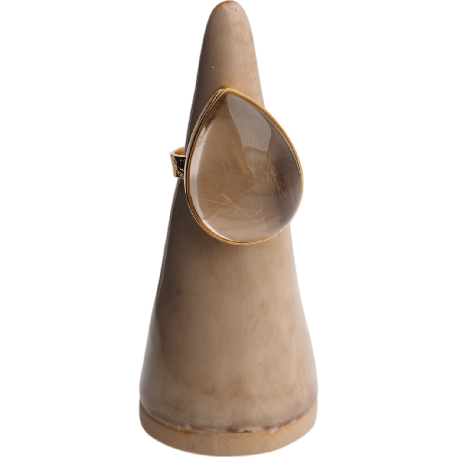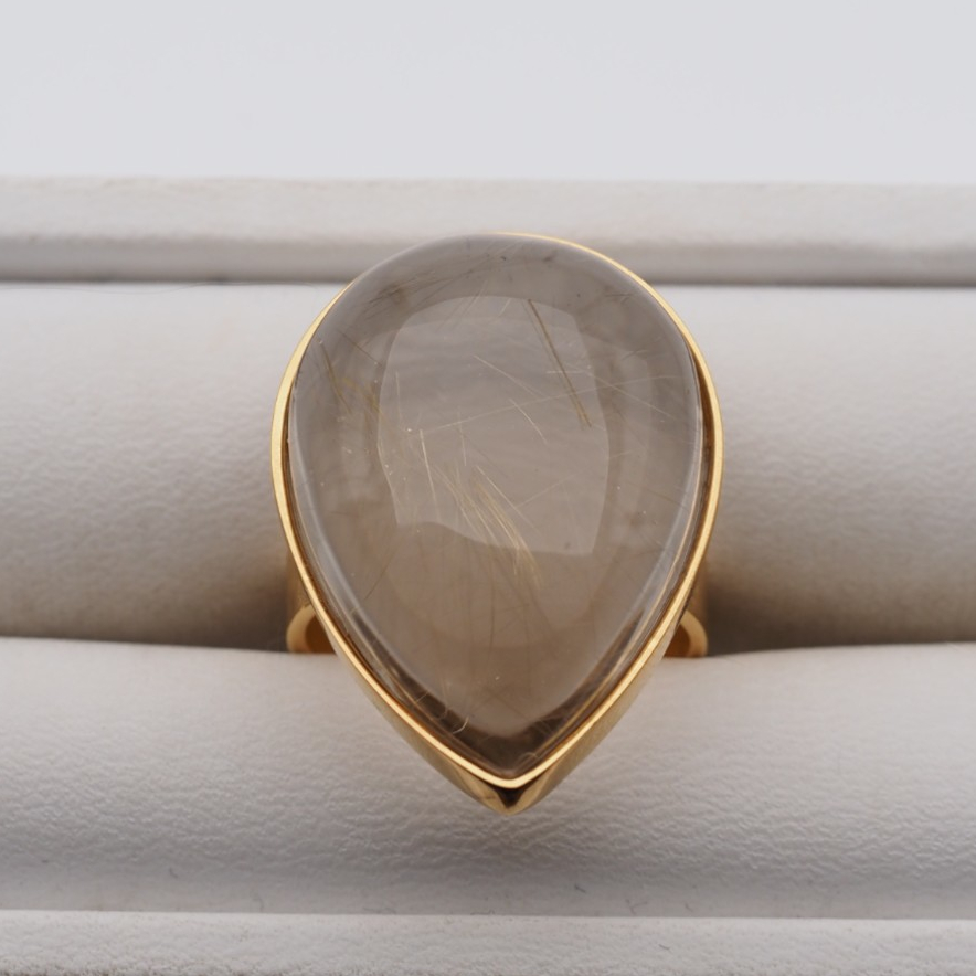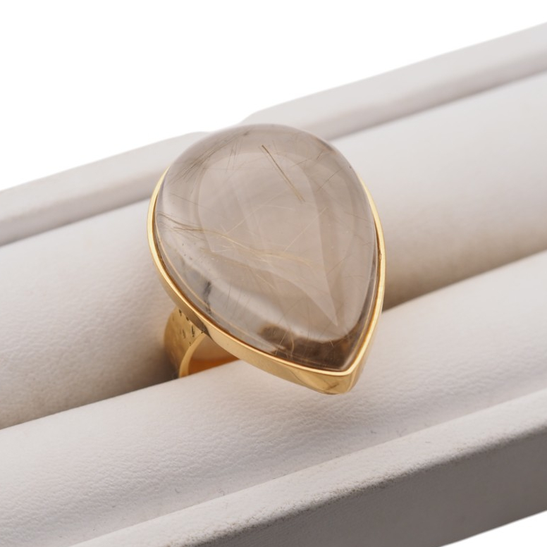 Pierścionek z Naturalnym Kwarcem Rutylowym w kształcie łzy.