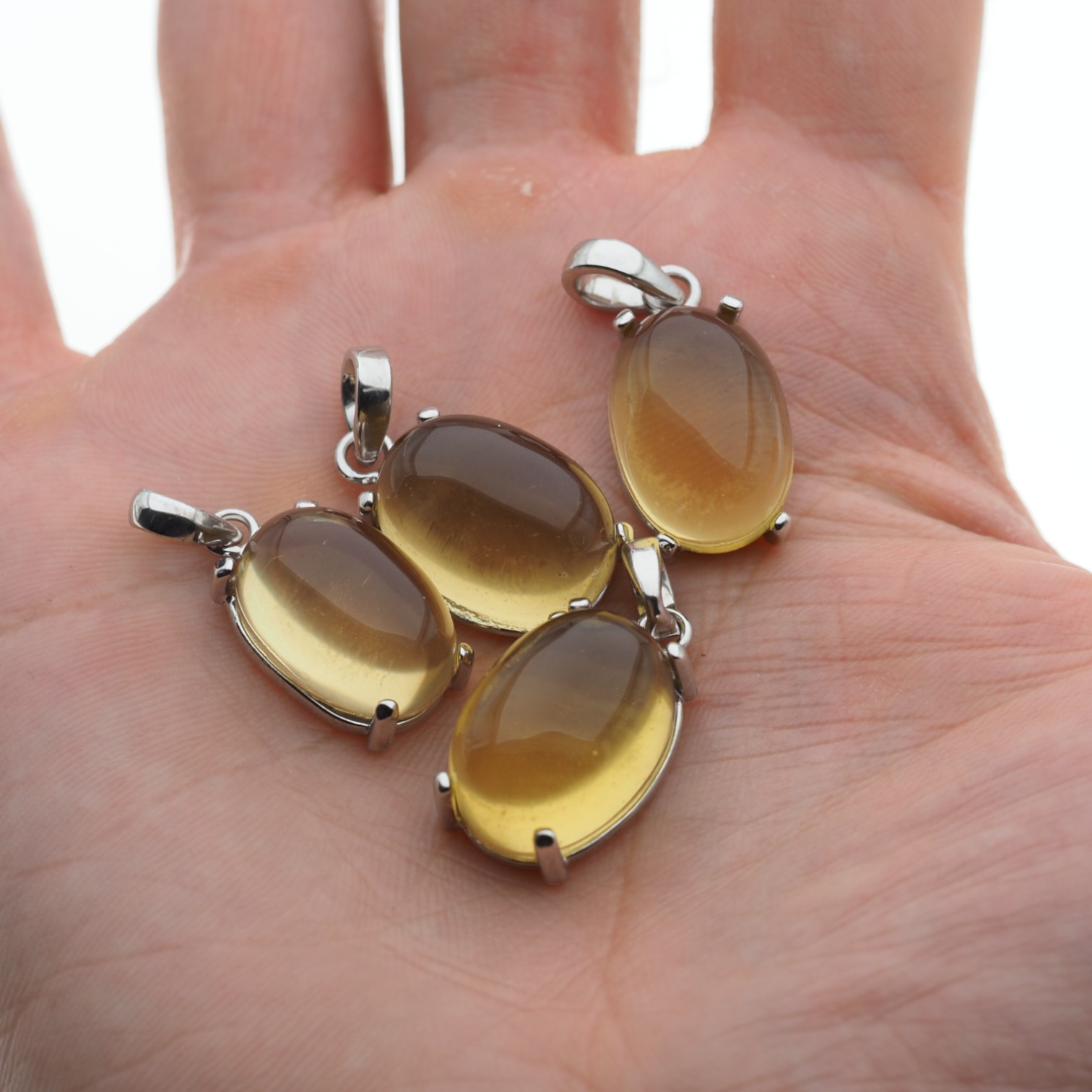 Wisiorek wyprodukowany ręcznie z Cytrynem (Lemonem) w kształcie owalnym.