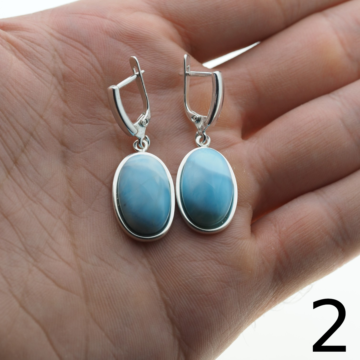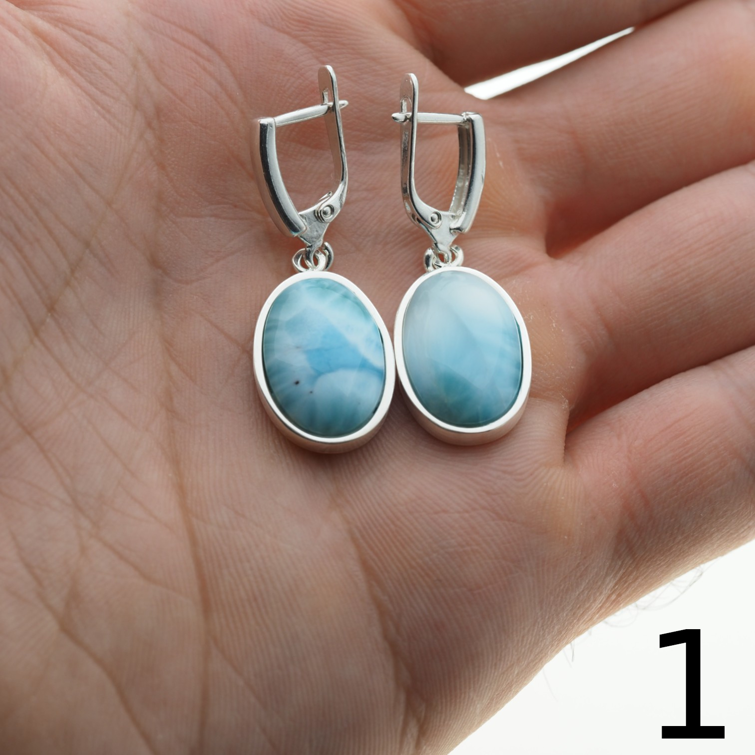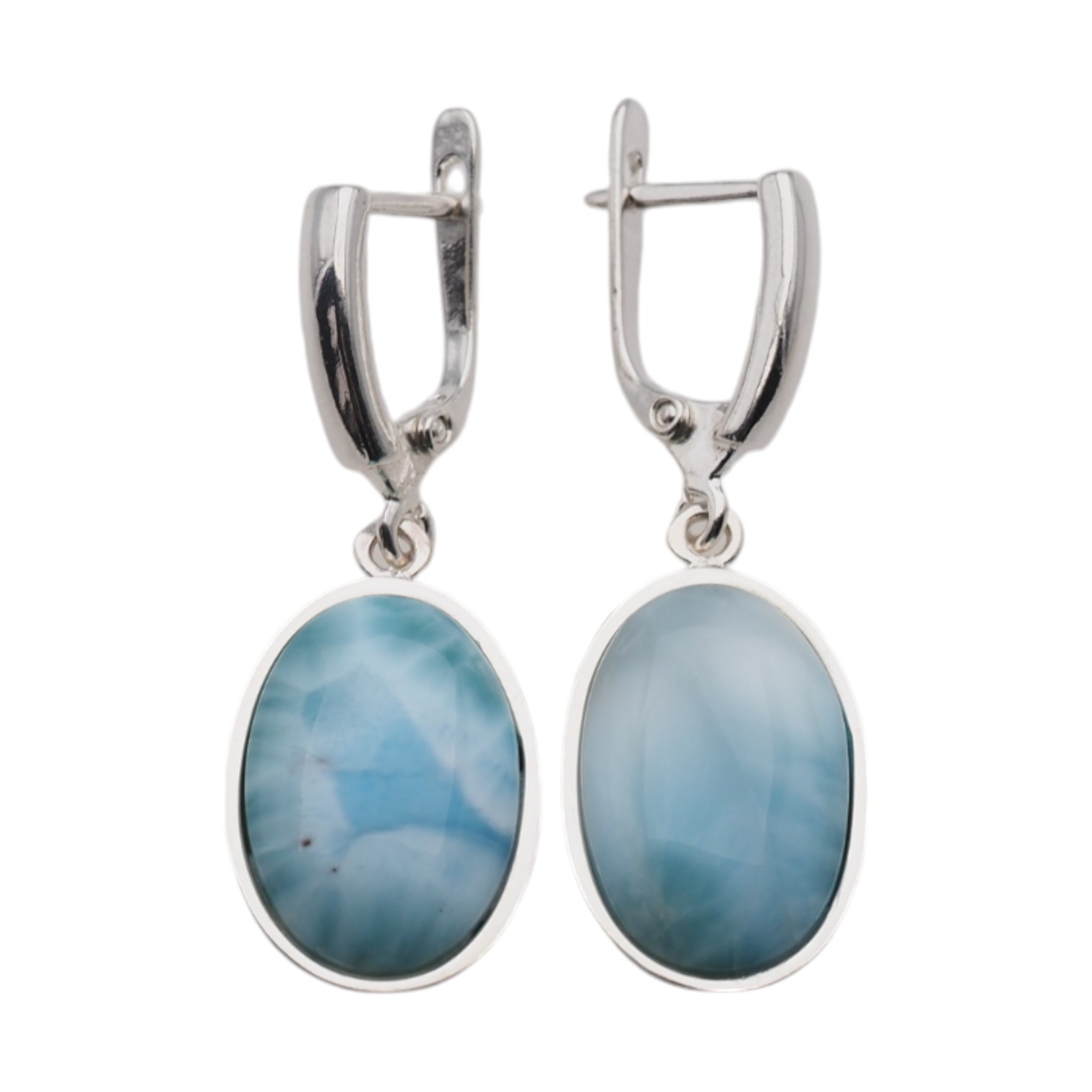 Kolczyki stworzone ręcznie z Larimarem w kształcie owalnym.