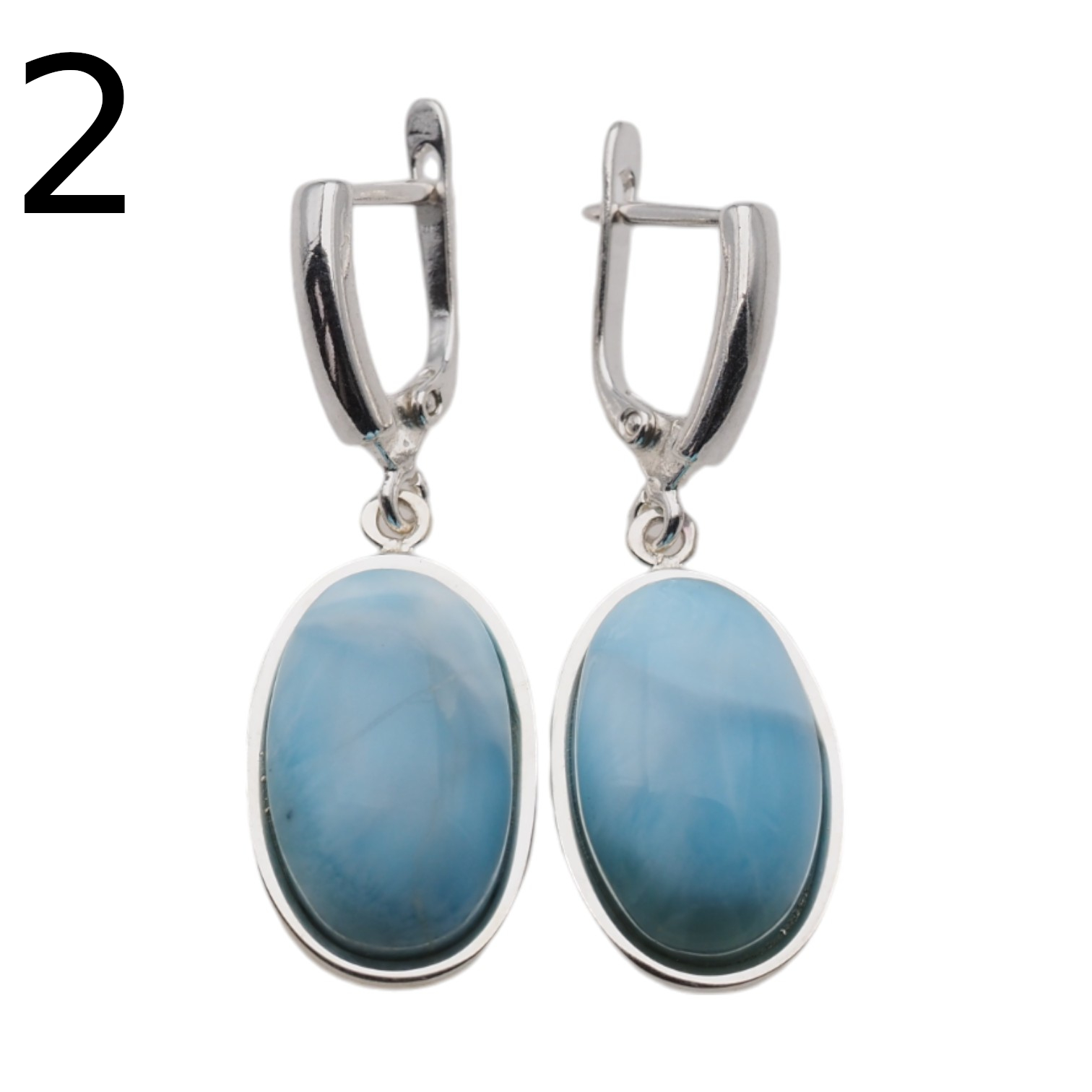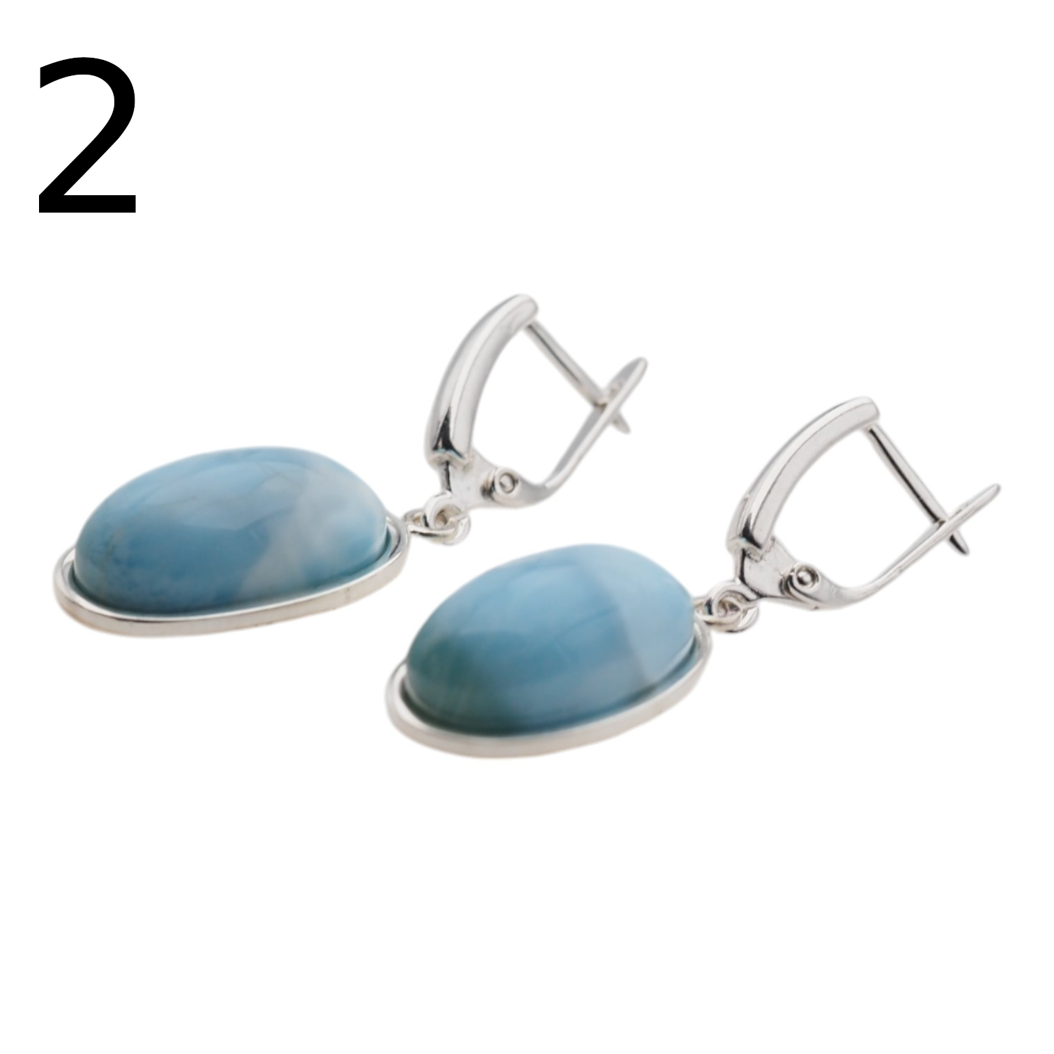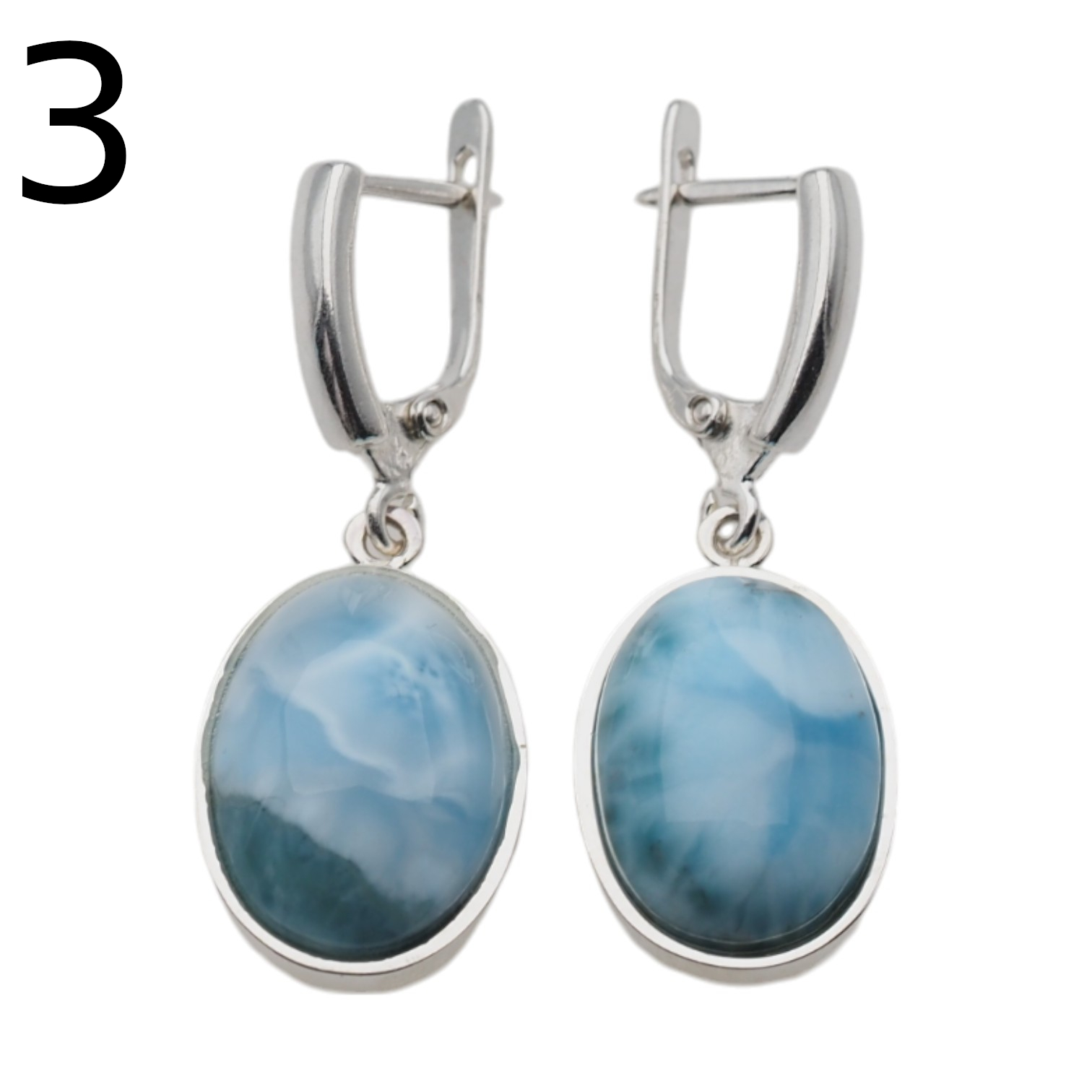 Kolczyki stworzone ręcznie z Larimarem w kształcie owalnym.