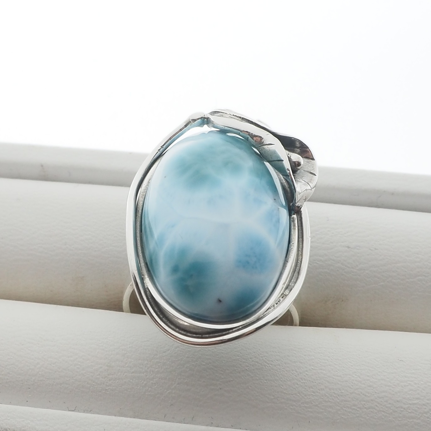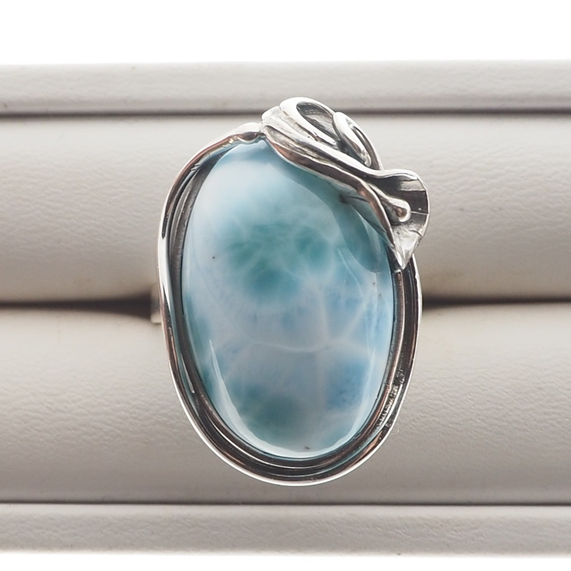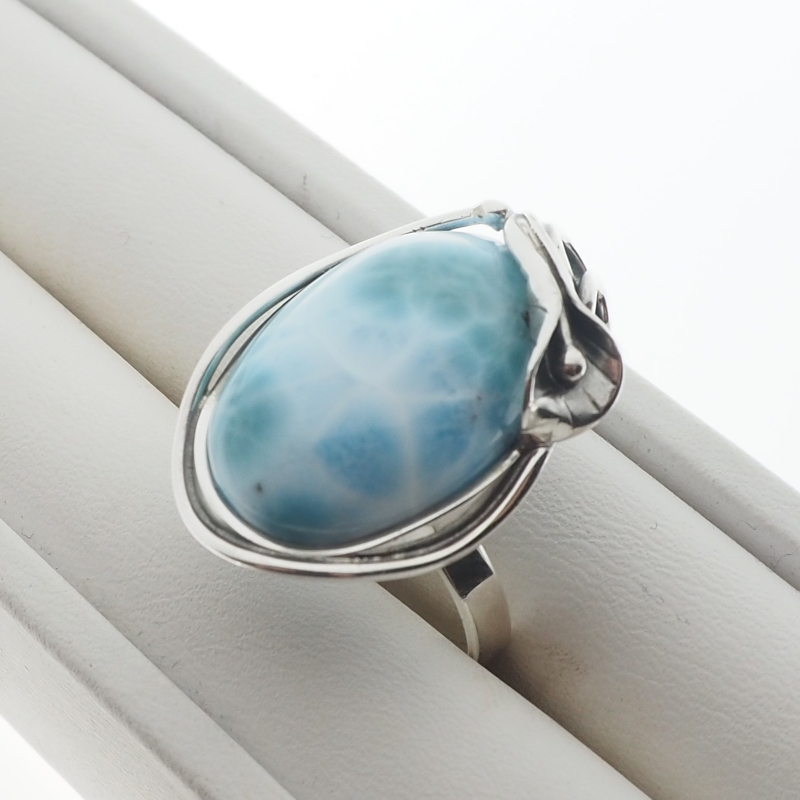 Pierścionek z Naturalnym Larimarem w kształcie owalnym.