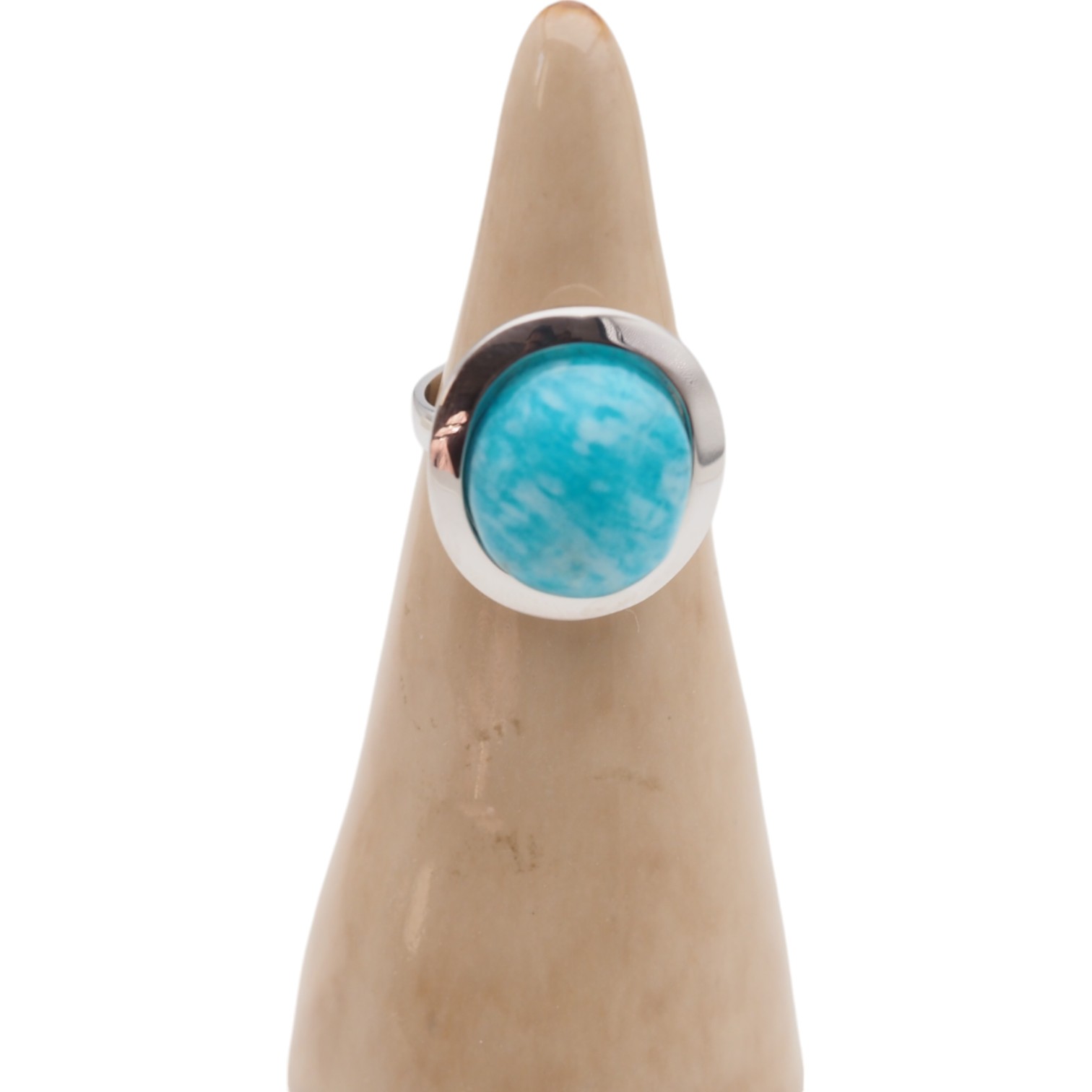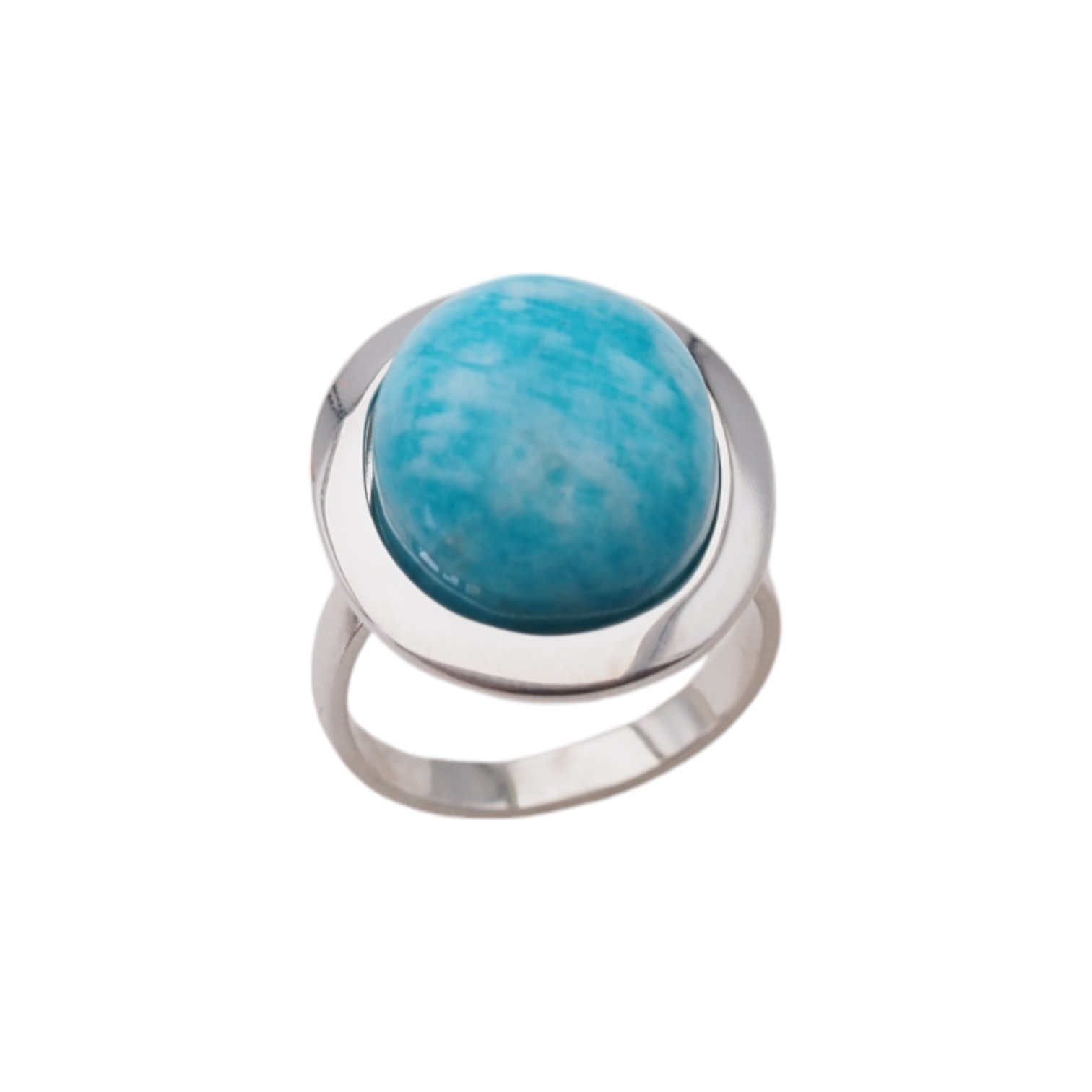 Pierścionek z Naturalnym Amazonitem w kształcie owalnym.
