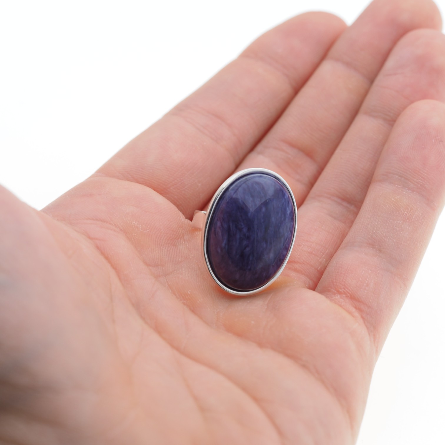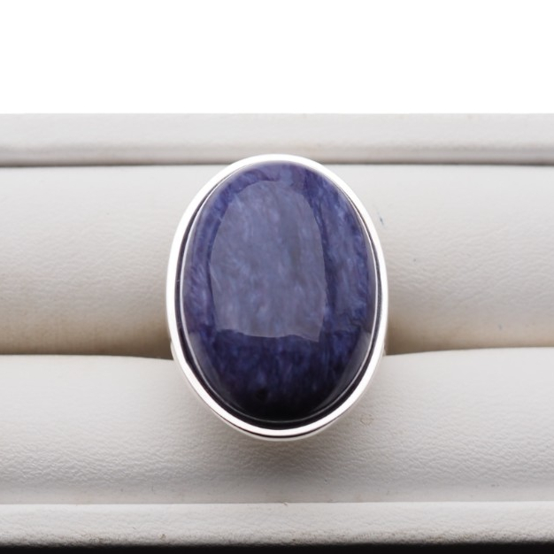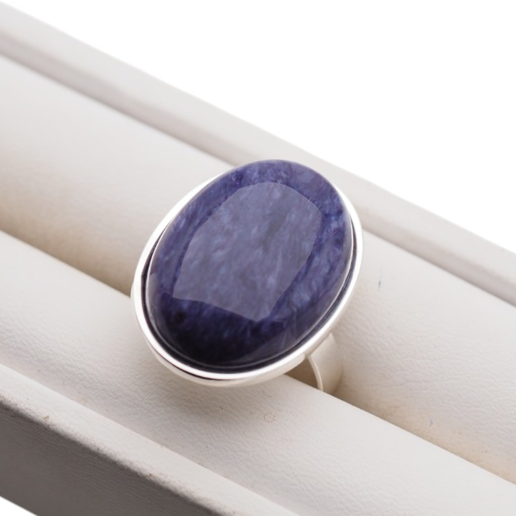 Pierścionek z Naturalnym Czaroitem w kształcie owalnym.