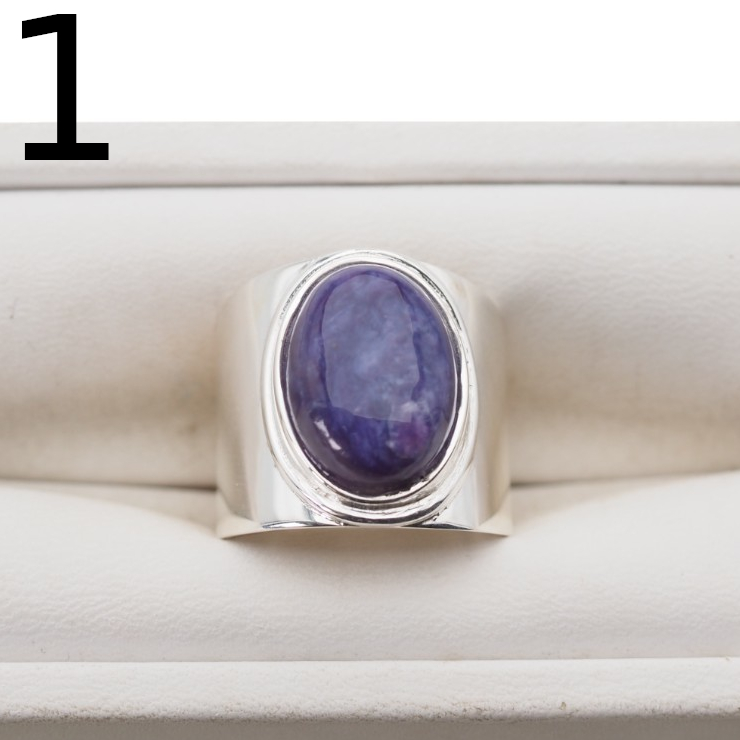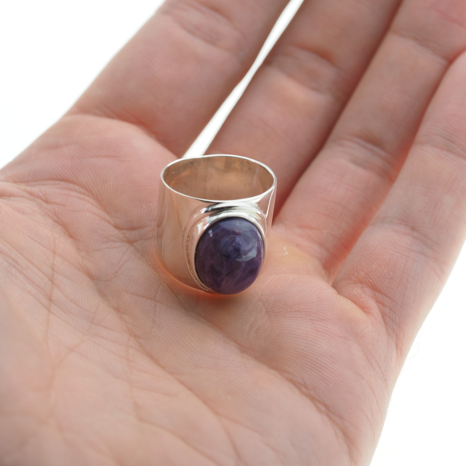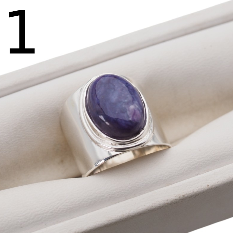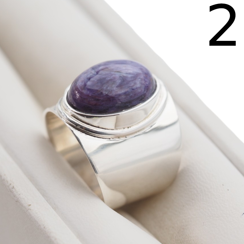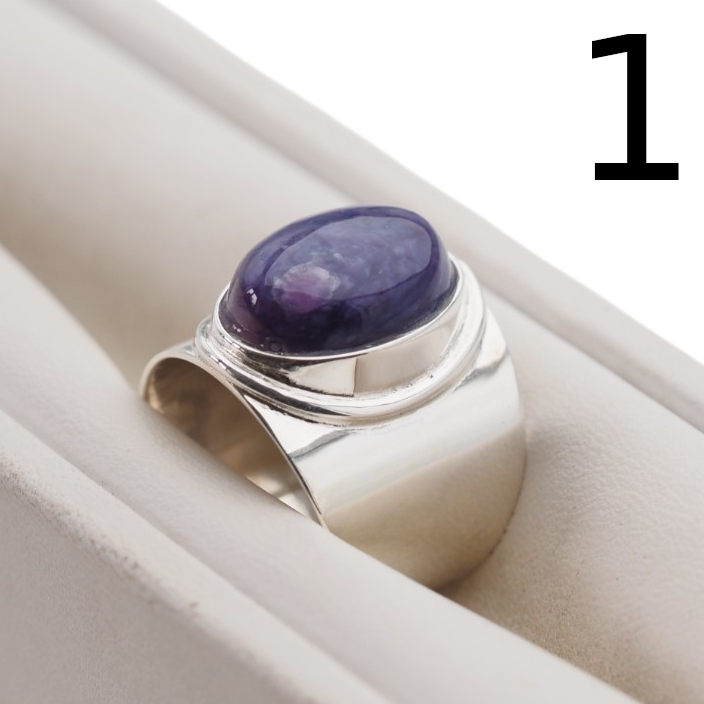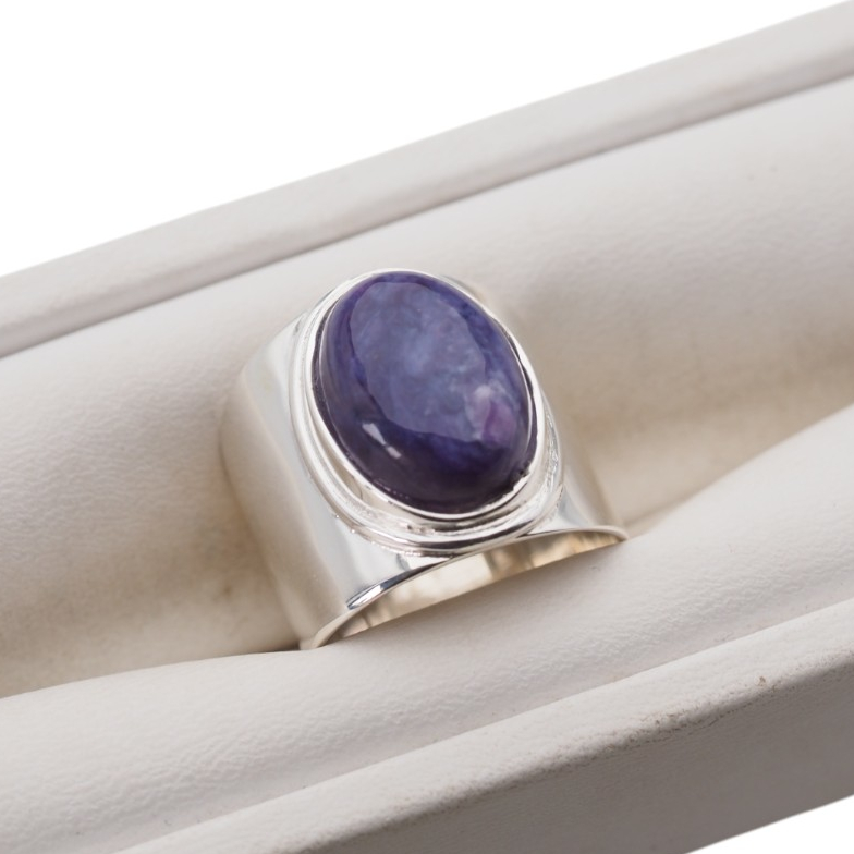 Sygnet z Naturalnym Czaroitem w kształcie owalnym.