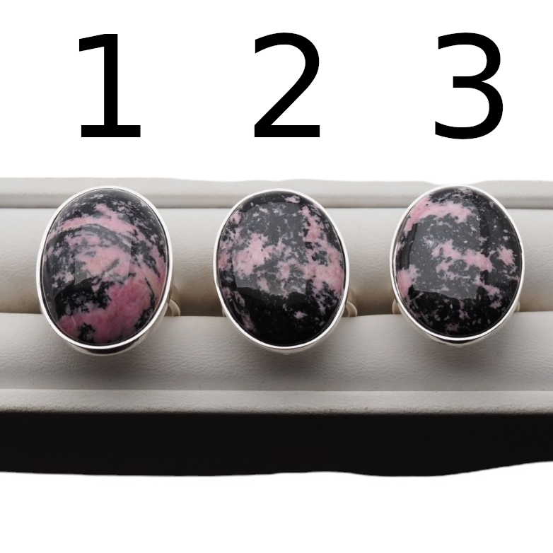 Pierścionek z Naturalnym Rodonitem w kształcie owalnym.