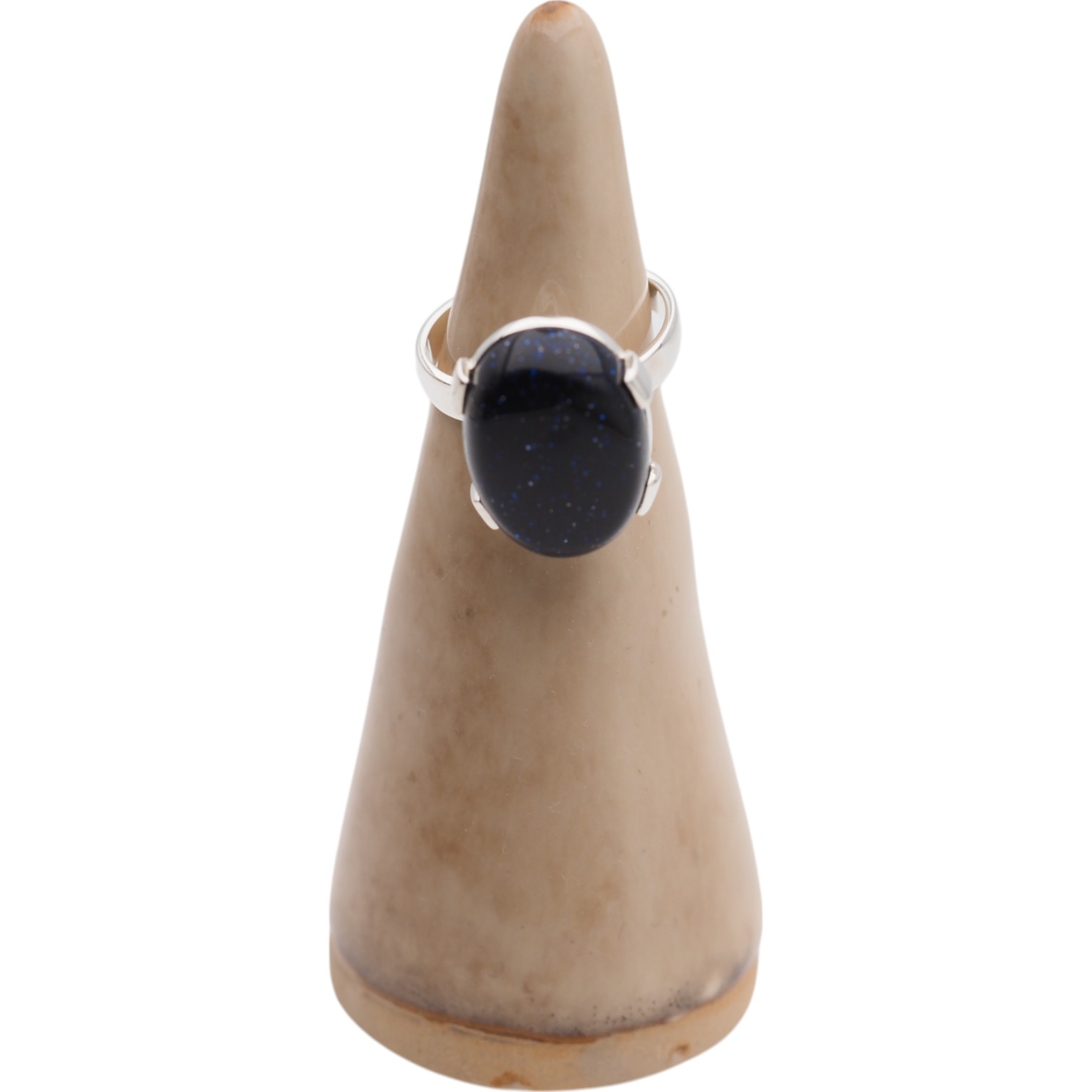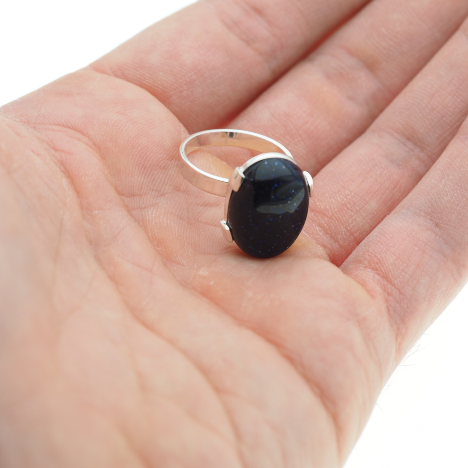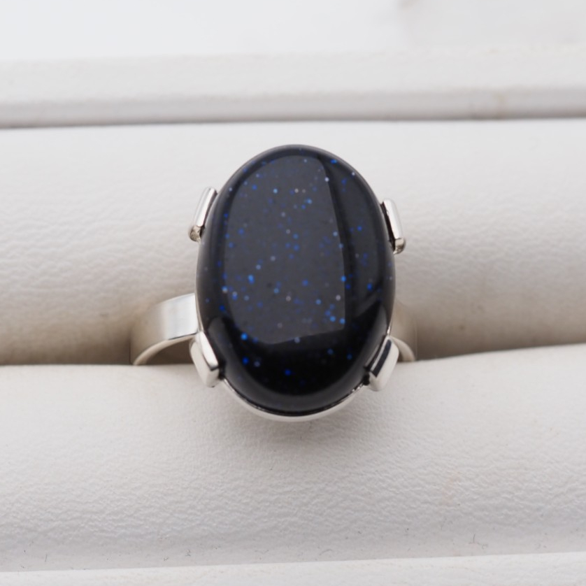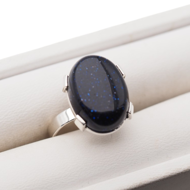 Pierścionek z kamieniem Noc Kairu w owalnym kształcie przyciąga uwagę głębokim, ciemnym odcieniem i charakterystycznym, „nocnym” połyskiem. Kamień osadzono w srebrnej oprawie, co nadaje całości elegancki, klasyczny wygląd z nutą tajemniczości.