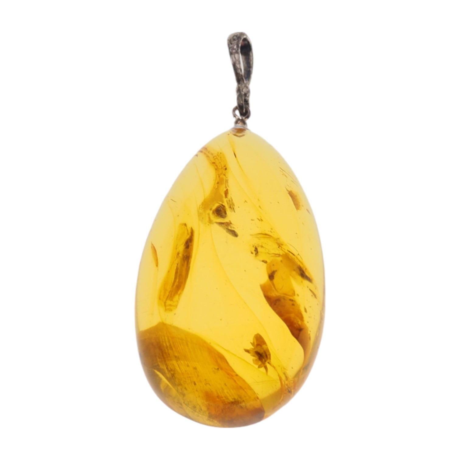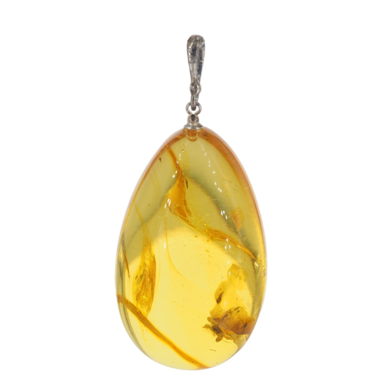 Bursztynowi często przypisuje się znaczenie ochronne i kojące – bywa wybierany jako kamień, który ma wspierać spokój, równowagę emocjonalną i dobre samopoczucie. Inkluzja roślinna dodaje mu symboliki „zatrzymanej chwili” i bliskości natury.