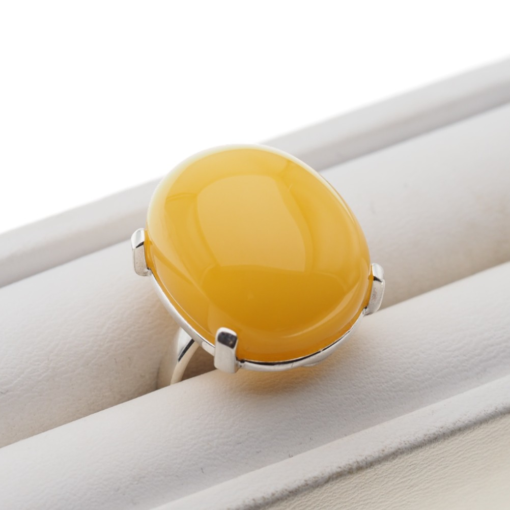 Pierścionek z Naturalnym Mlecznym Bursztynem.