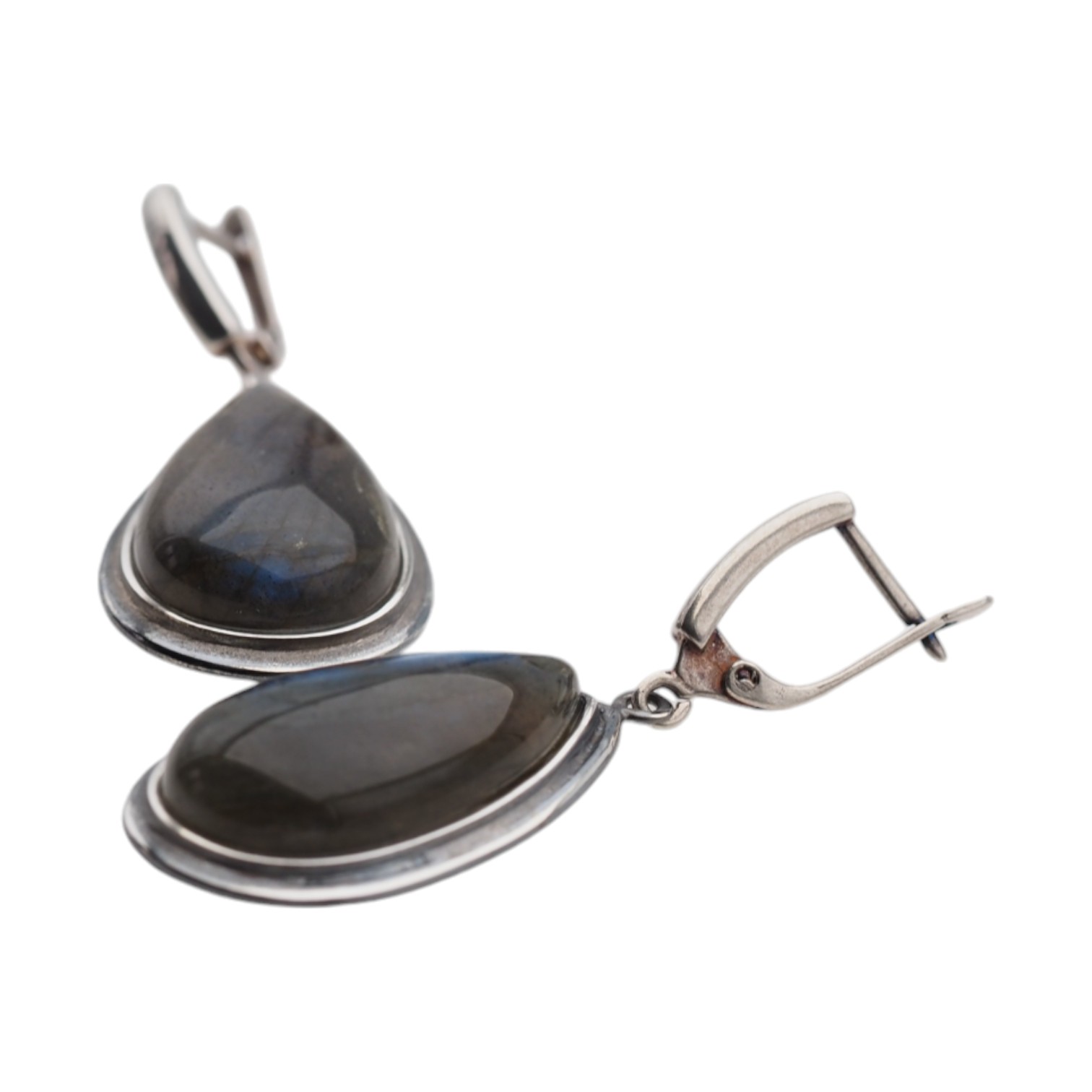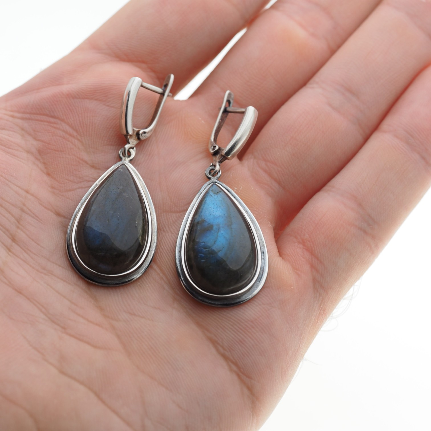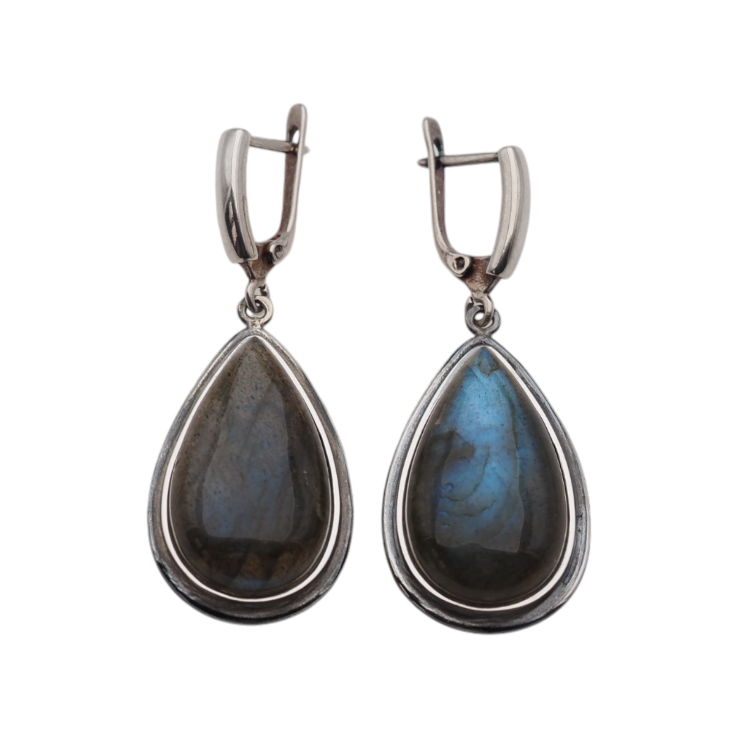 Naturalny Labradoryt i srebro - kolczyki łzy.