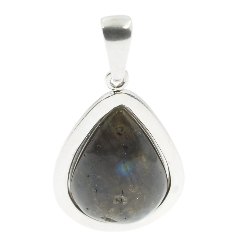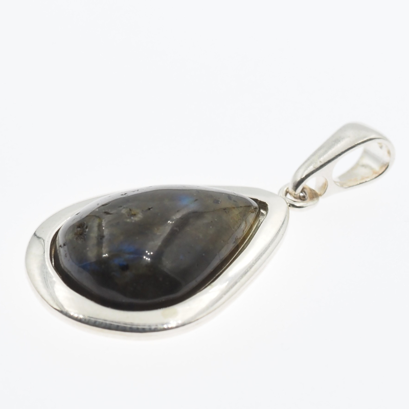 Ta zawieszka z naturalnym labradorytem ma kształt łzy i przyciąga uwagę charakterystycznym połyskiem, który mieni się na różne kolory w zależności od światła. Kamień osadzono w srebrnej oprawie wykonanej ręcznie, co podkreśla jubilerski, elegancko-naturalny charakter biżuterii.