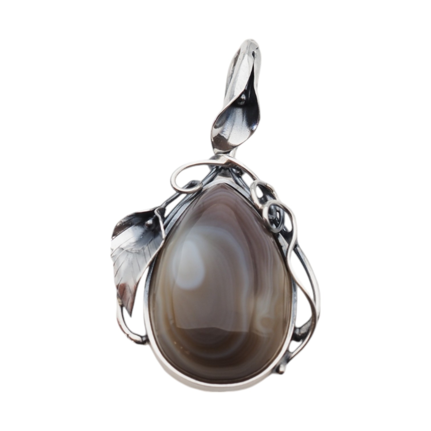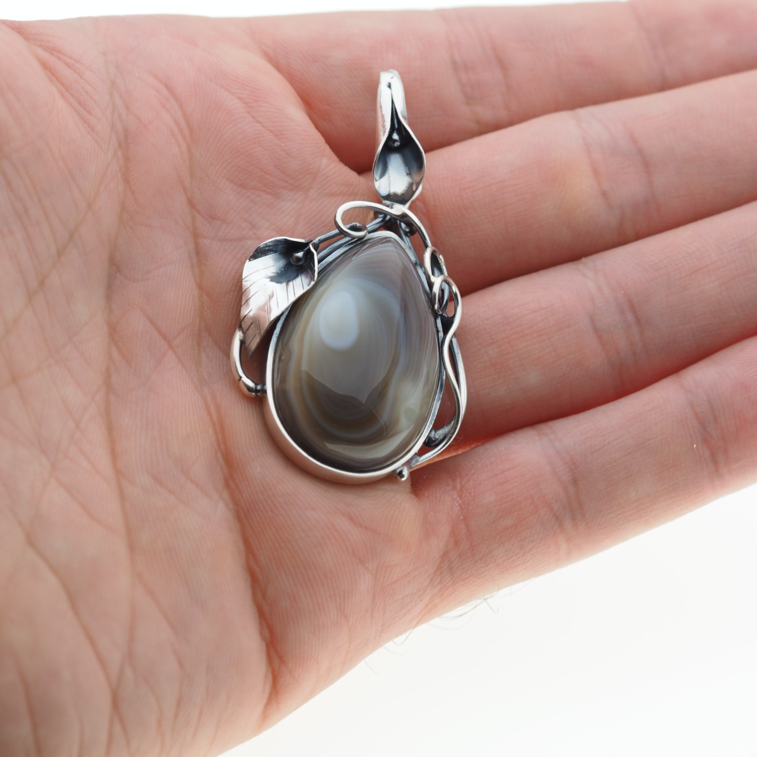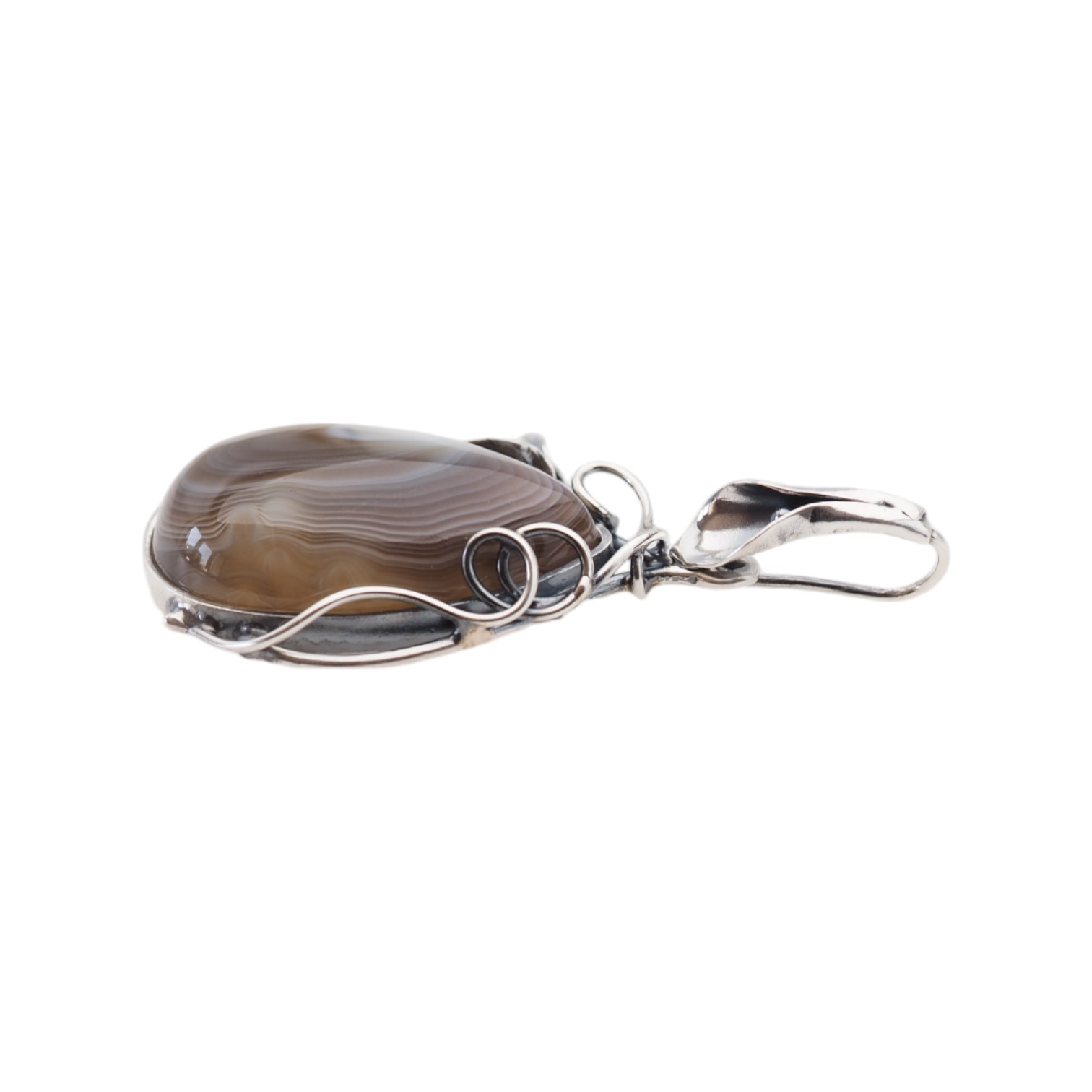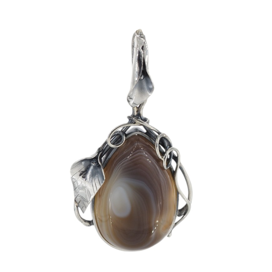 Naturalny Agat Bostwana i srebro - wisiorek.