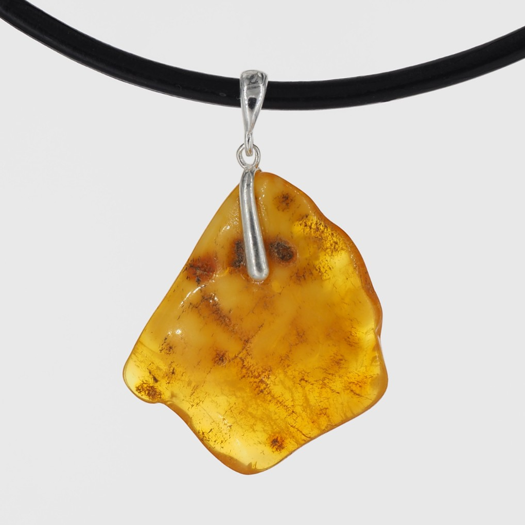 Naturalny Bursztyn i srebro - naszyjnik na rzemieniu