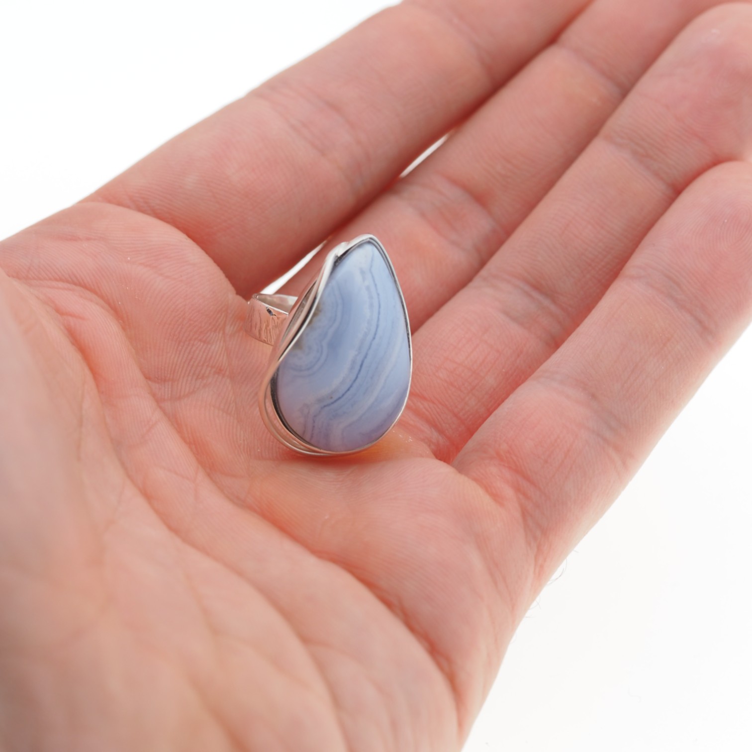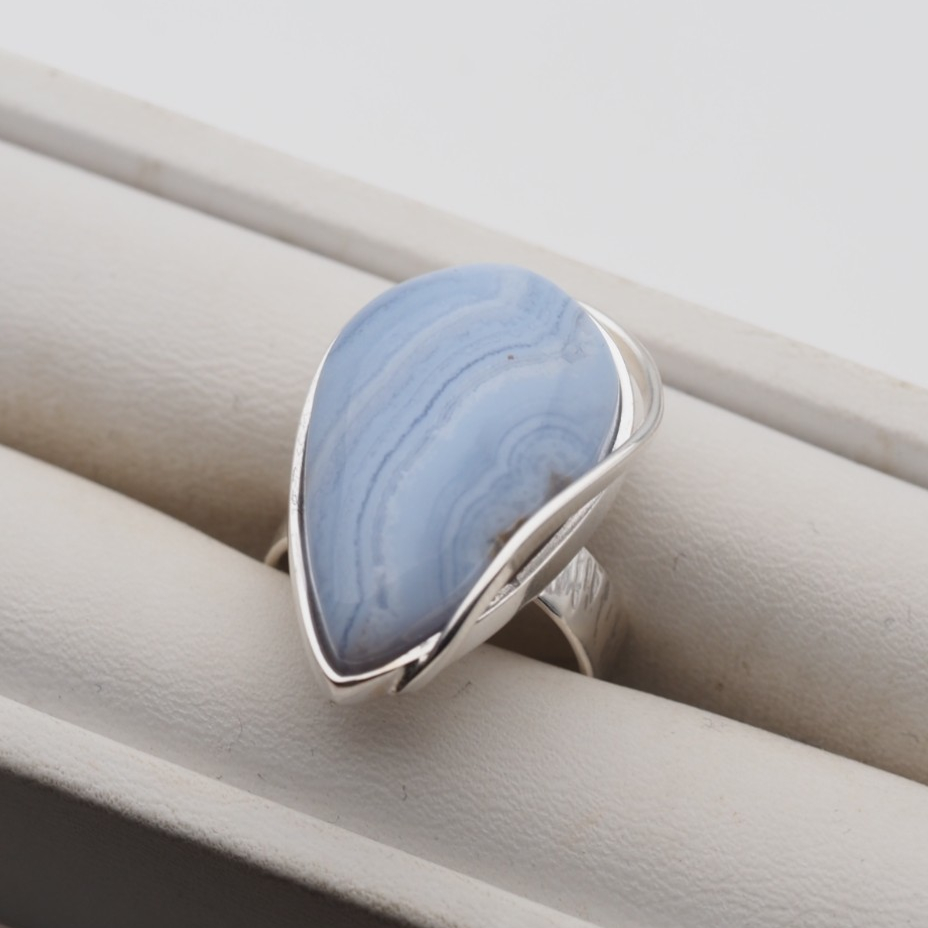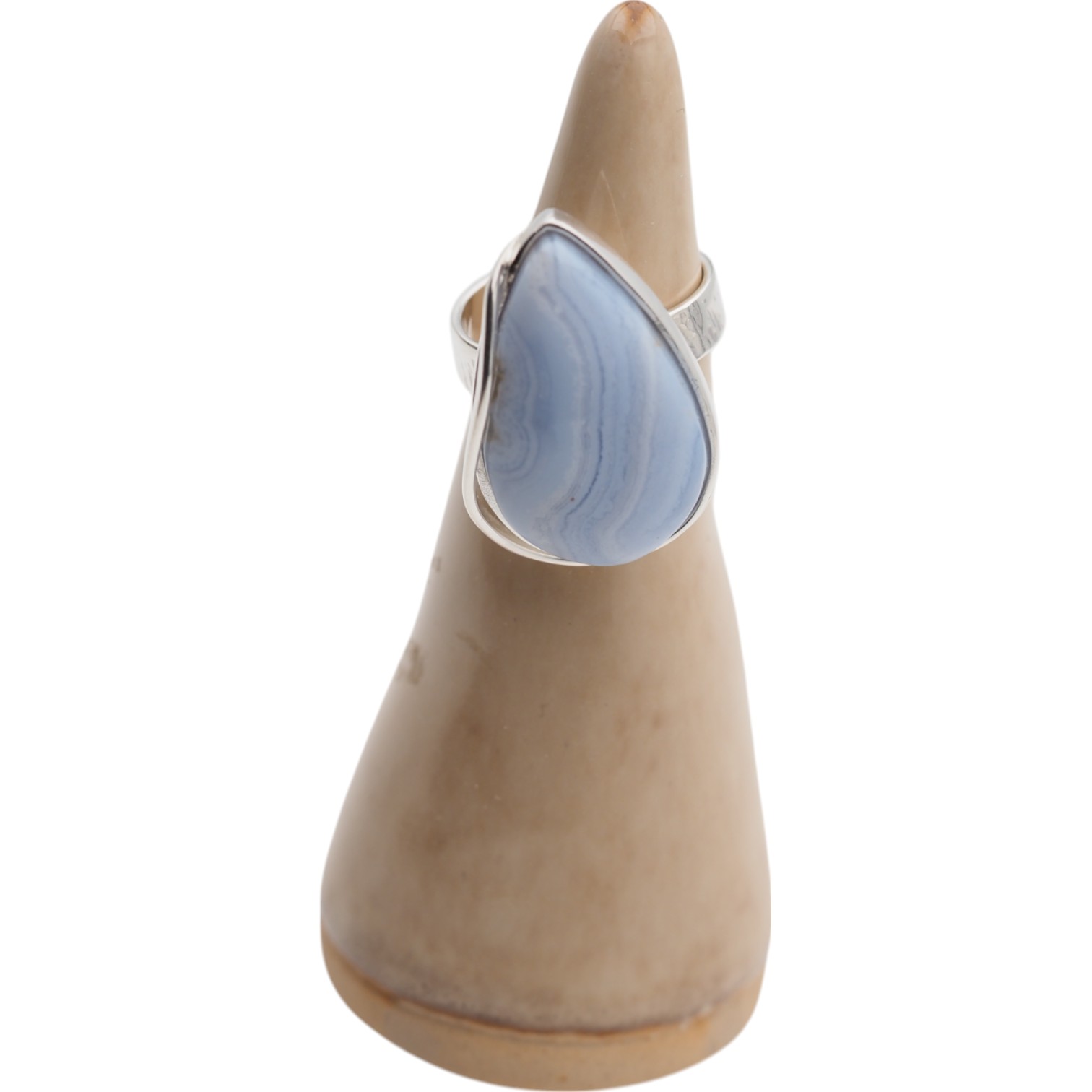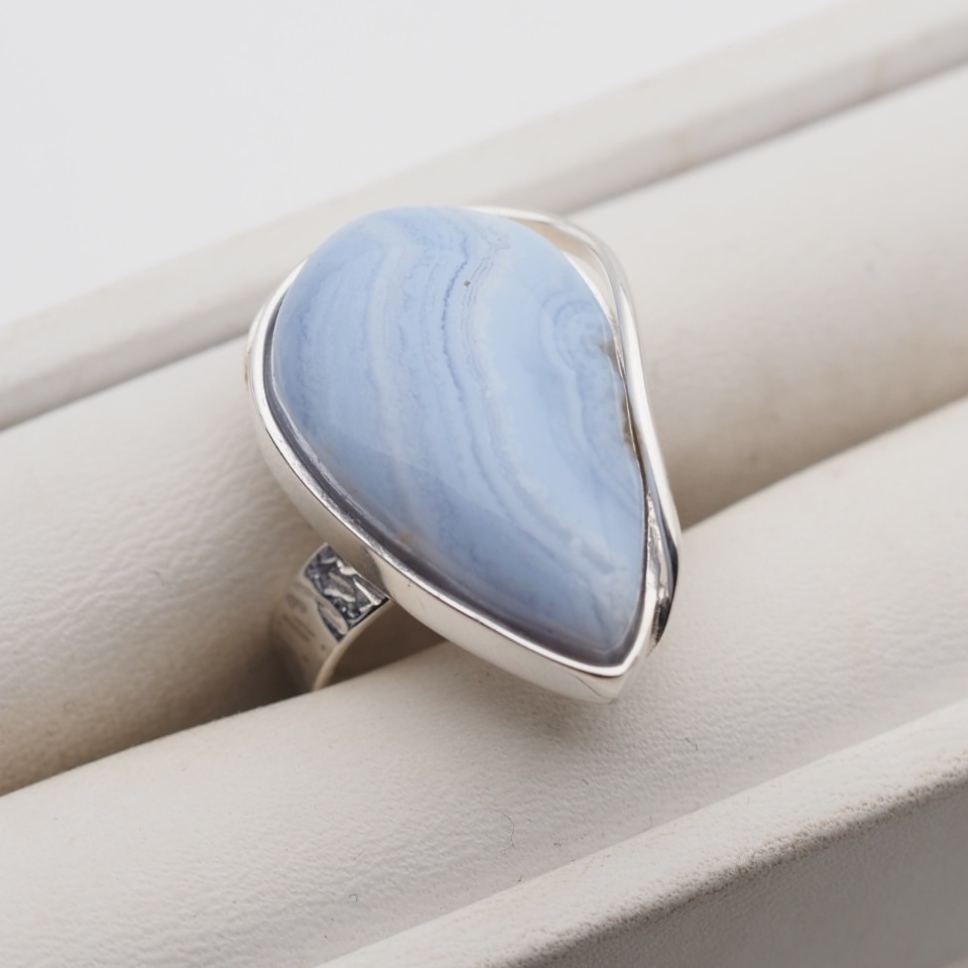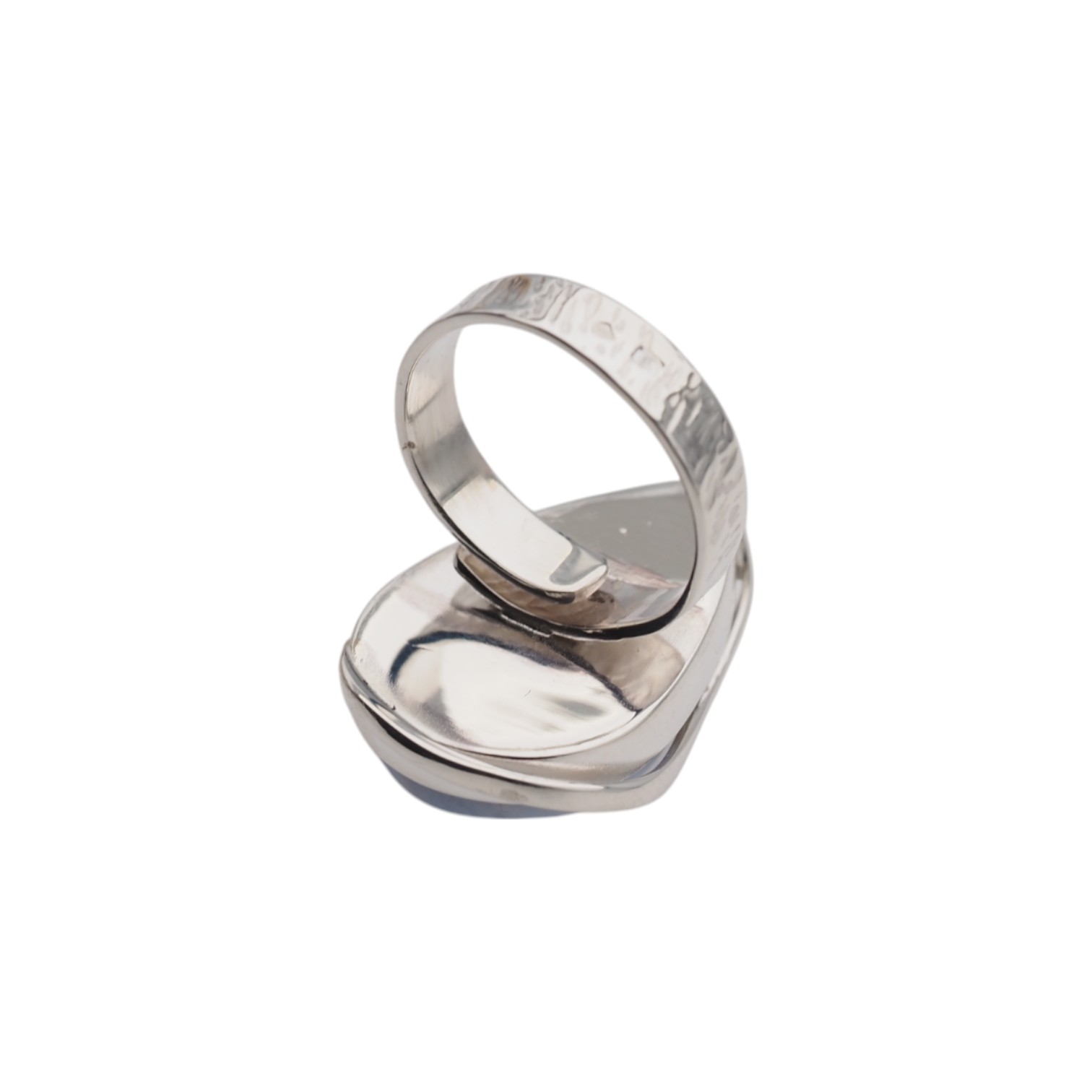 Naturalny Chalcedon i srebro młotkowane - pierścionek.