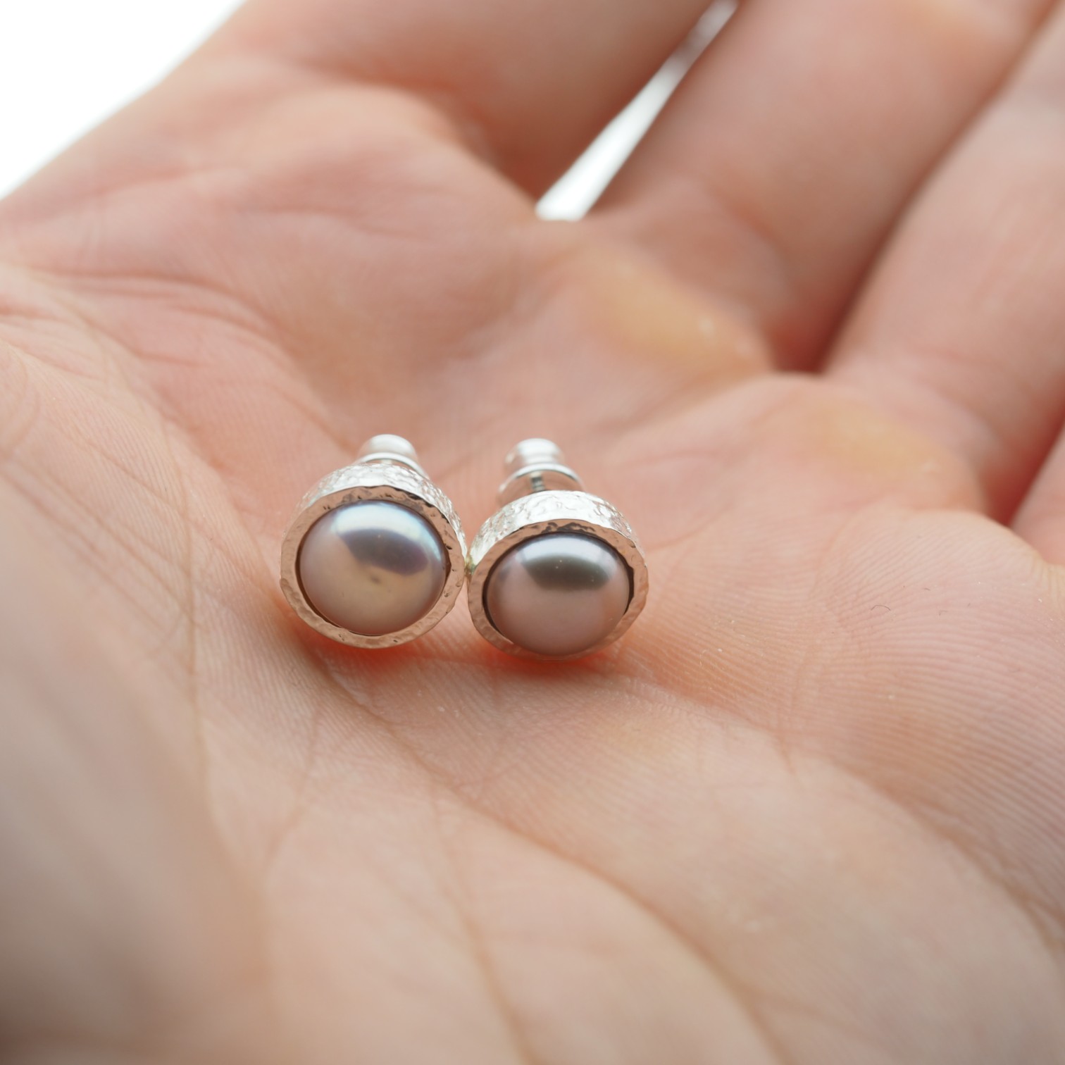 Kolczyki sztyfty z Perłami różowymi w kształcie okrągłym.