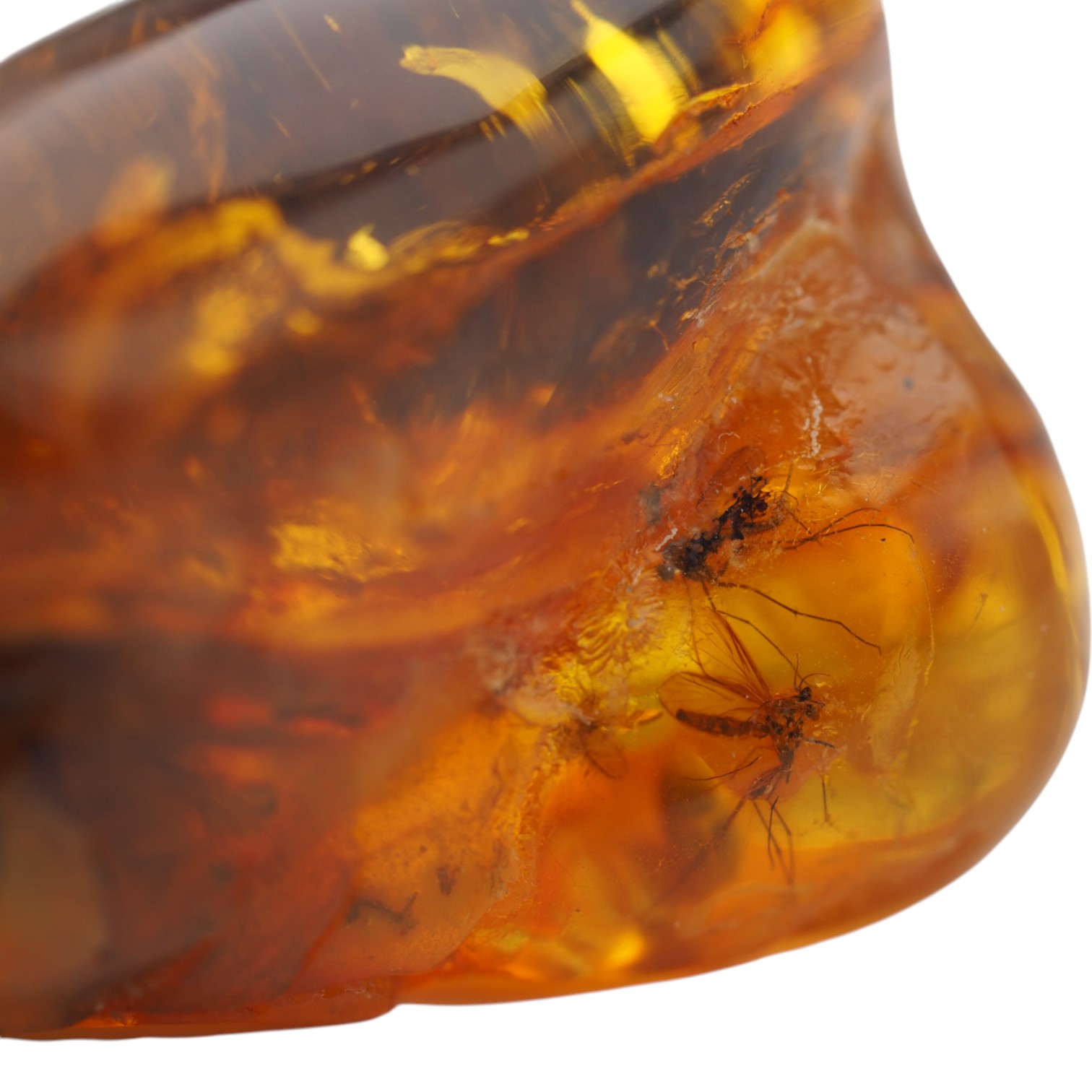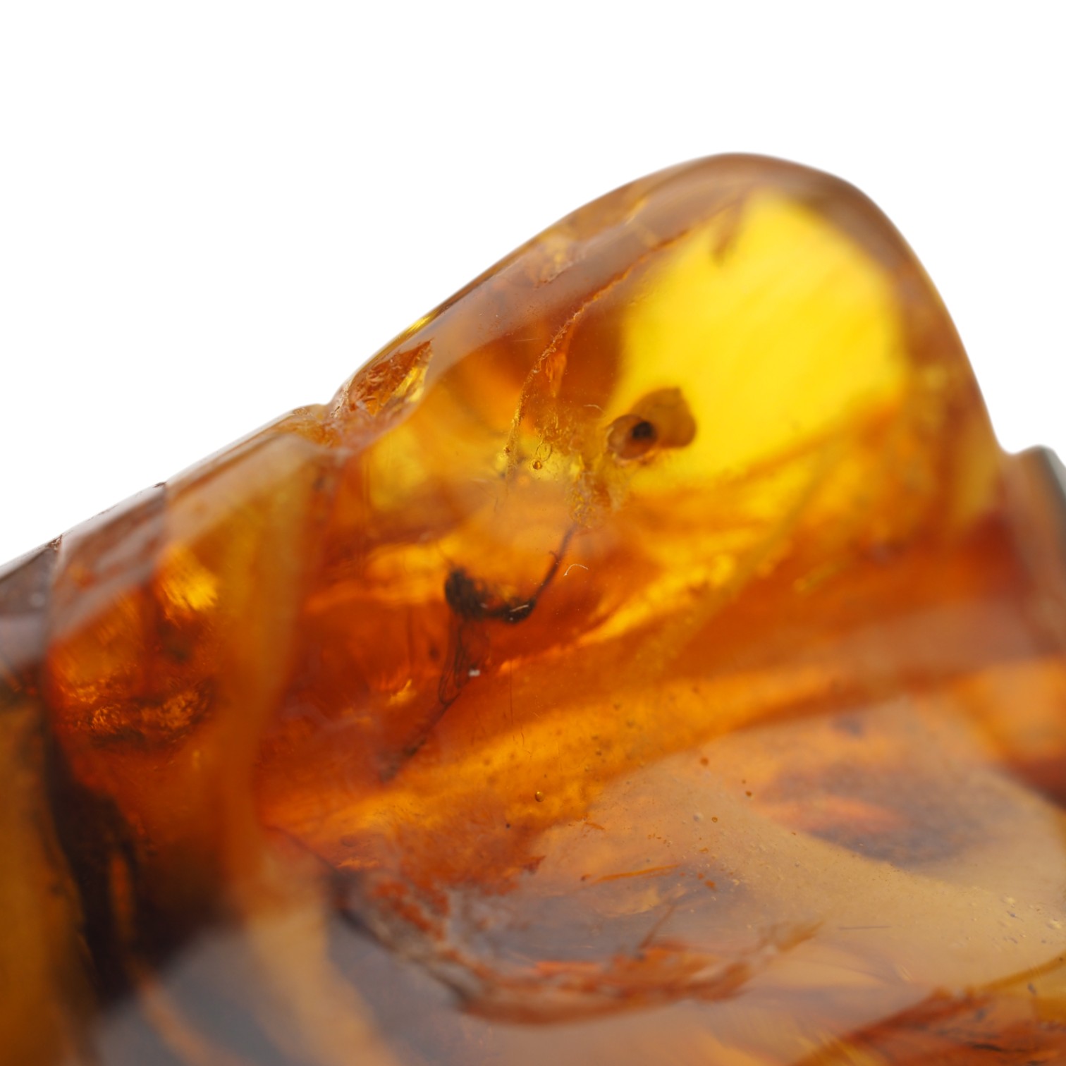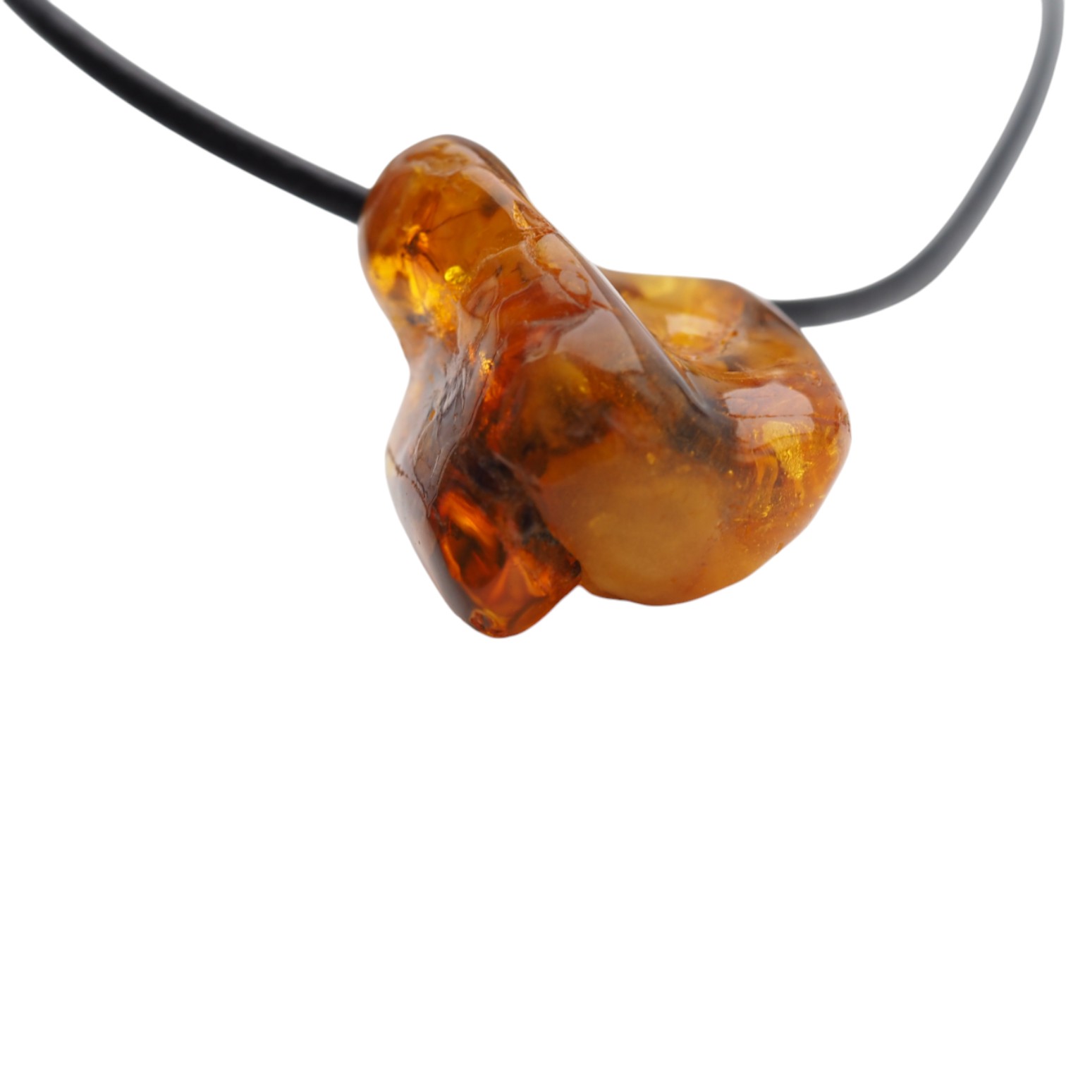Ten naszyjnik z bursztynem przyciąga uwagę naturalnym, ciepłym odcieniem żywicy i wyjątkową inkluzją roślinną oraz trzema muszkami zatopionymi wewnątrz. Ręcznie wykonana zawieszka w srebrze próby 925 podkreśla kolekcjonerski charakter biżuterii i sprawia, że każdy egzemplarz wygląda jak mała, naturalna „pamiątka czasu”.