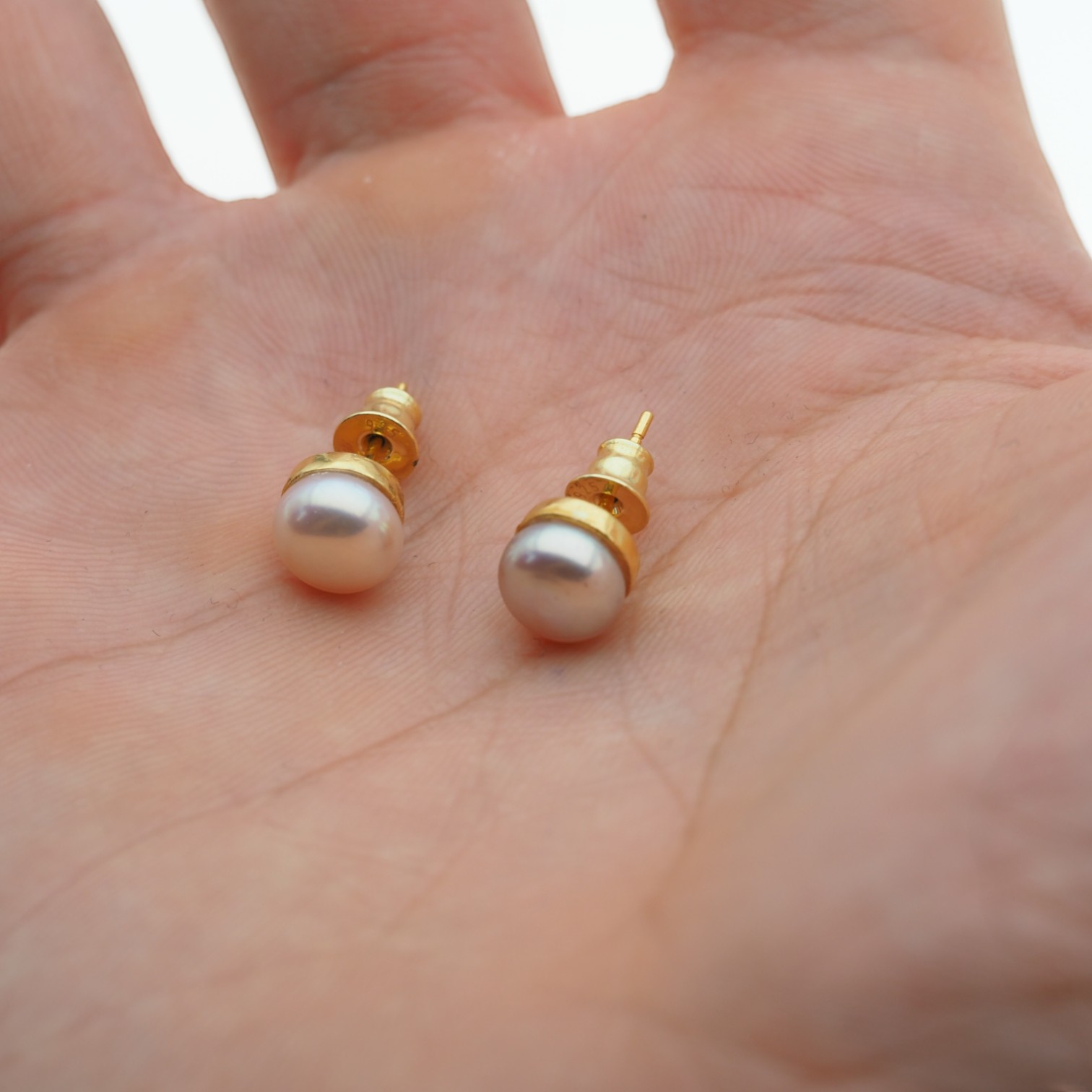 Kolczyki sztyfty z Perłami różowymi w kształcie okrągłym.