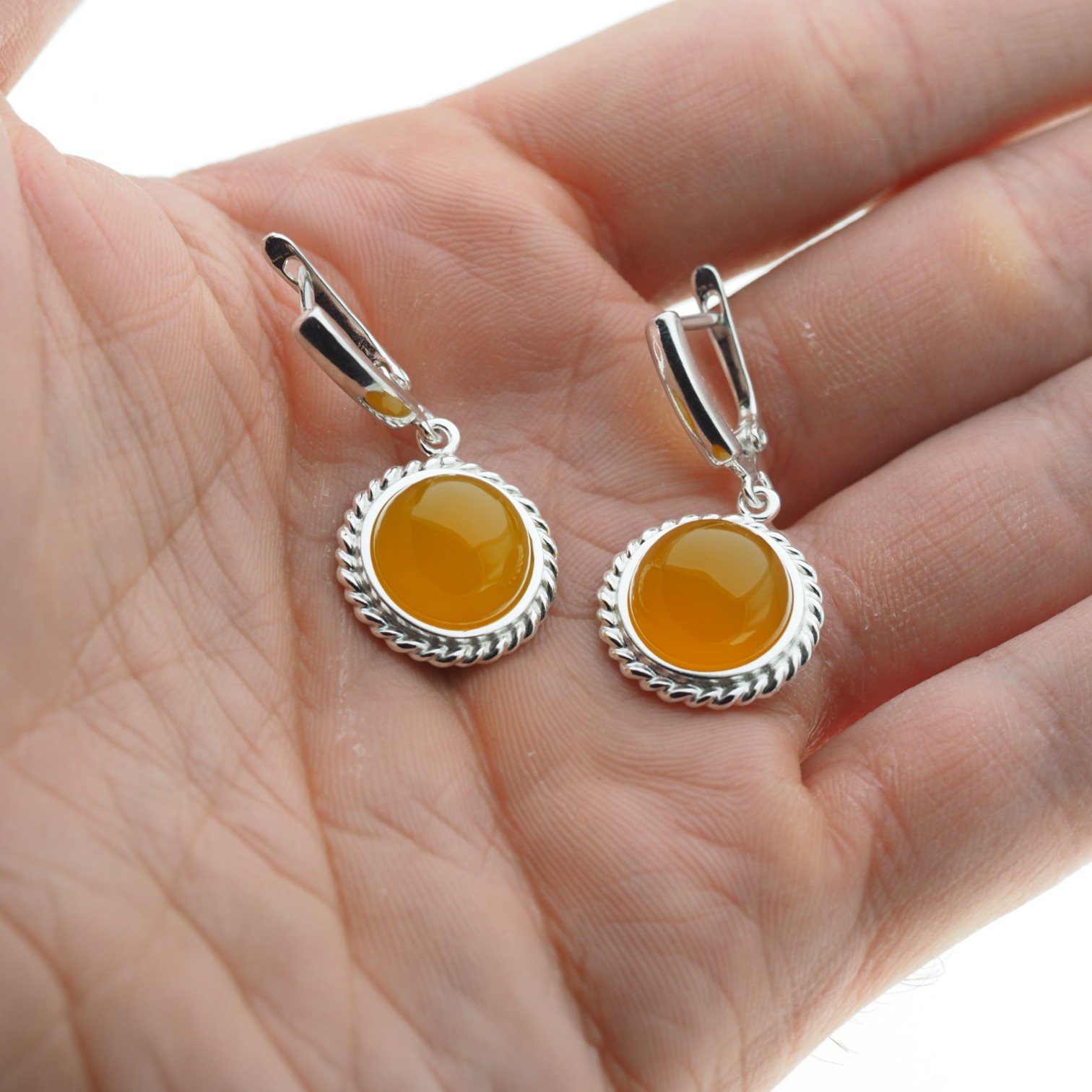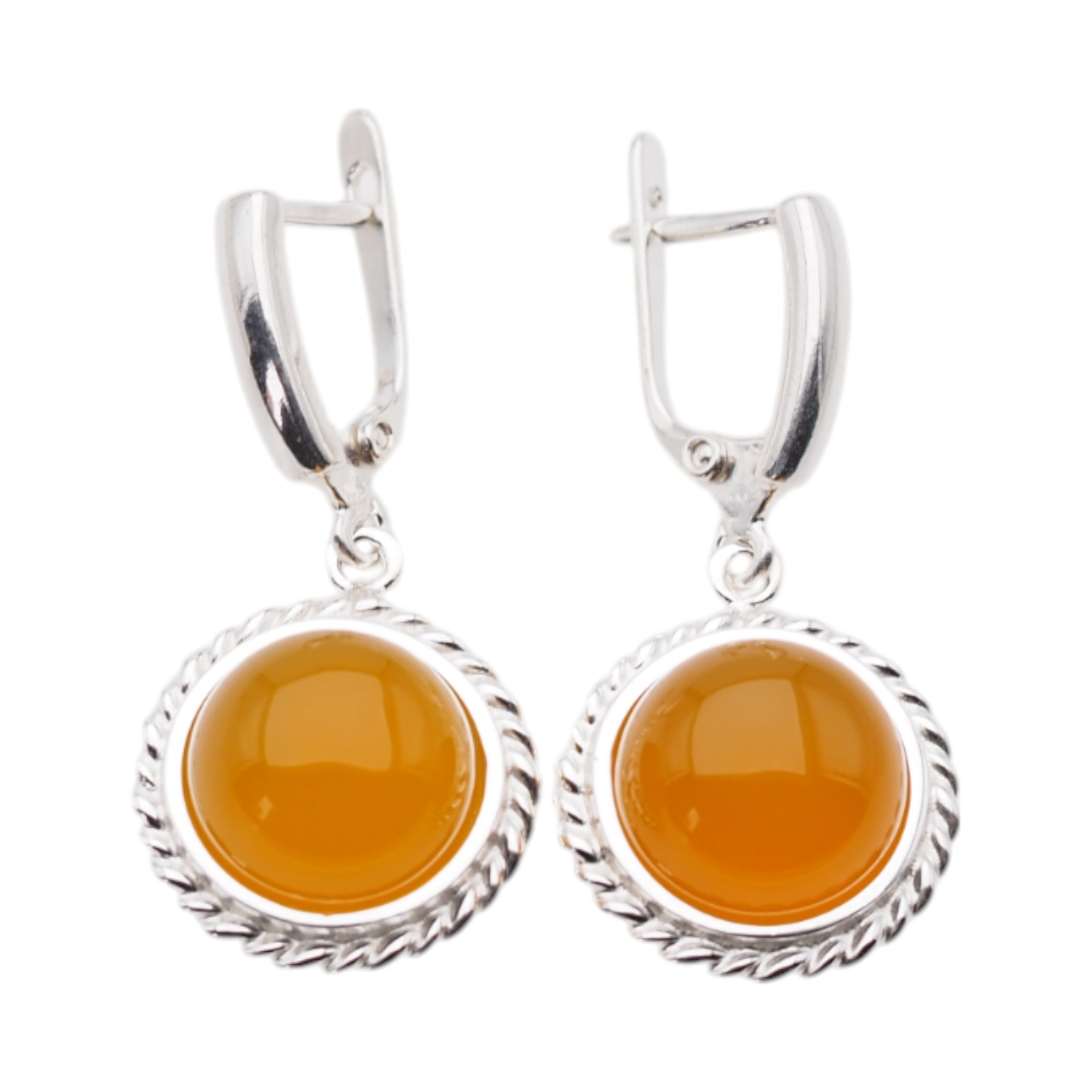 Naturalny Agat pomarańczowy i srebro - kolczyki.