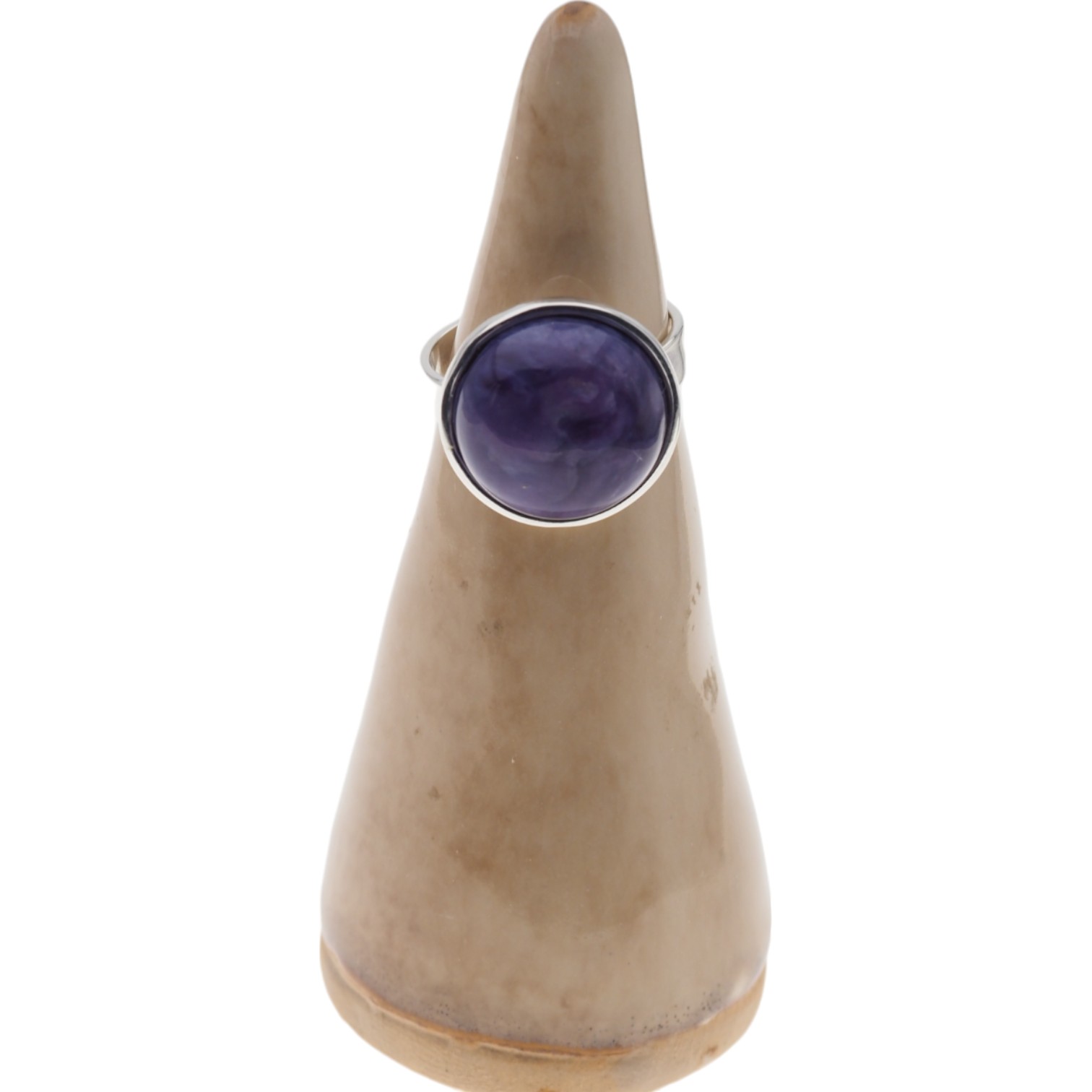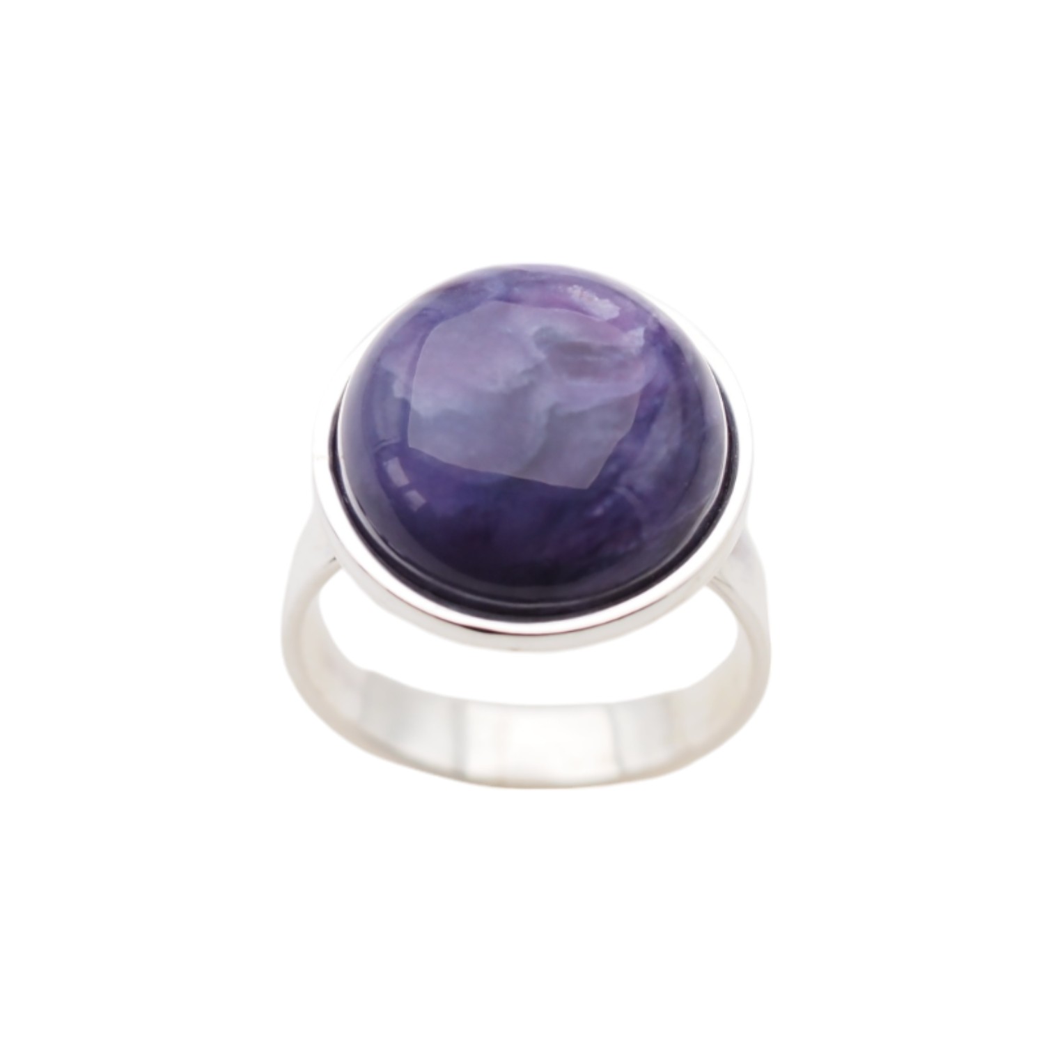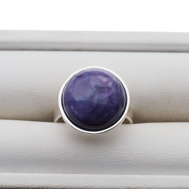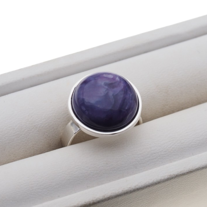 Pierścionek z Naturalnym Czaroitem w kształcie okrągłym.