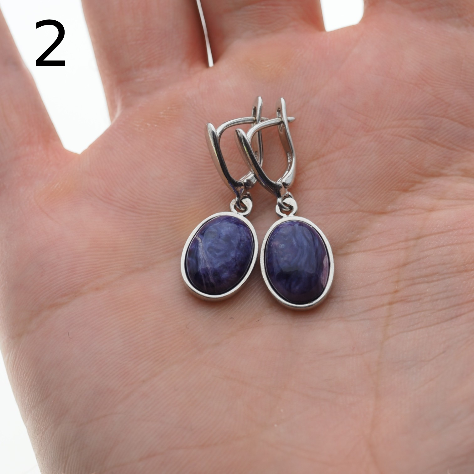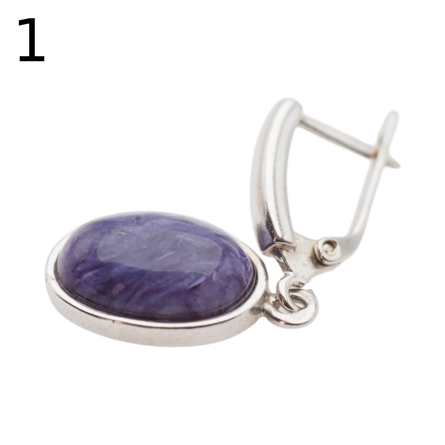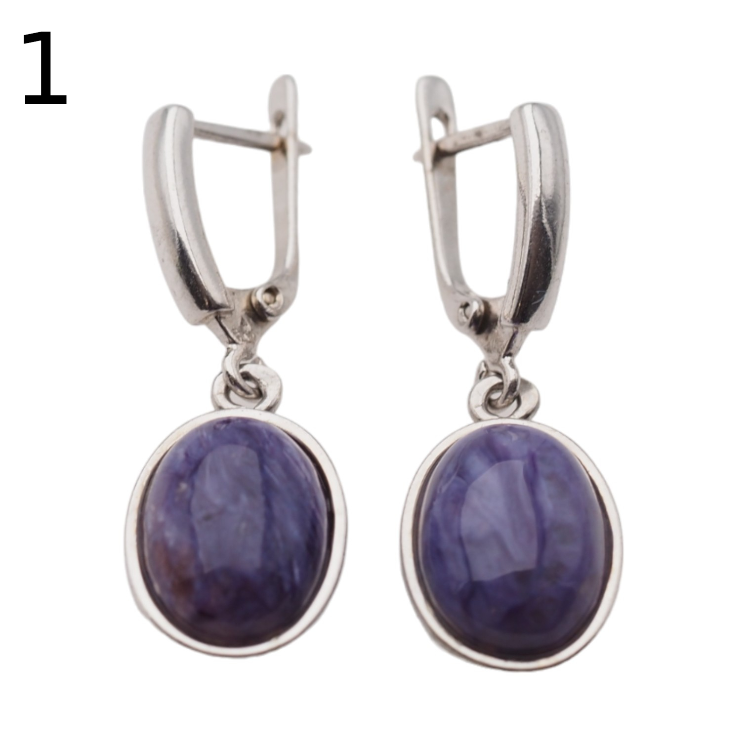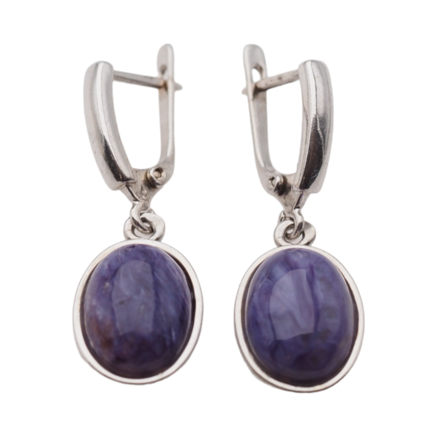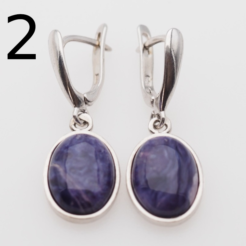 Kolczyki wykonane ręcznie z Czaroitem w kształcie owalnym.