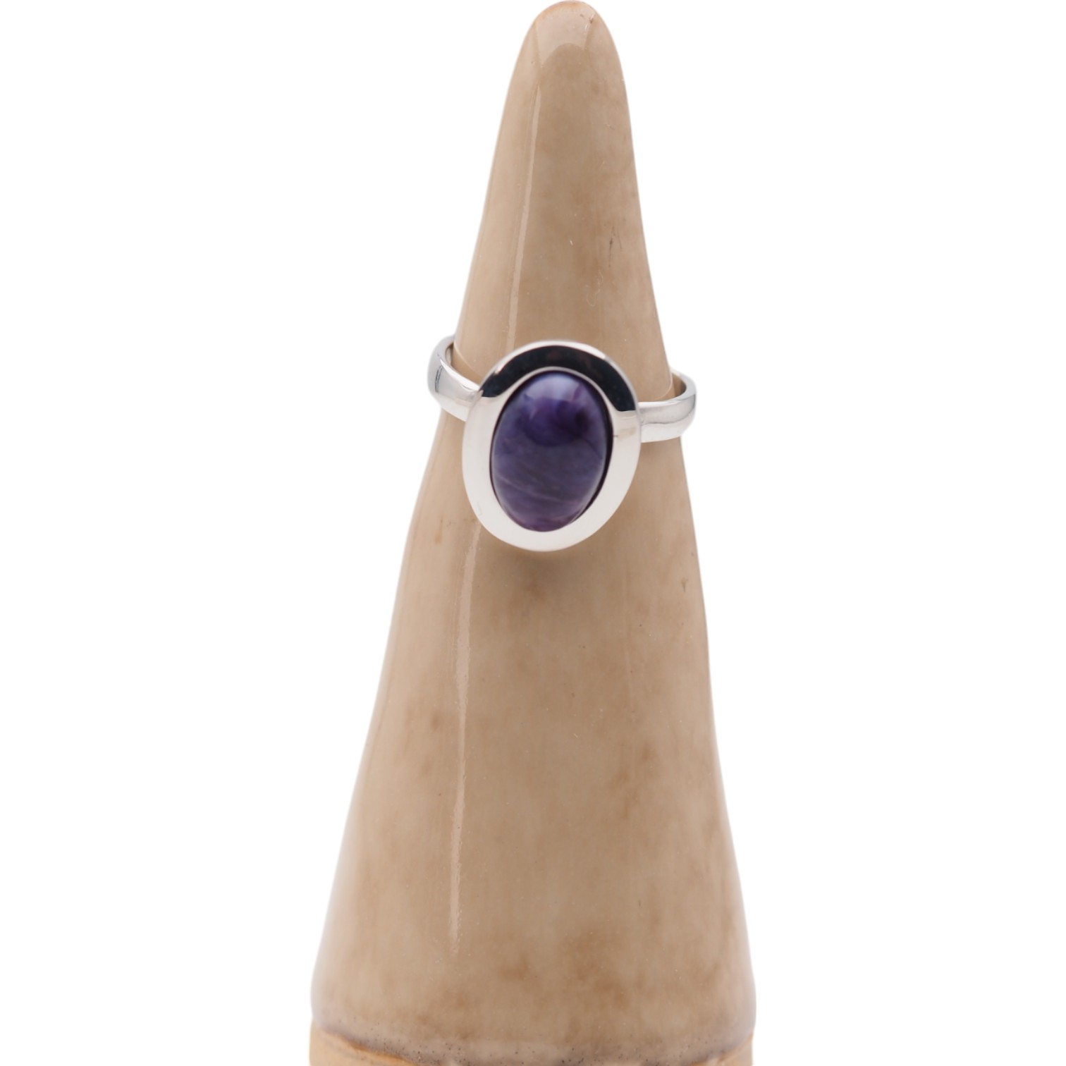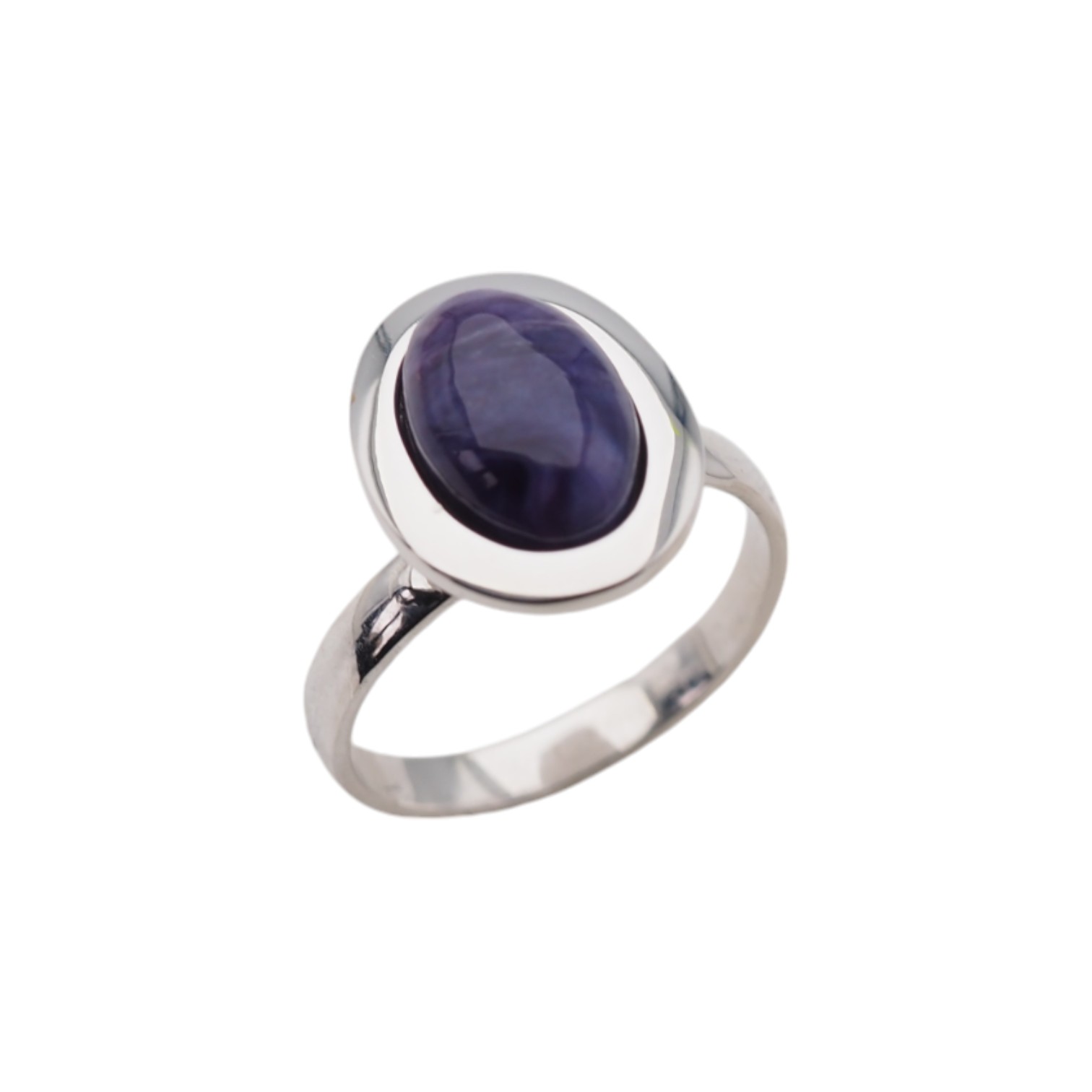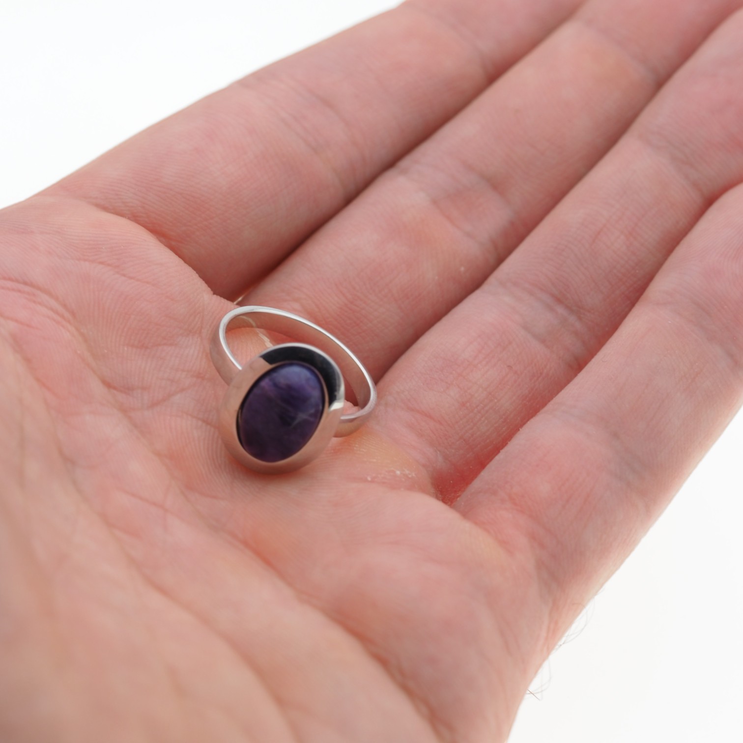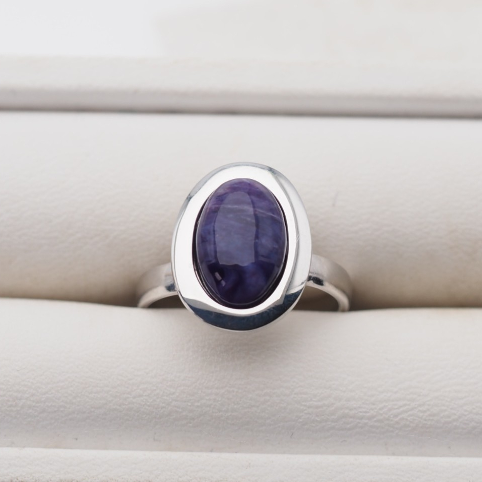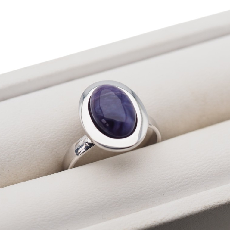 Naturalny Czaroit i srebro rodowane - pierścionek.