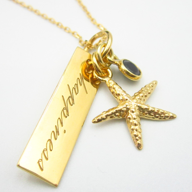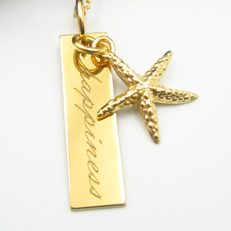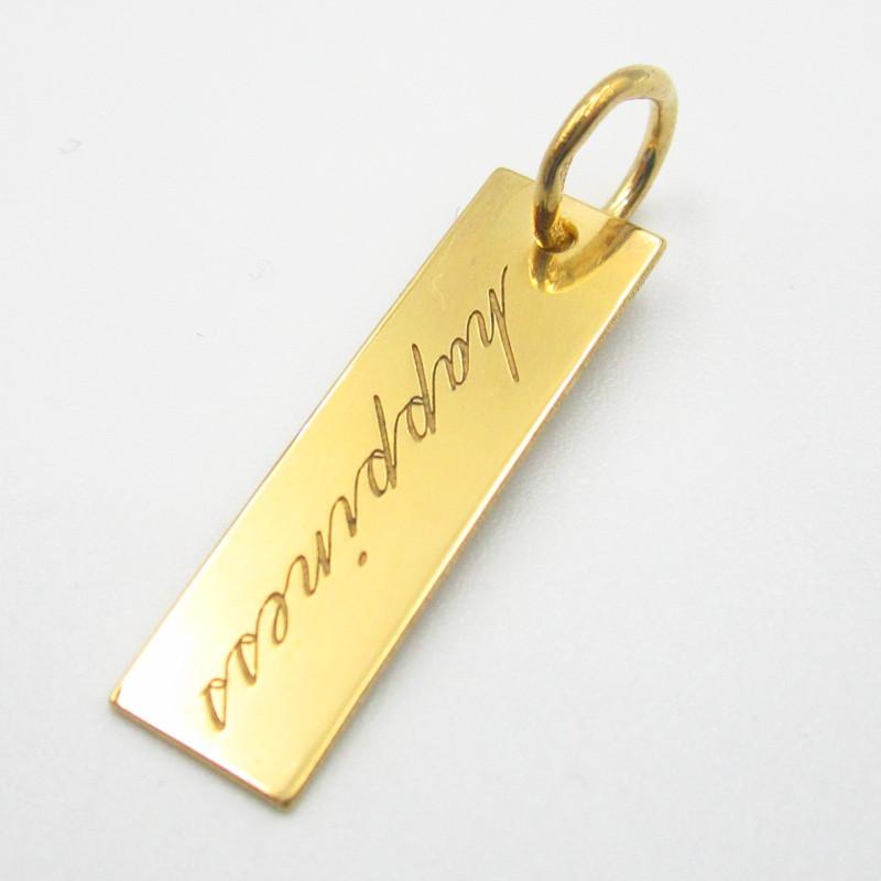 Blaszka z wygrawerowanym napisem HAPPINESS.