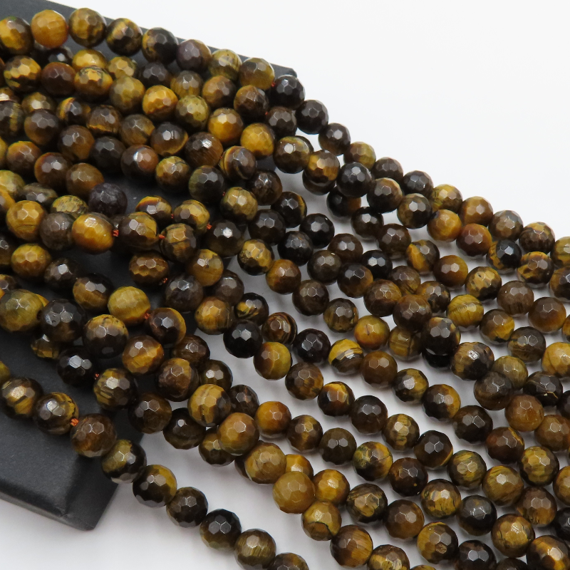 Naturalne tygrysie oko w formie fasetowanych kulek przyciąga uwagę charakterystycznym, ciepłym połyskiem i głębią barw. Fasetowanie podbija grę światła na powierzchni kamienia, dzięki czemu sznur wygląda elegancko i „jubilersko” nawet w prostych projektach.
